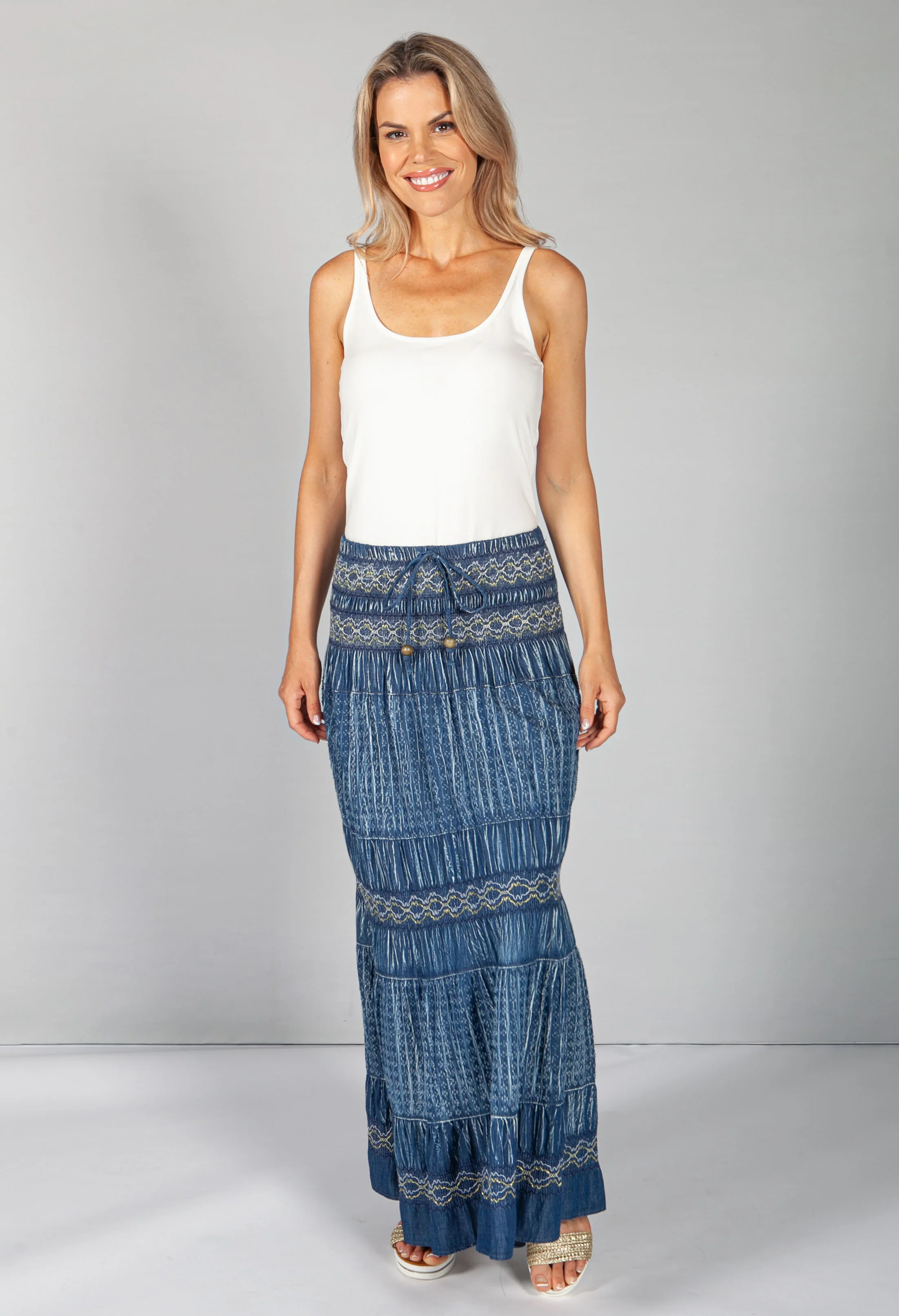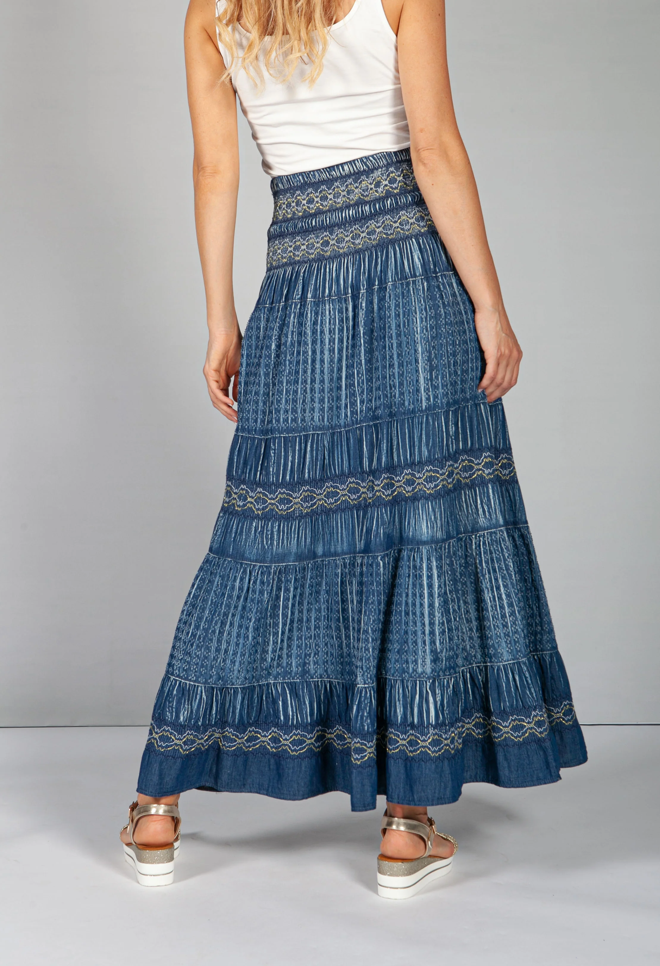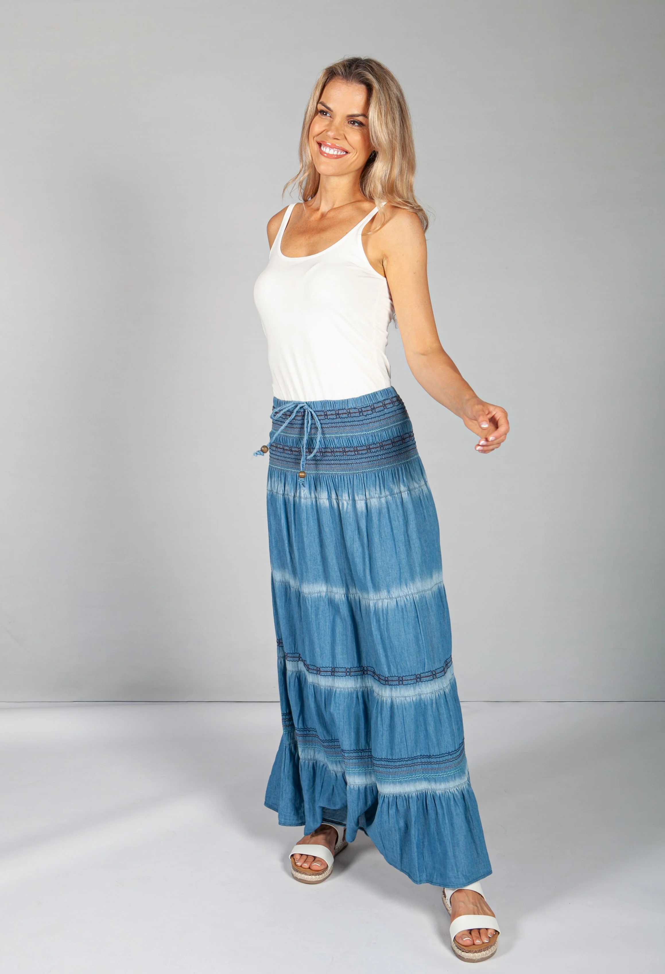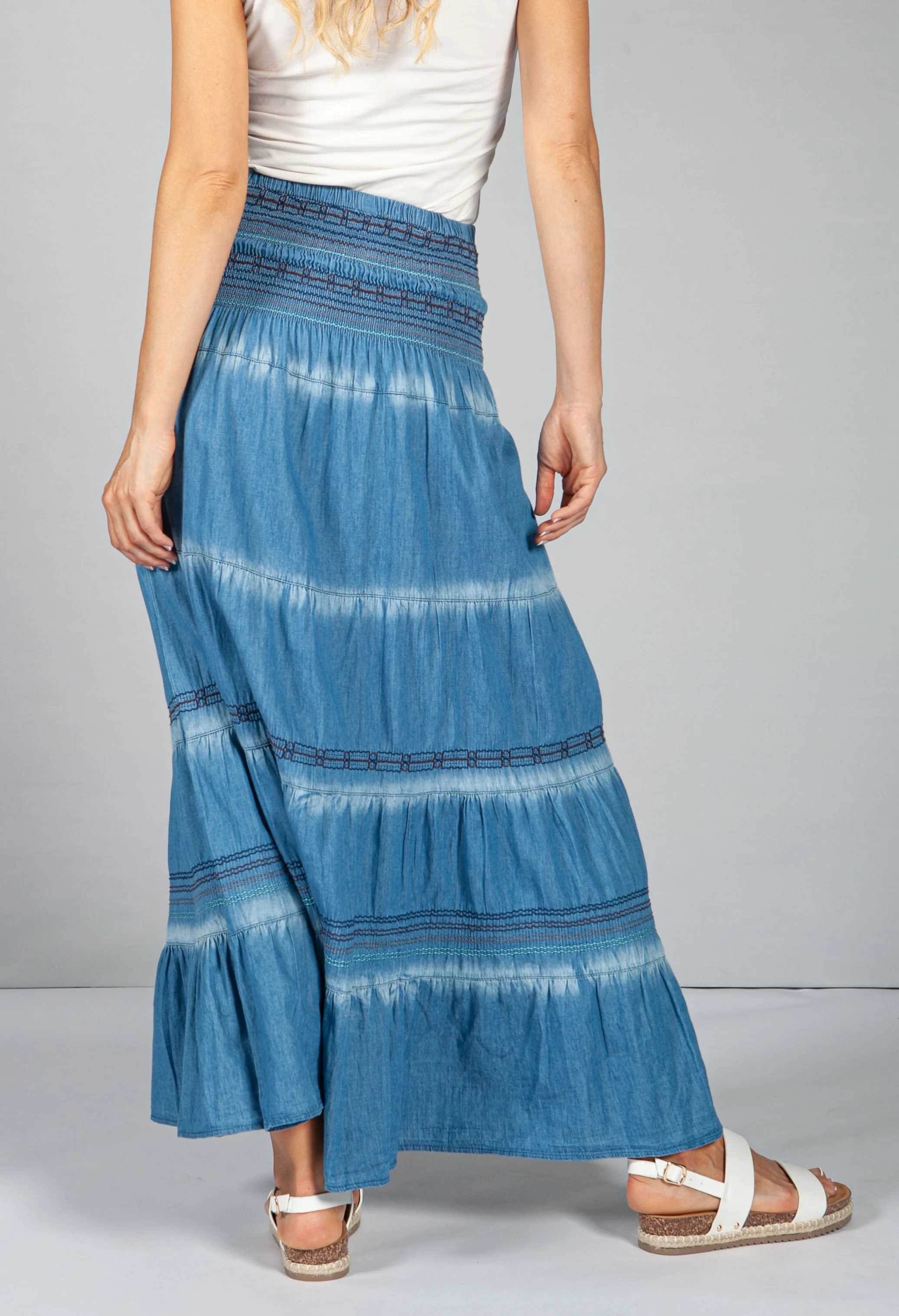 Multi-Wear Boho Denim Skirt with Navy Stitching