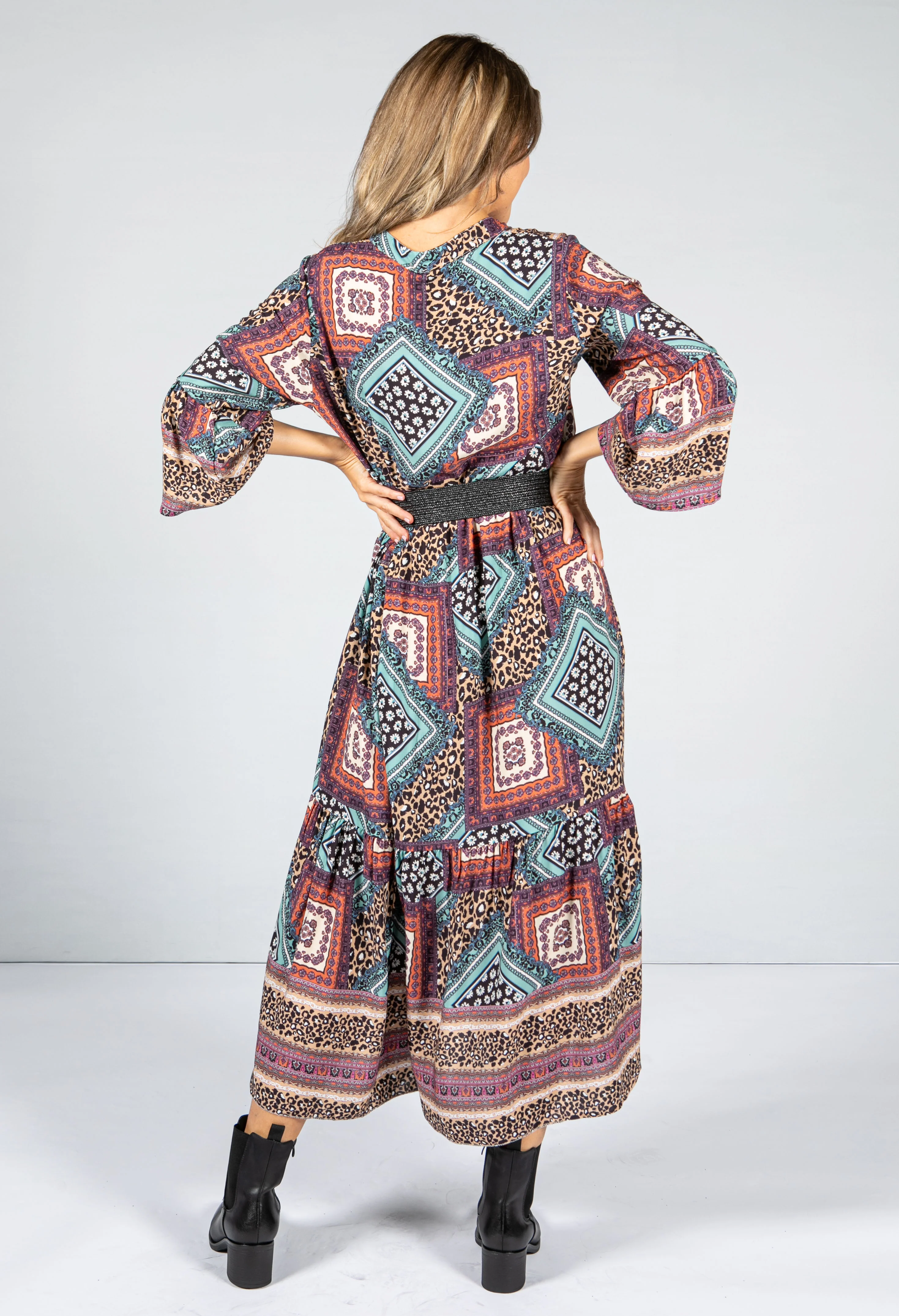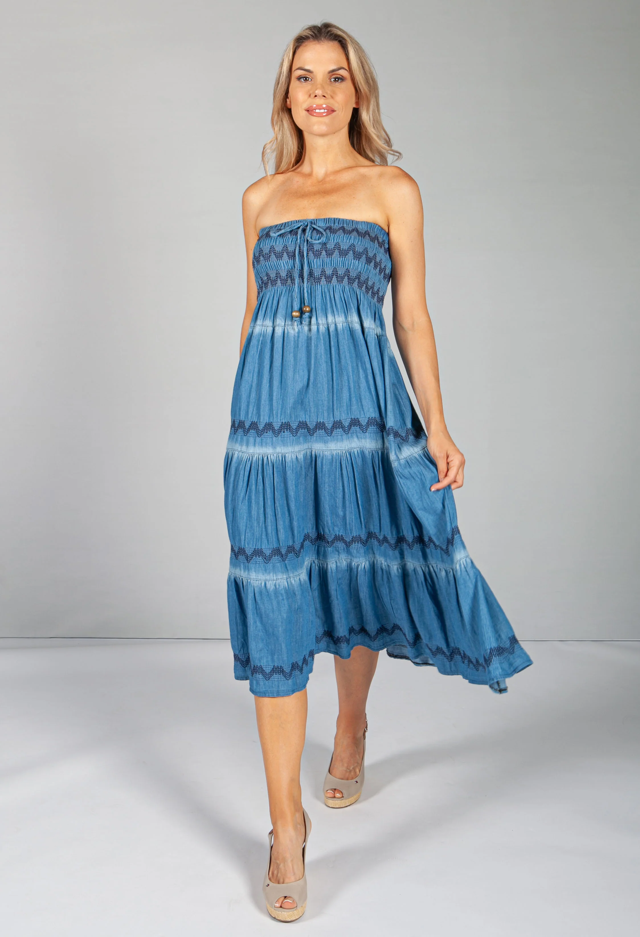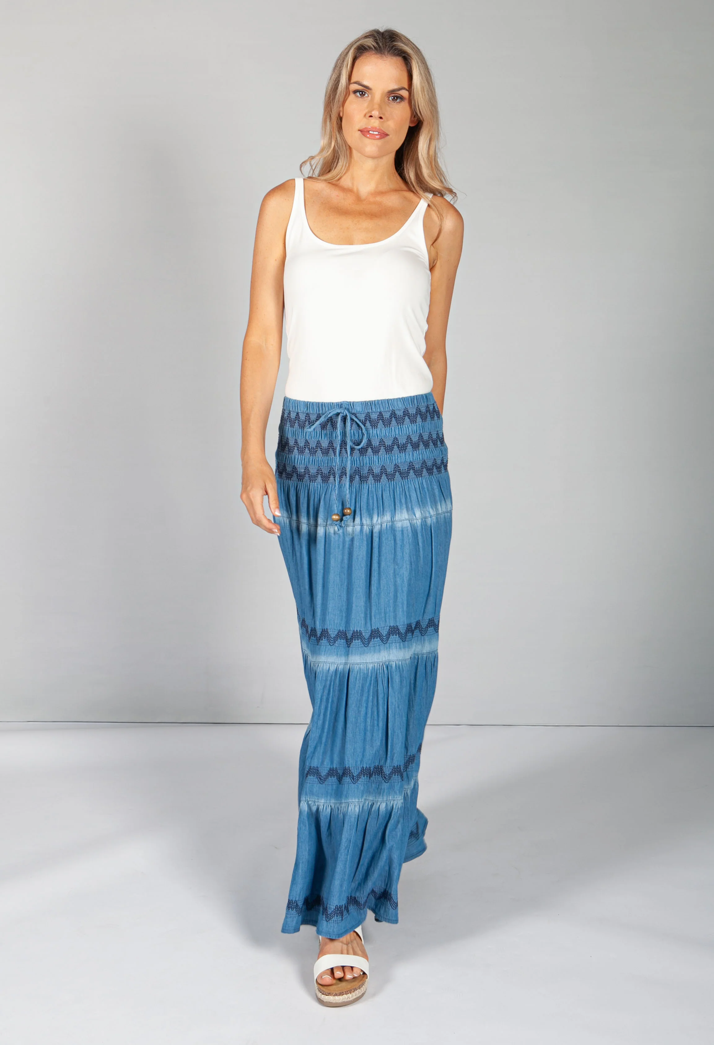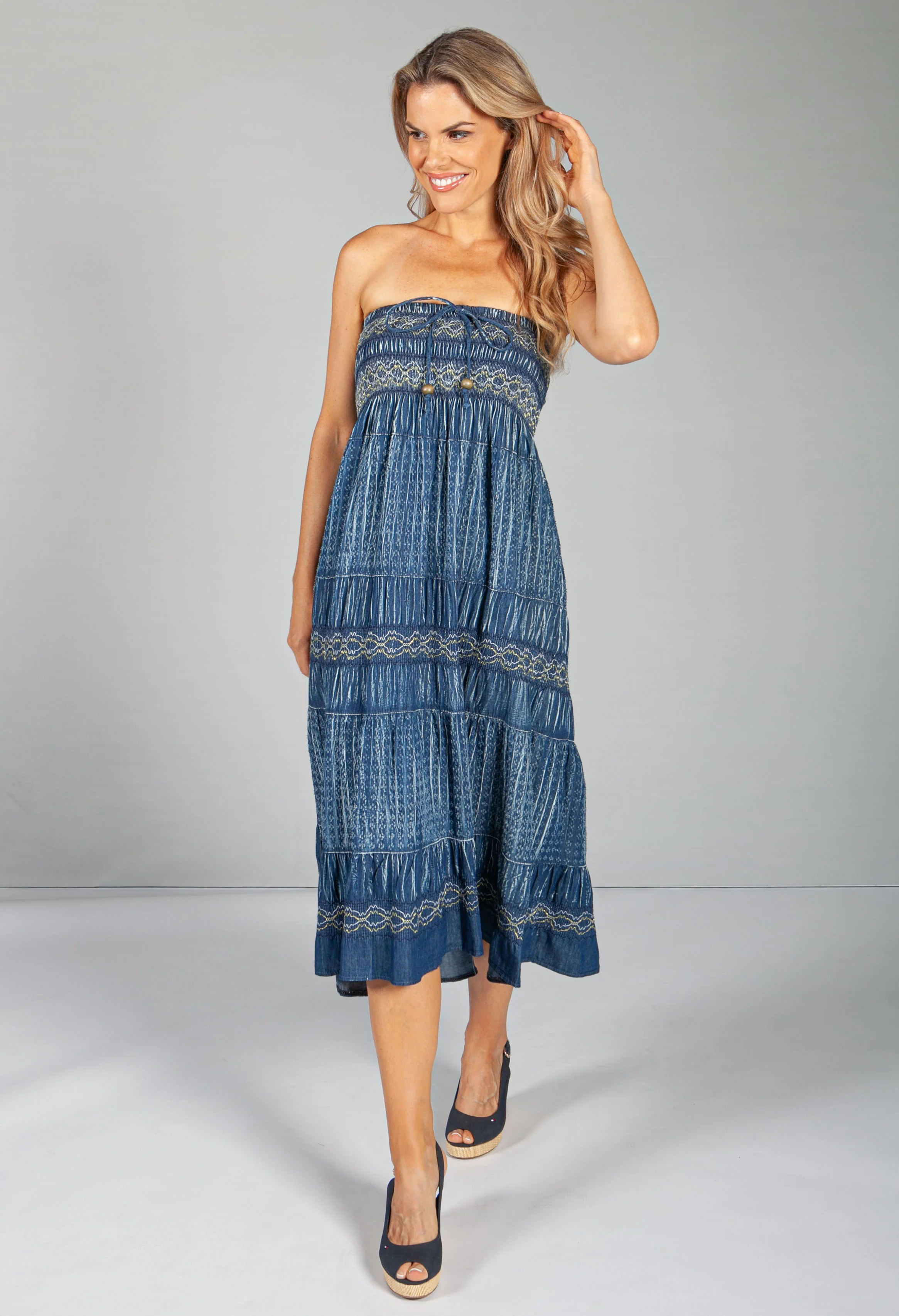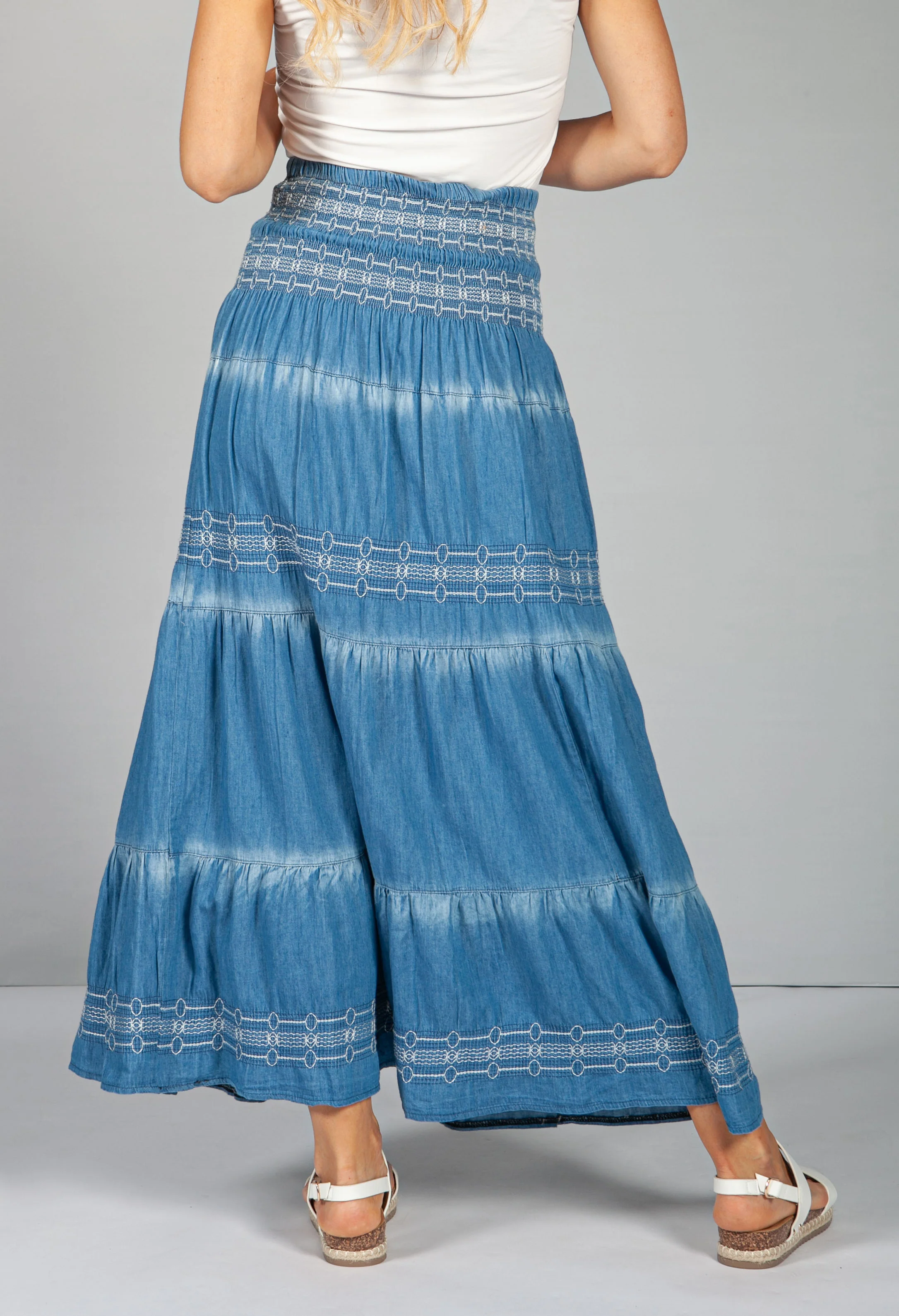 Multi-Wear Boho Denim Skirt with Navy Stitching