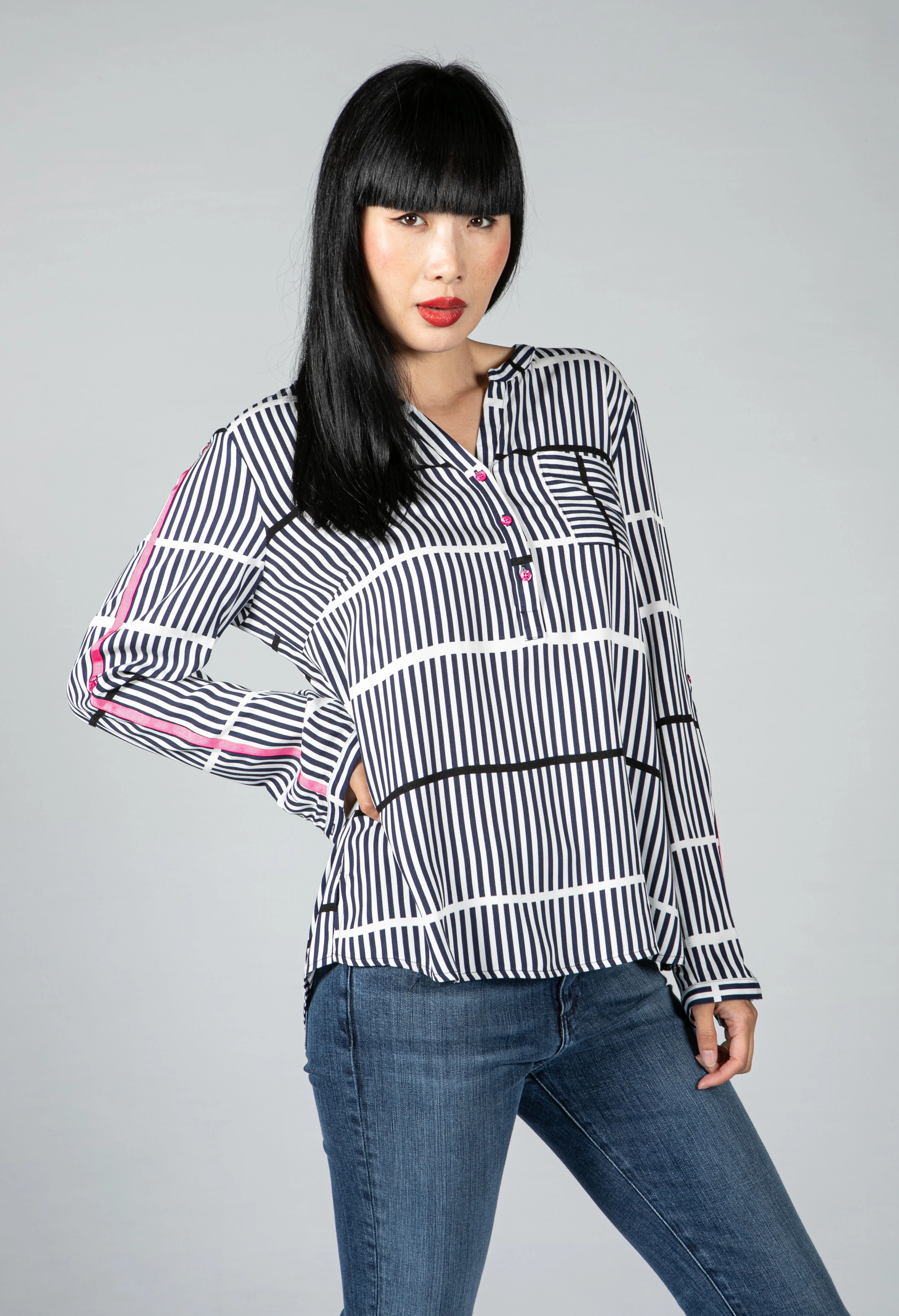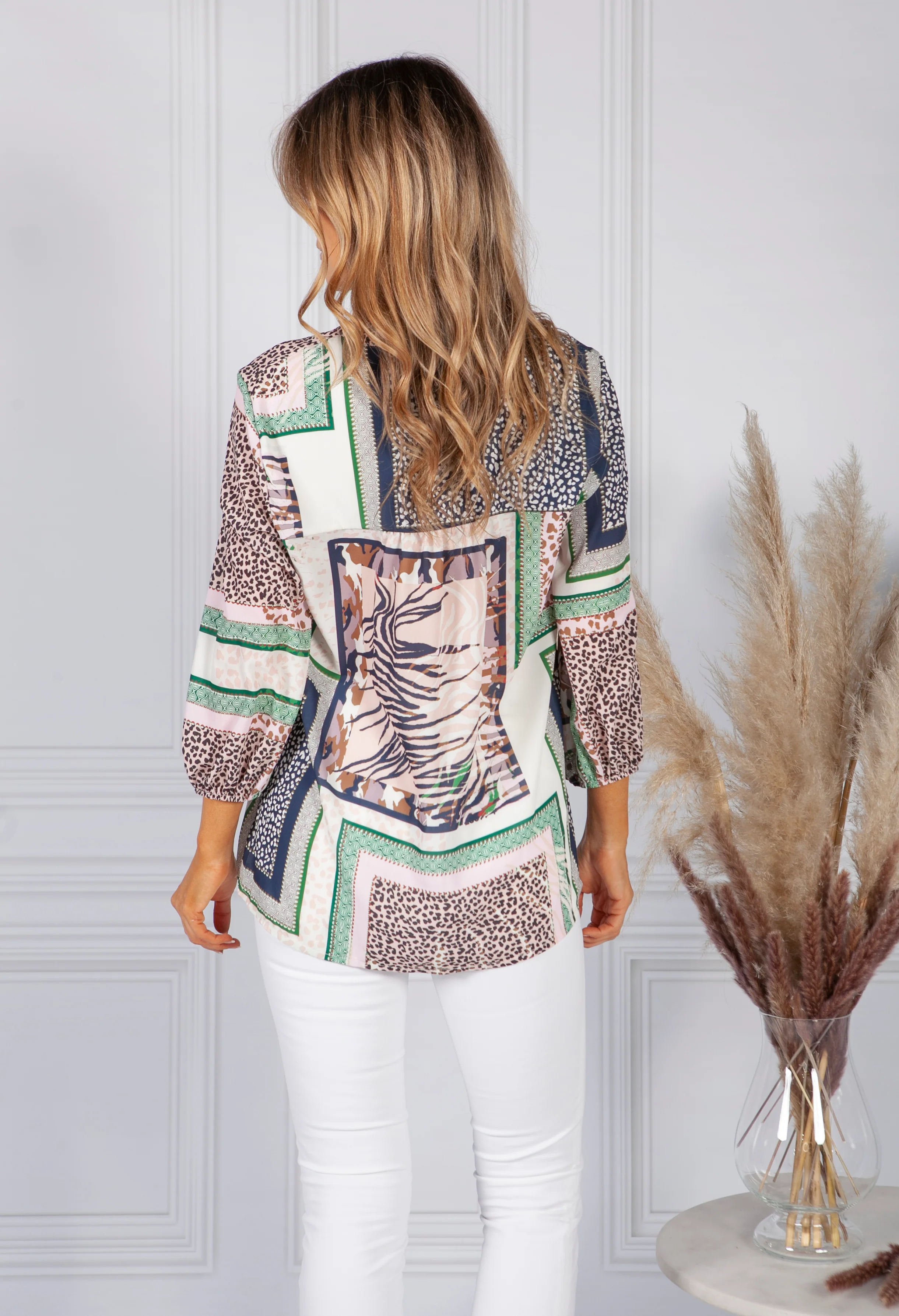 MULTI CHECK BLOUSE IN SOFT CRINKLE FABRIC
