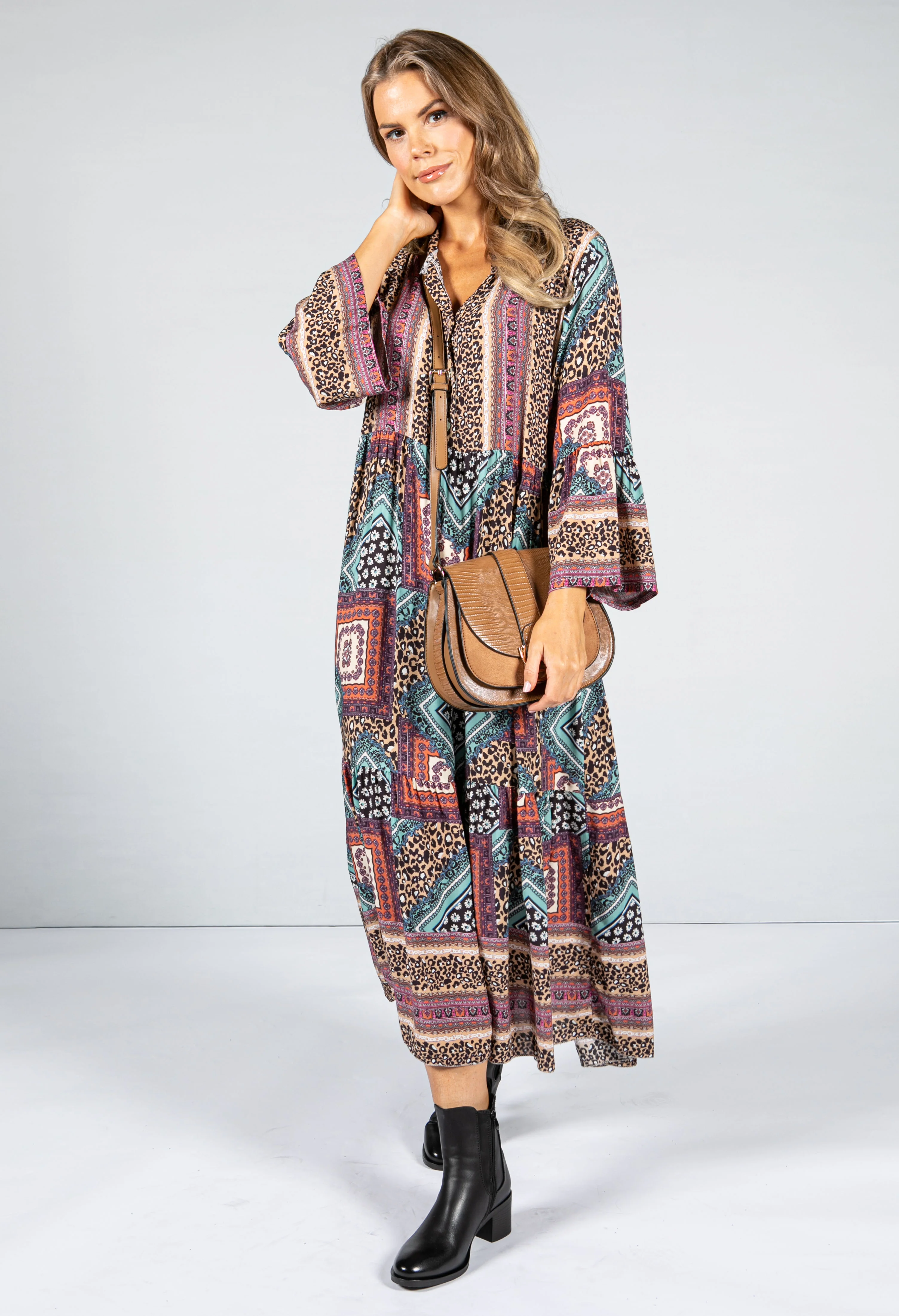Multi-Wear Boho Denim Skirt with Tan Stitching