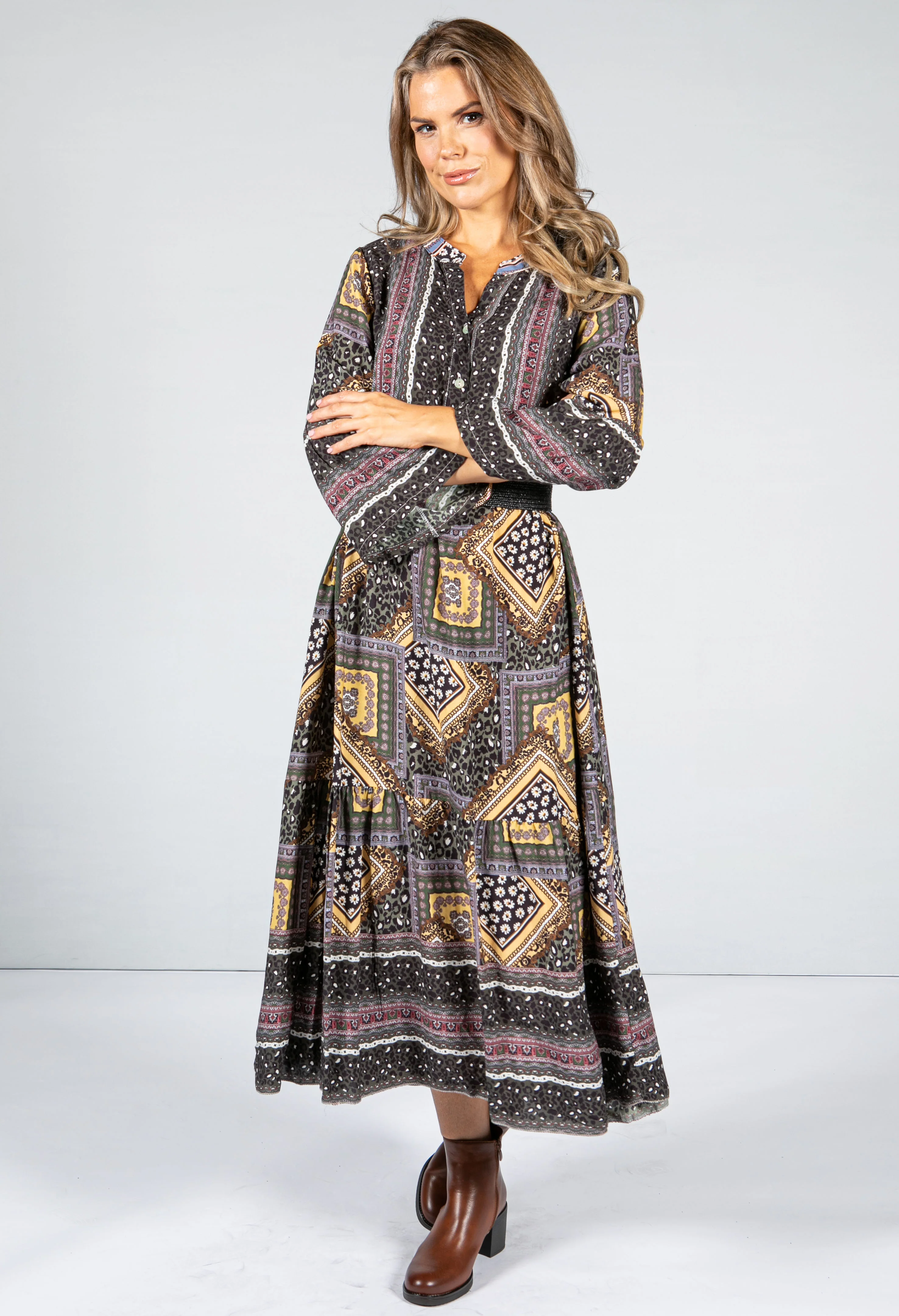 Multi-Wear Boho Dark Distressed Denim Skirt