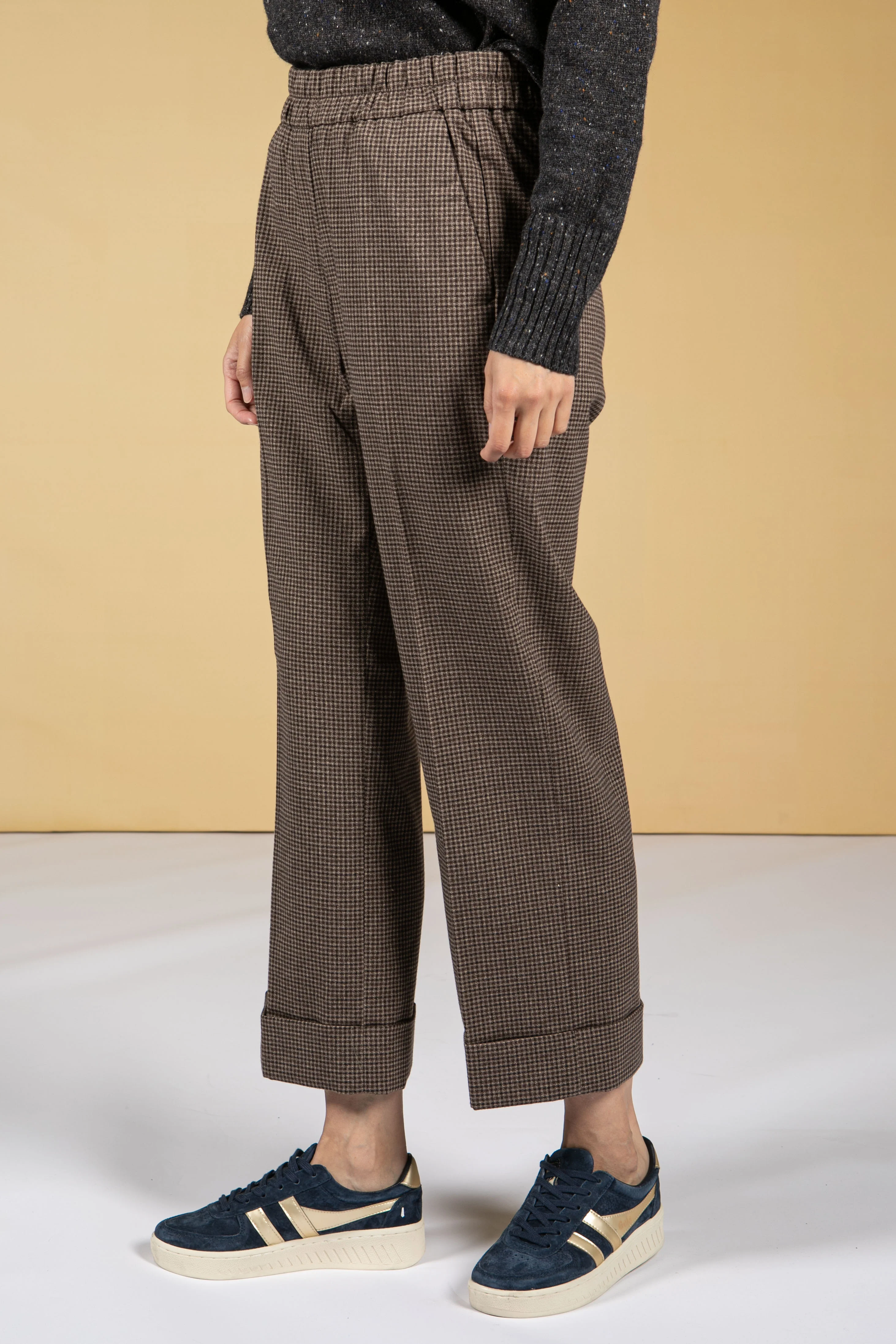 Maikito Check Straight Leg Trousers in Truffle