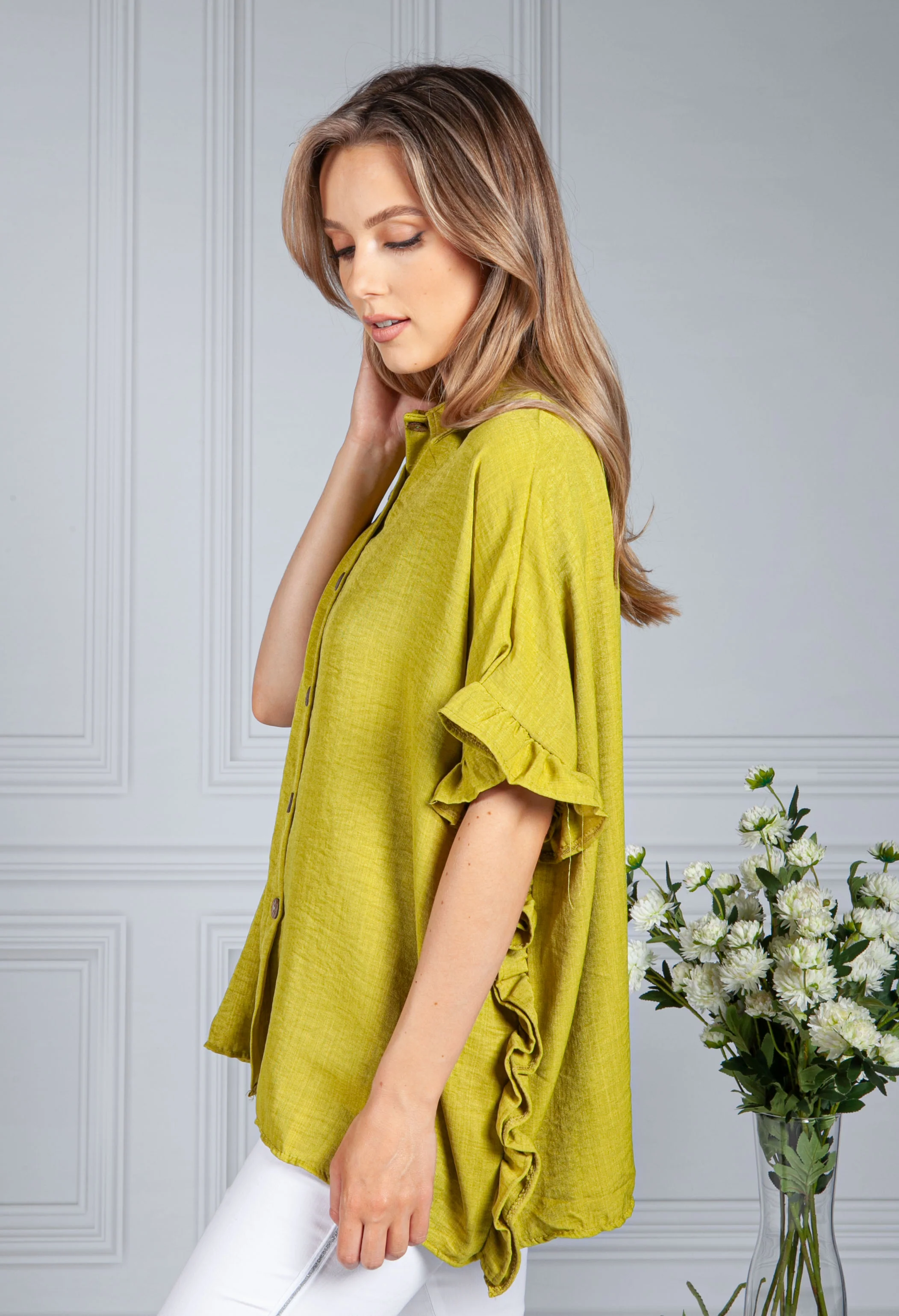 LIME OPTIC SHIRT COLLAR BLOUSE