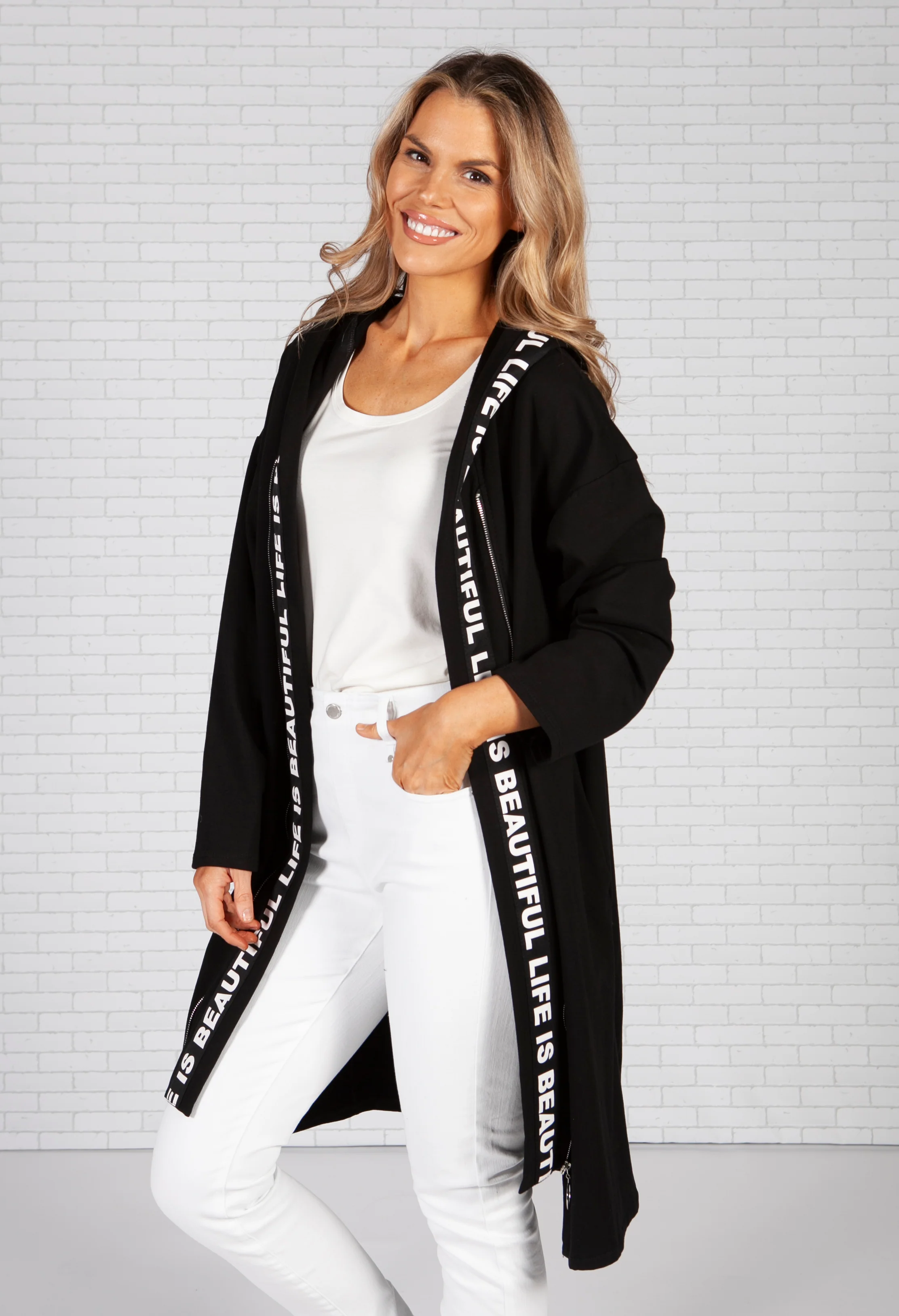 Logo Strapped Pocket Zip Up Cardi in Light Grey