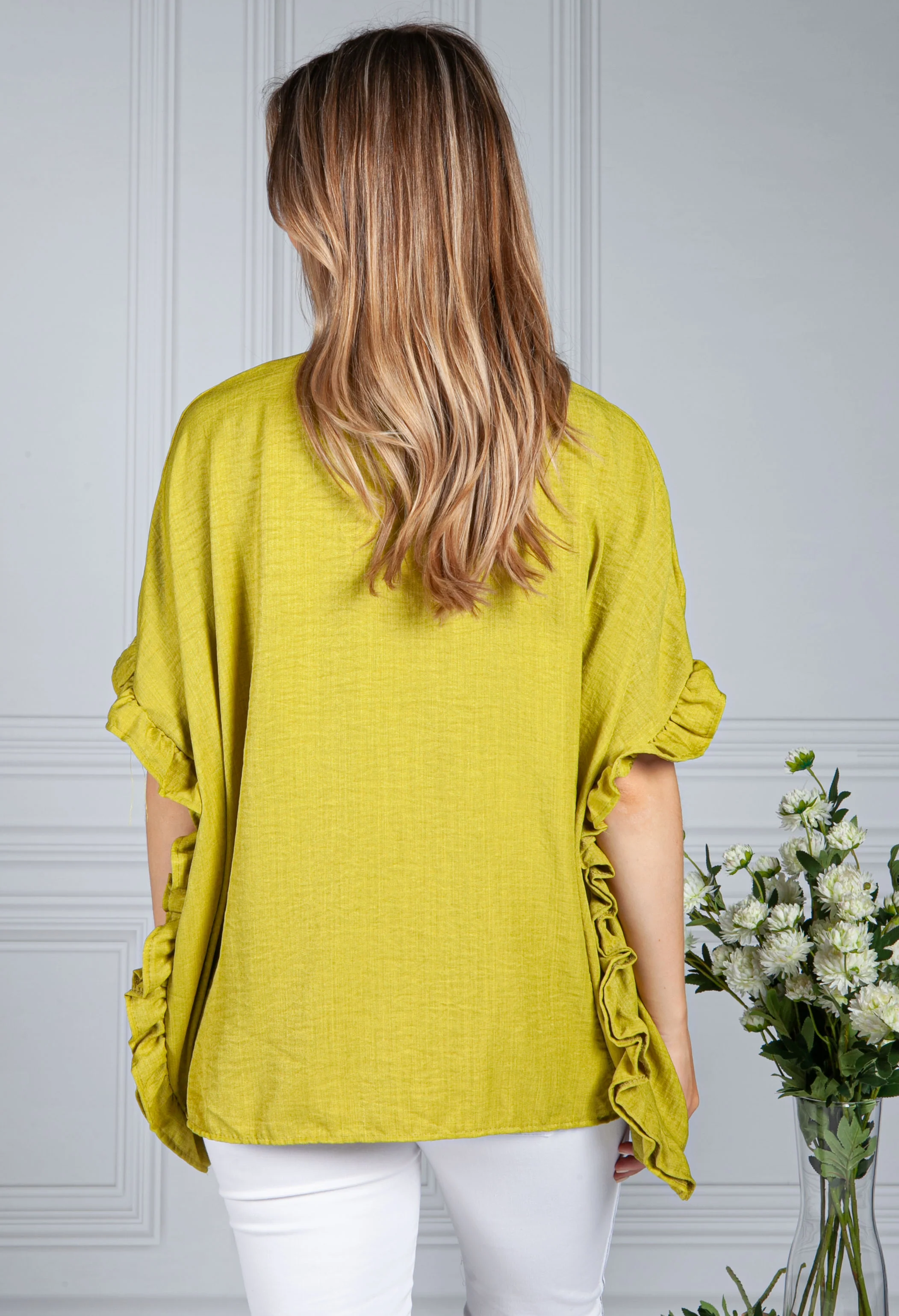 LINEN TOUCH TOP WITH PAINTBRUSH STROKE DETAILS