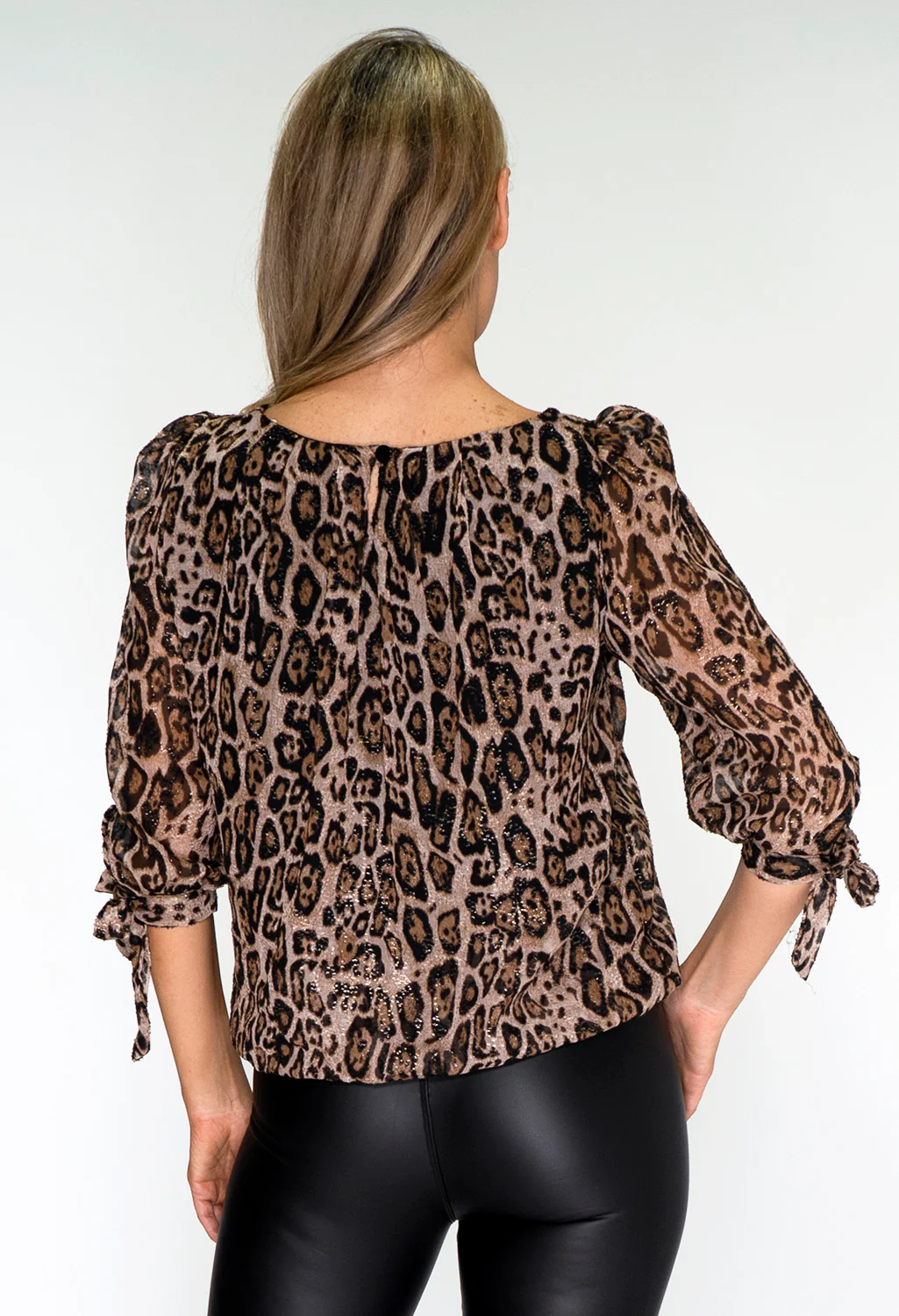 Leopard Print Pleated Blouse