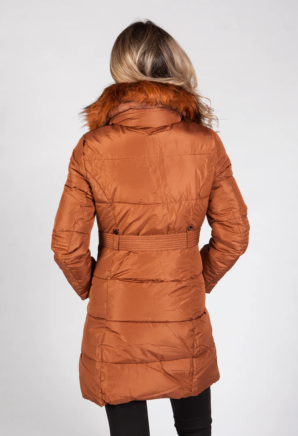 Light Brown Belted Coat with Detachable Faux Fur Collar