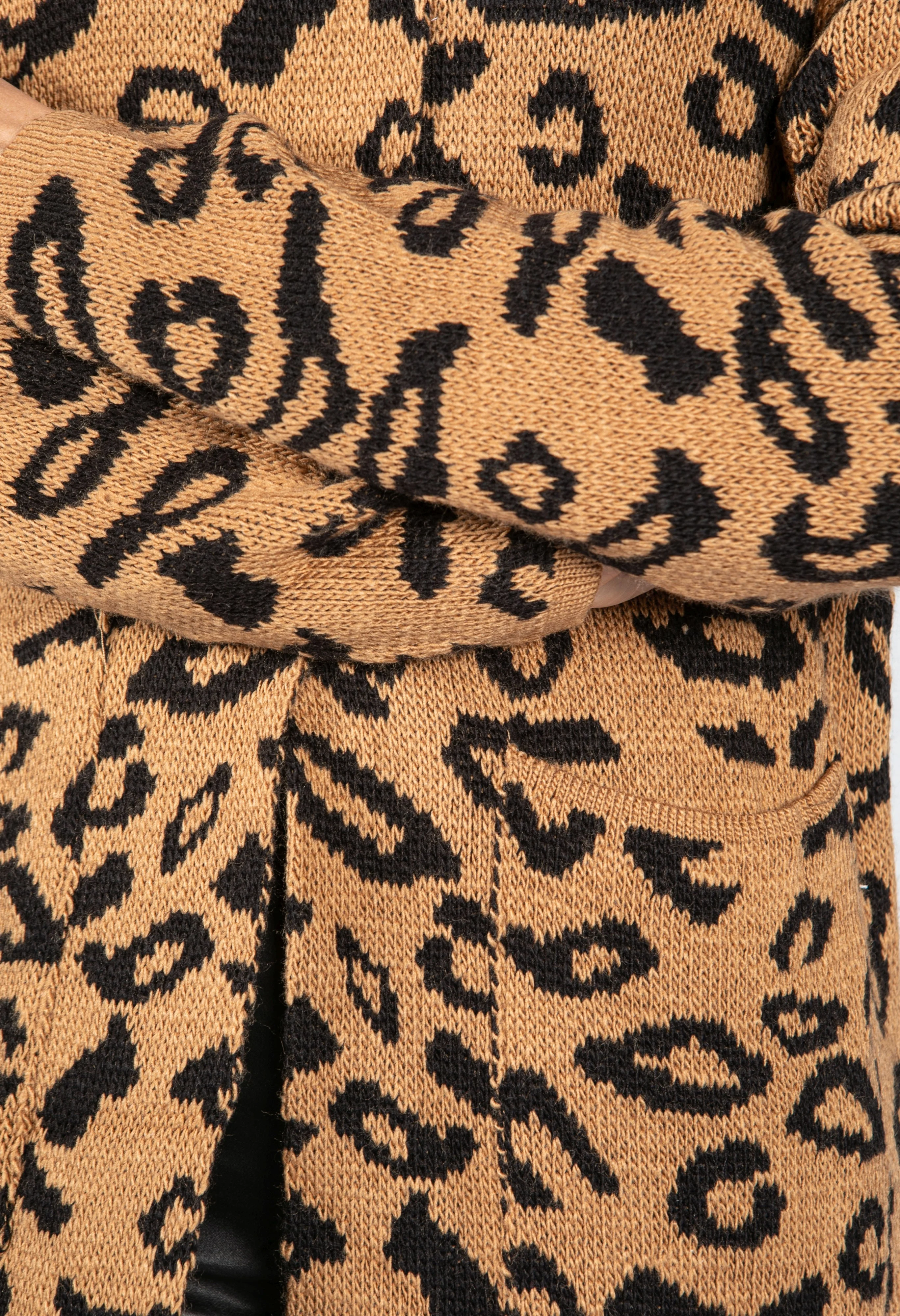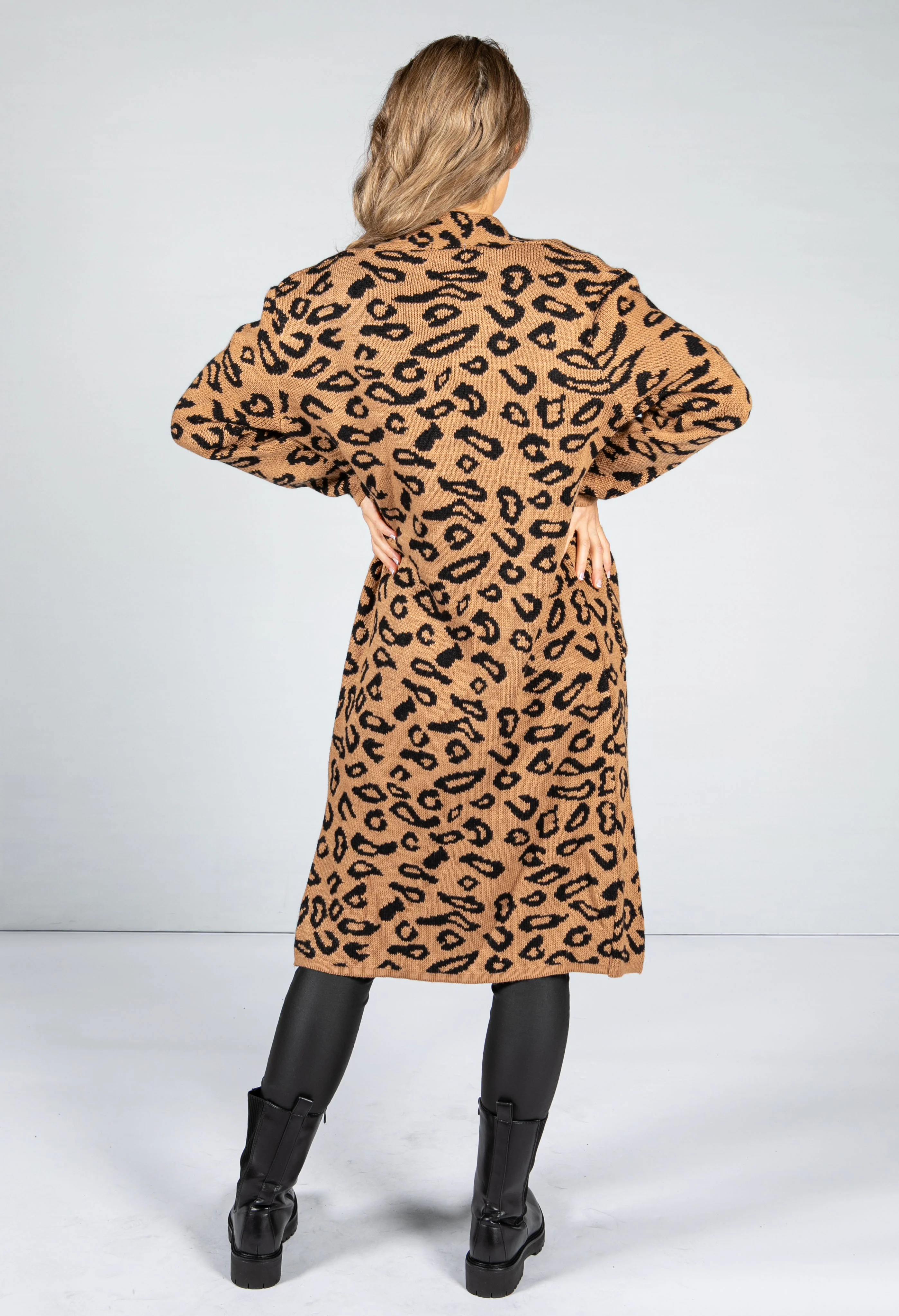 Leopard Design Long Cardi in Camel