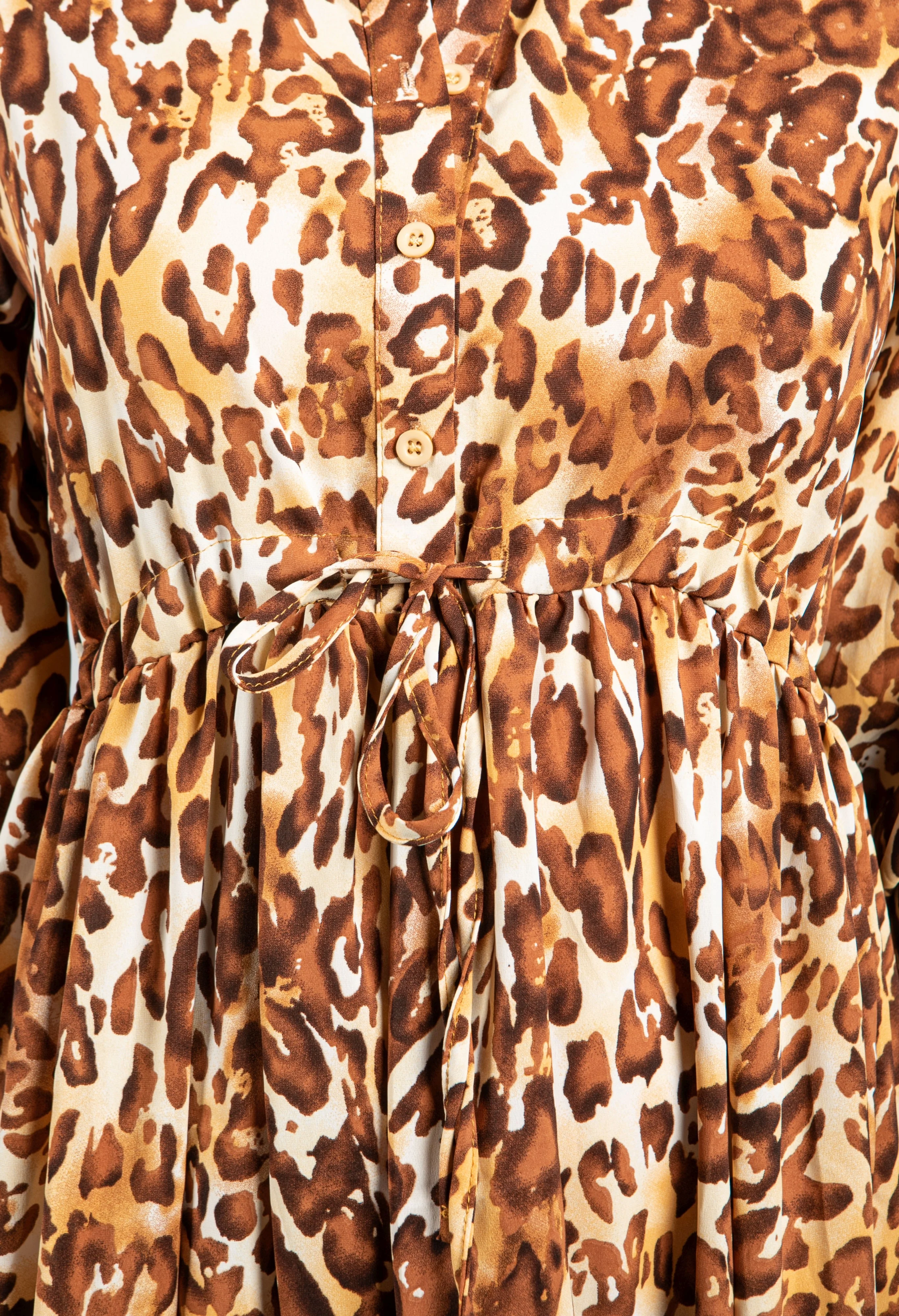 LEOPARD PRINT RUFFLE DRESS WITH LONG SLEEVES