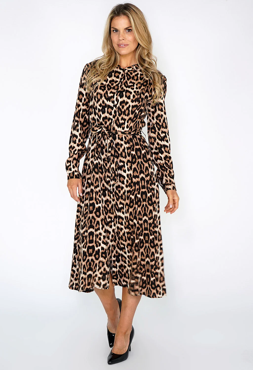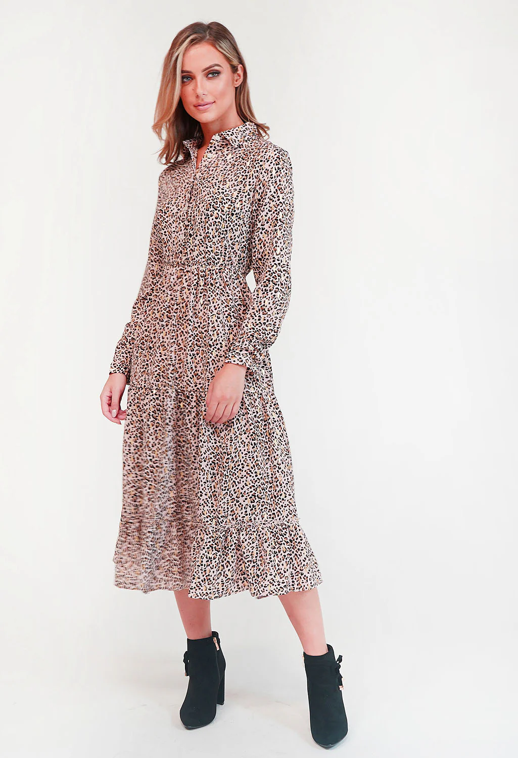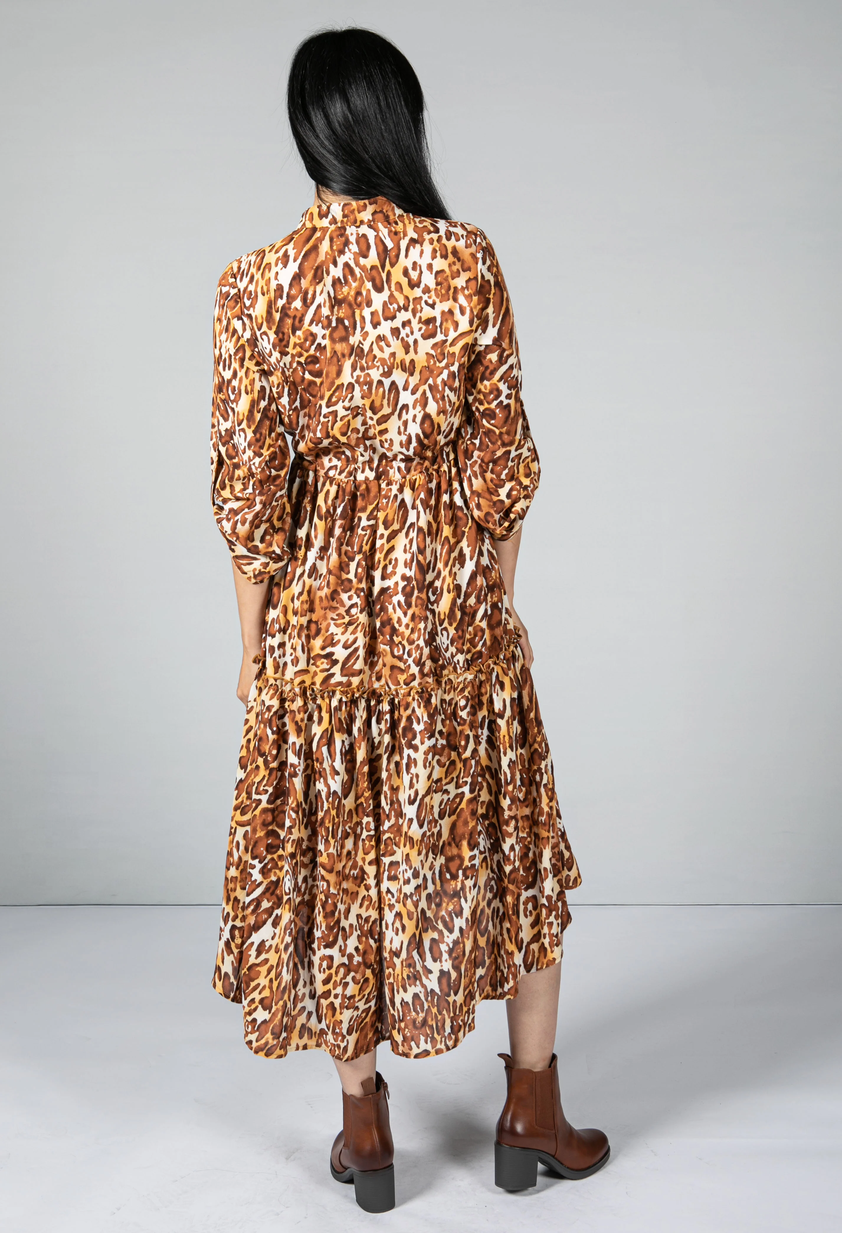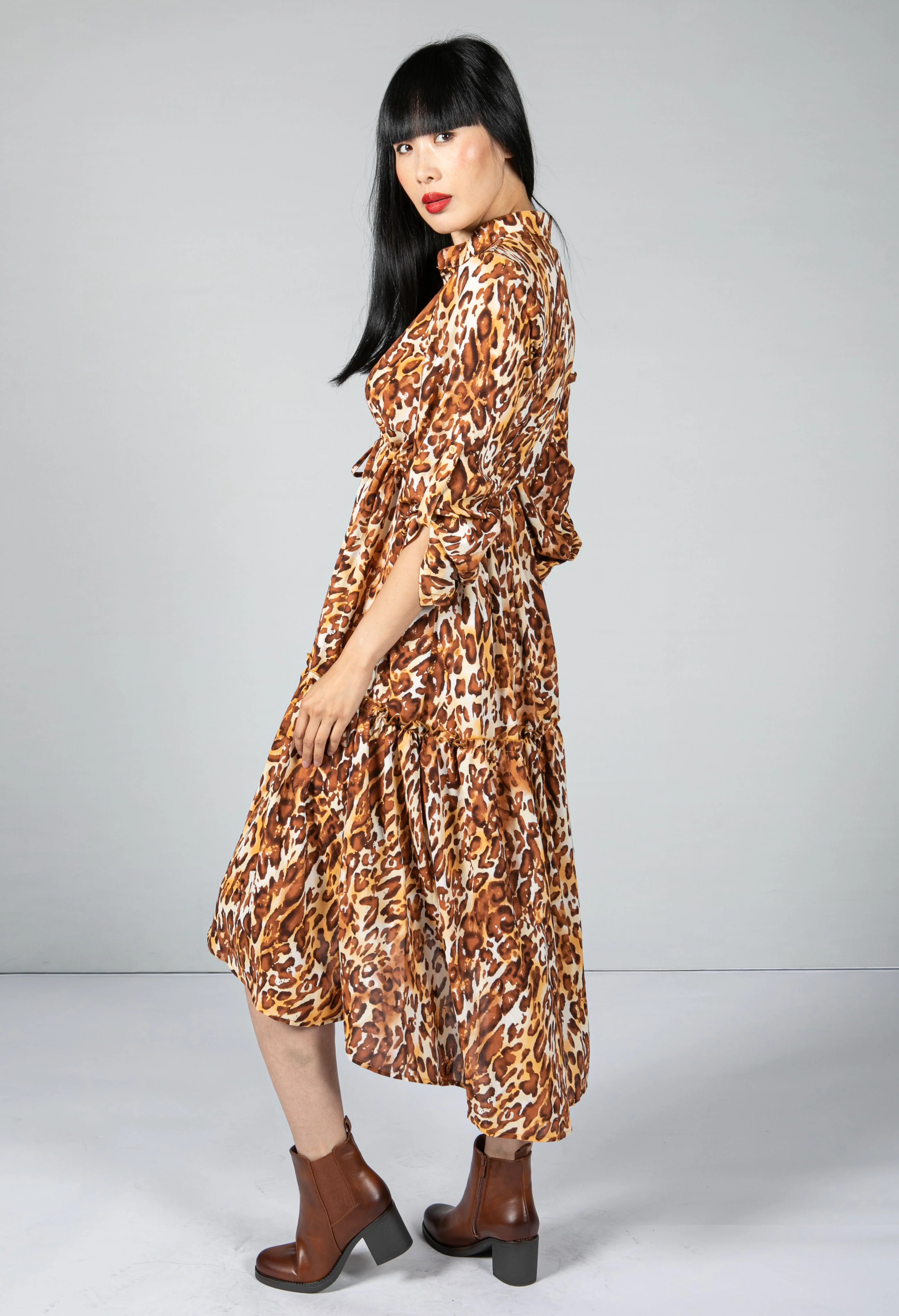 Leopard Print Shirt Midi Dress