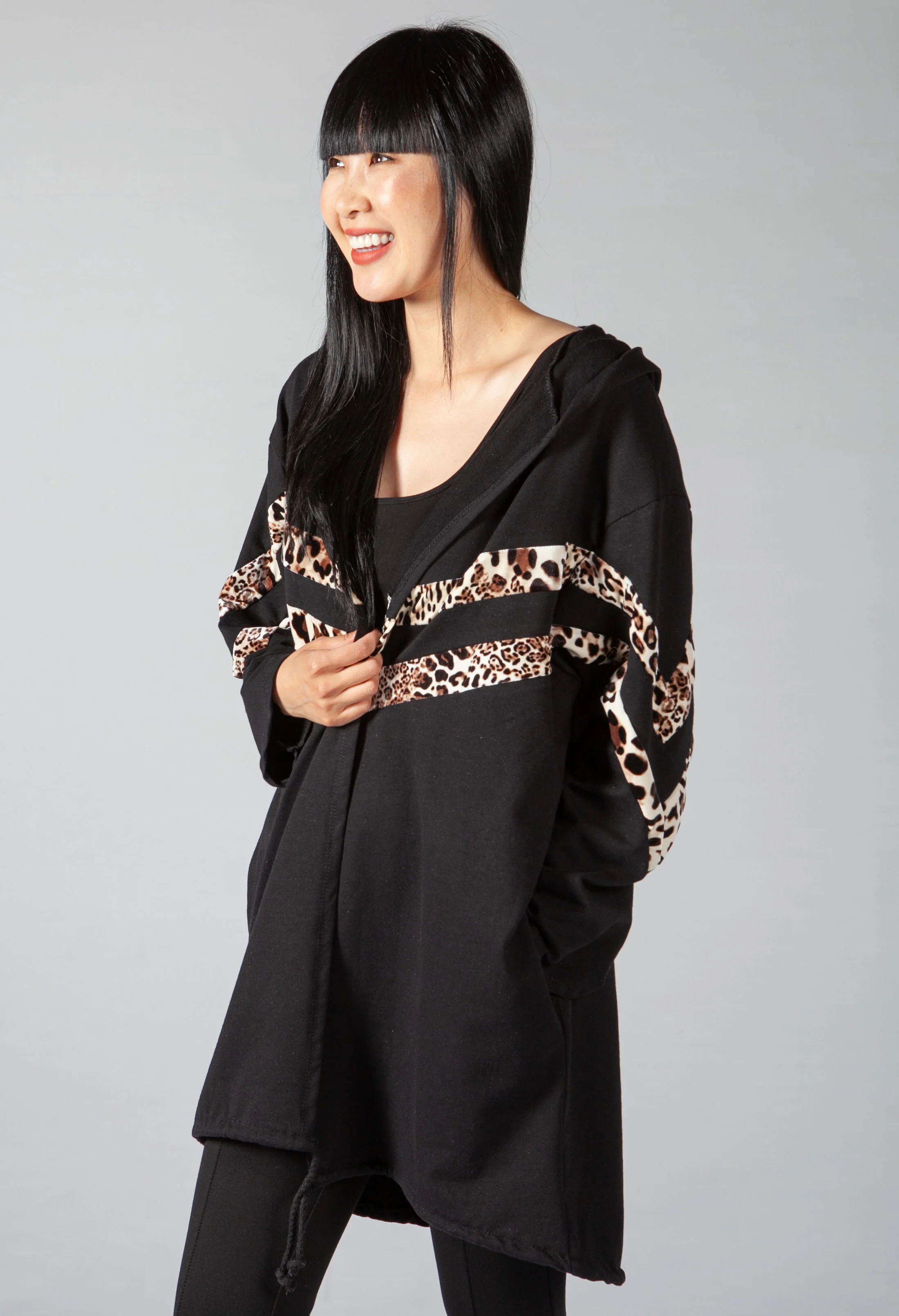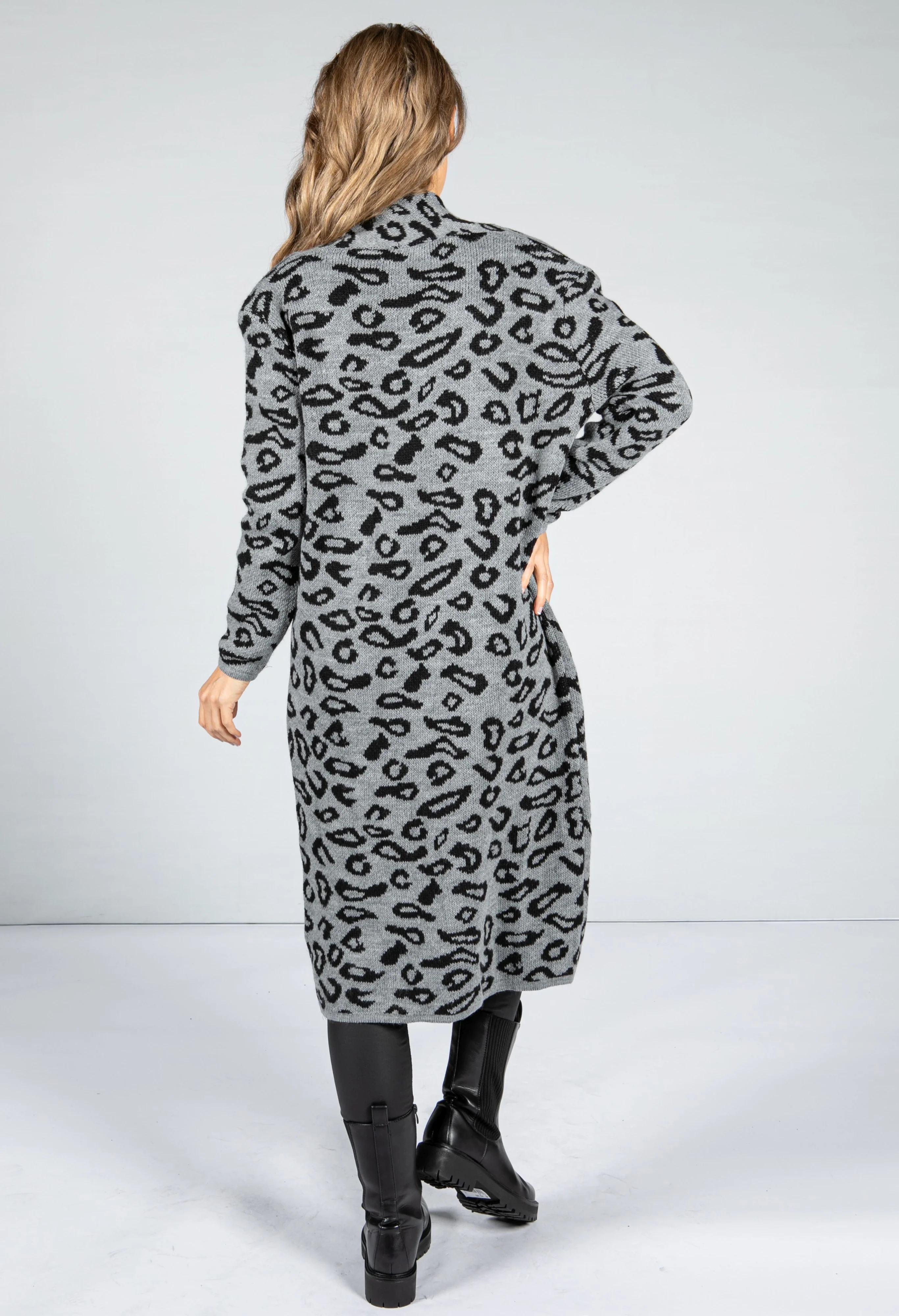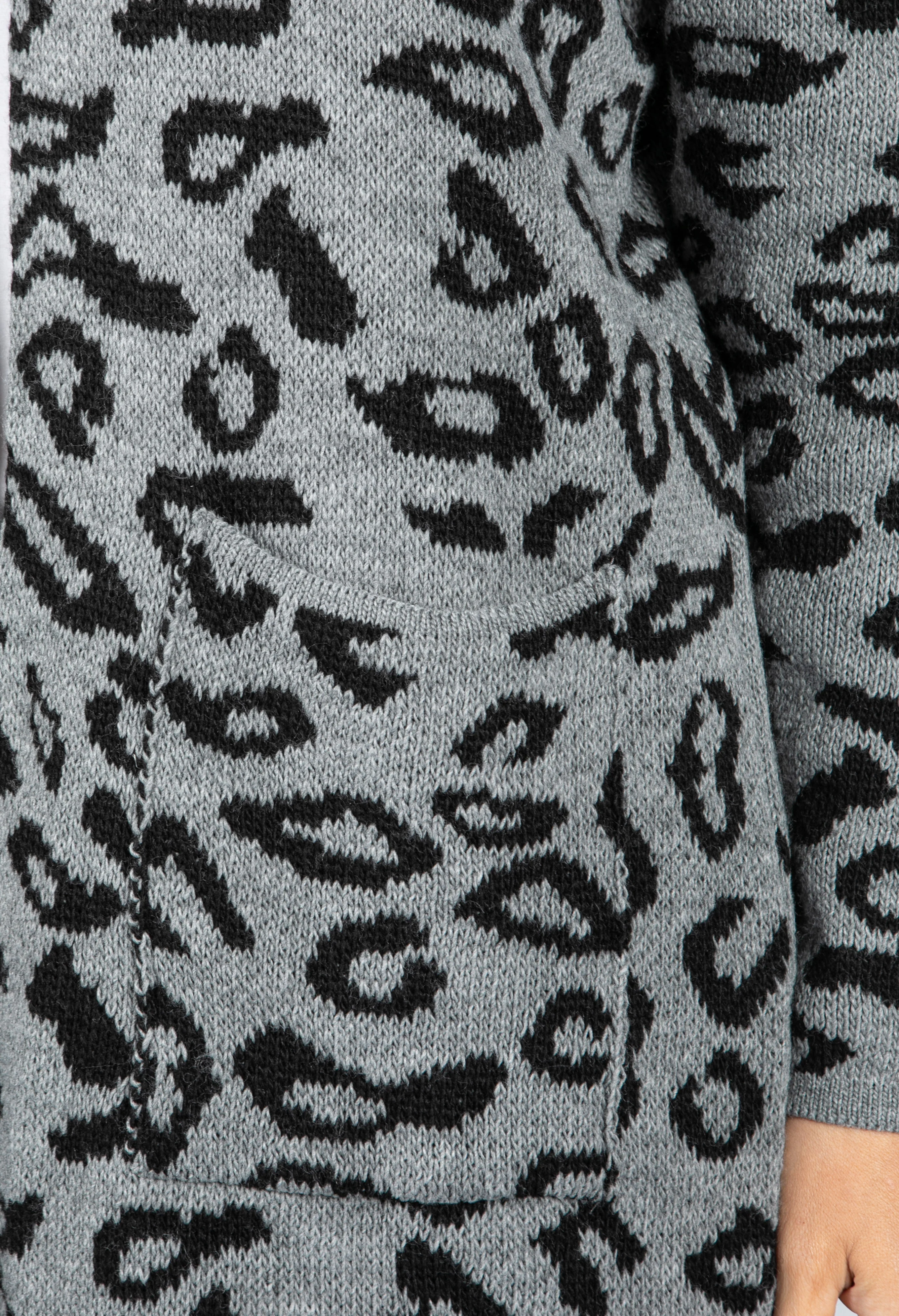 Leopard Design Long Cardi in Mid Grey