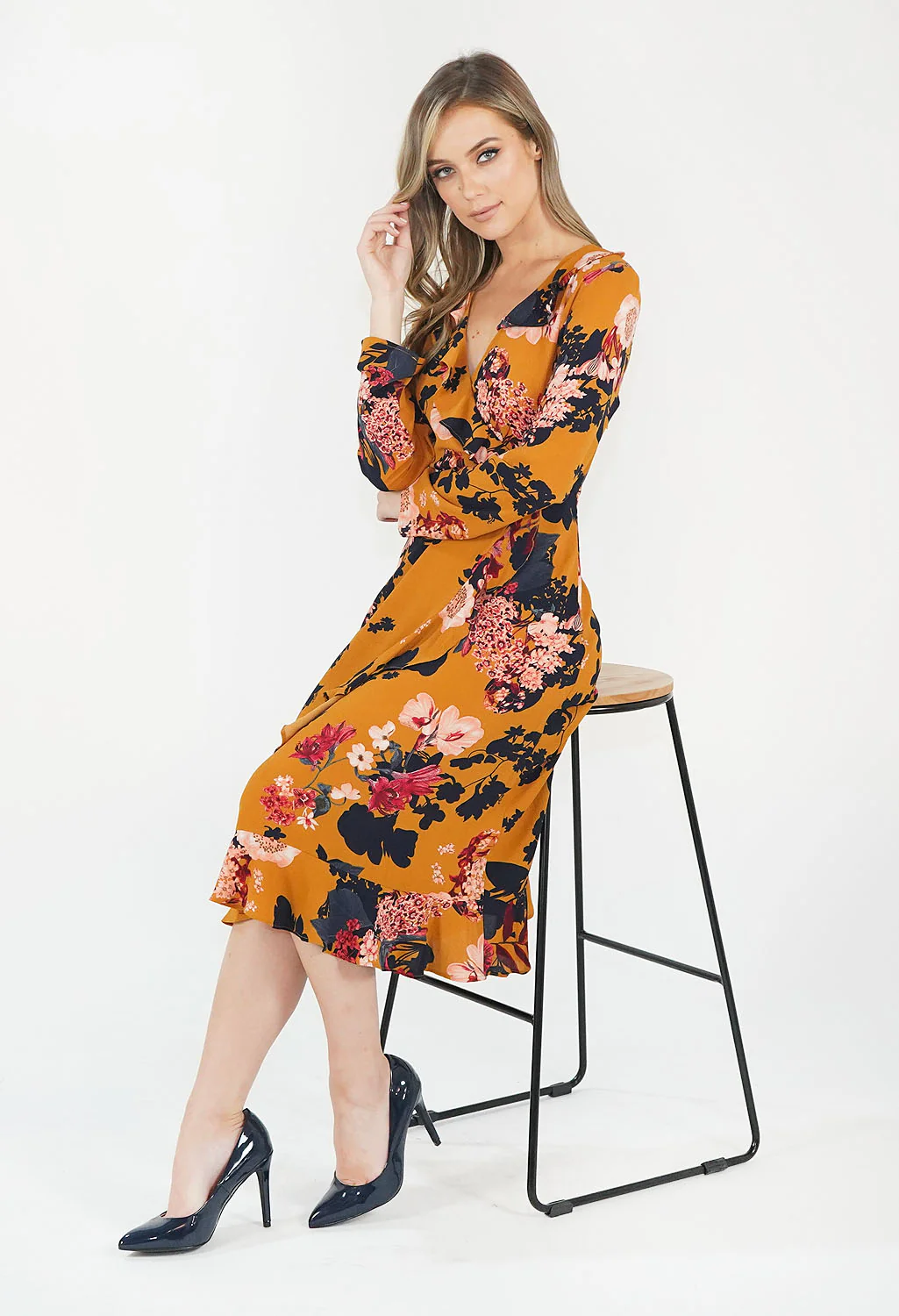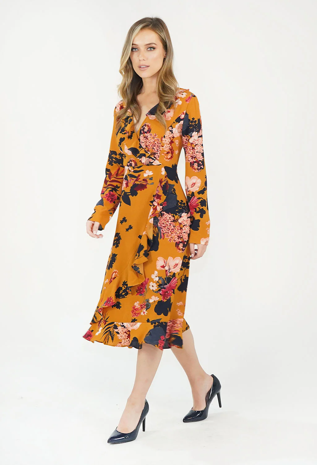 Mustard Floral Pattern Print Dress