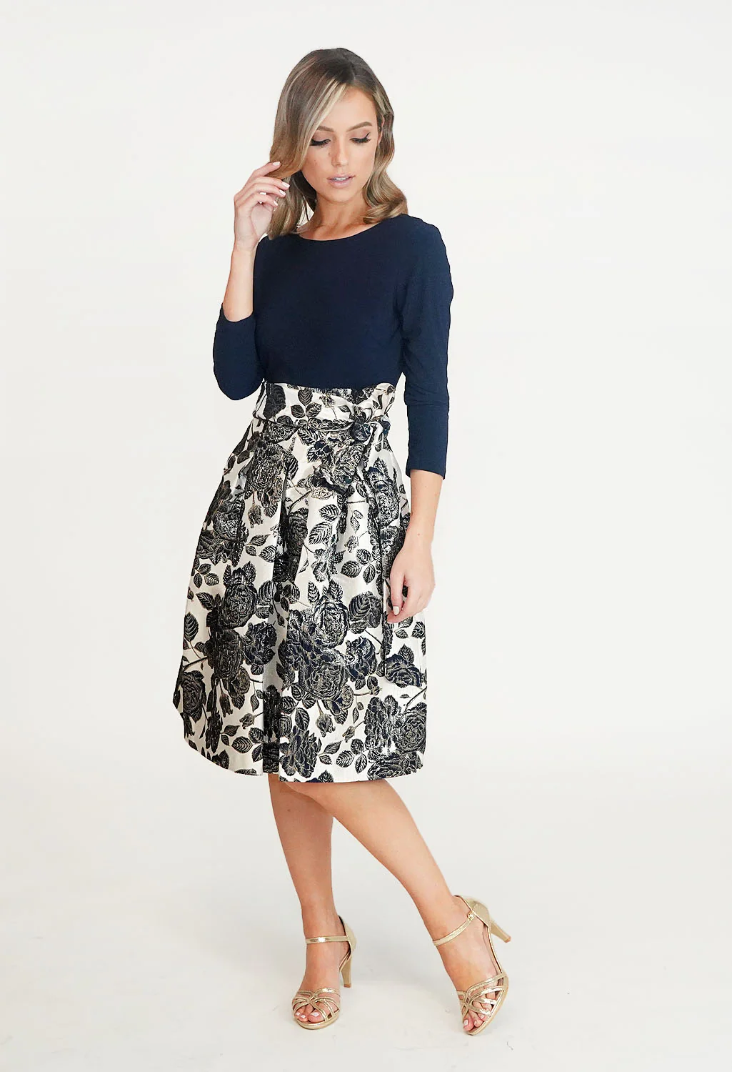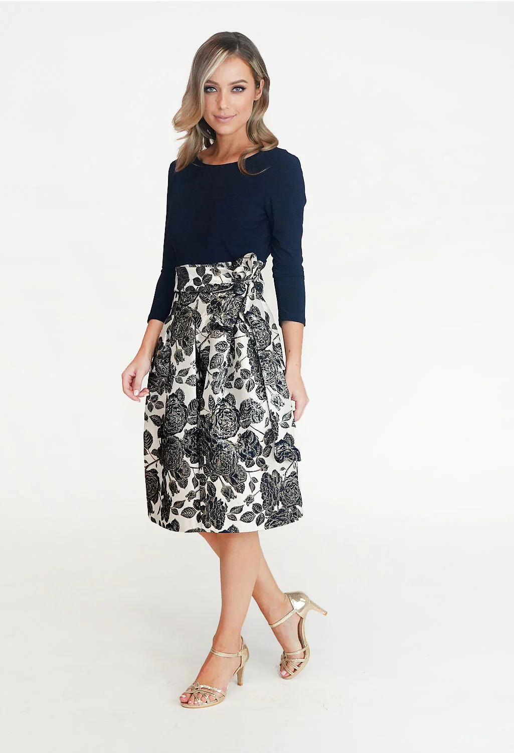 Navy & Cream Floral Pattern Dress