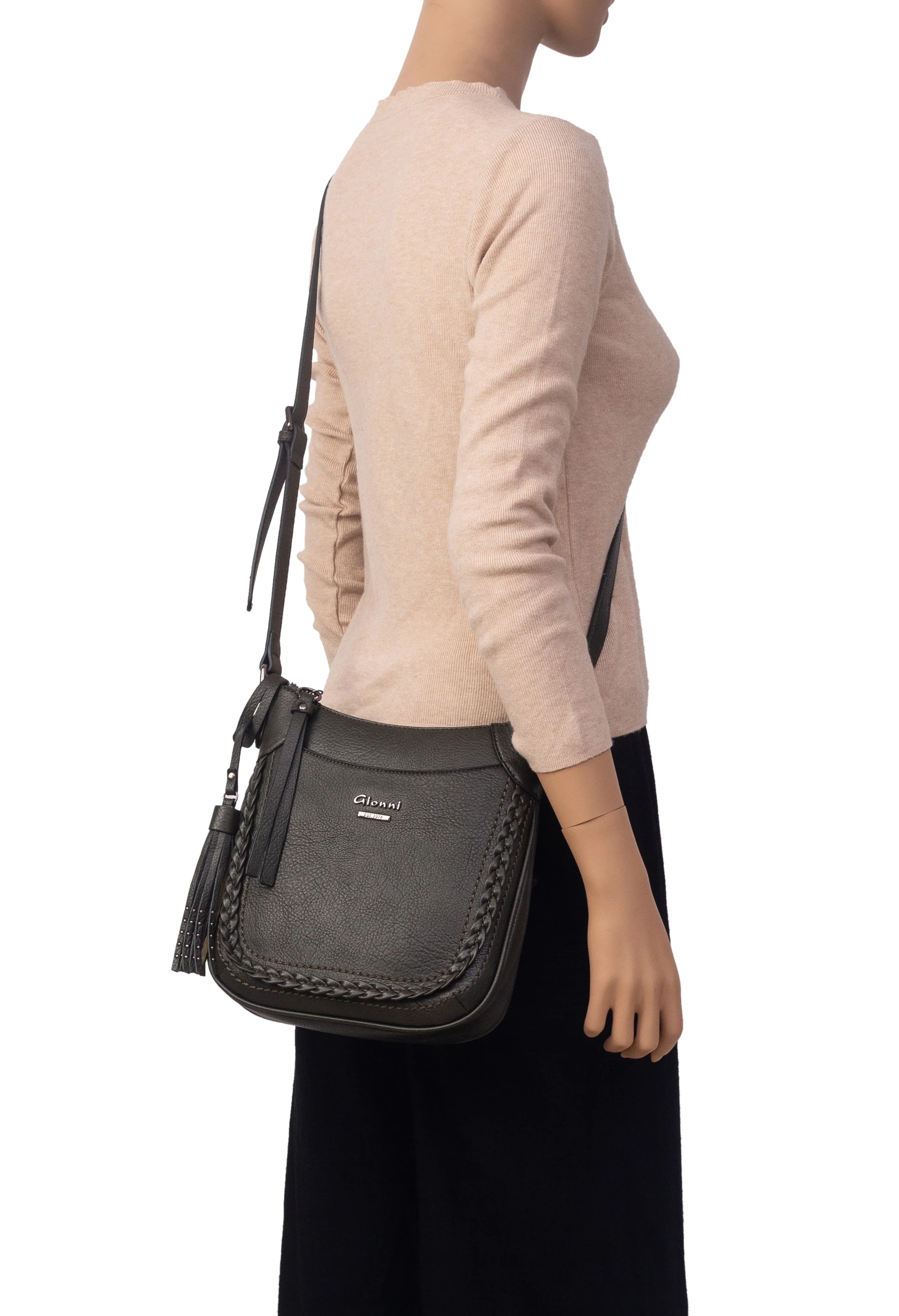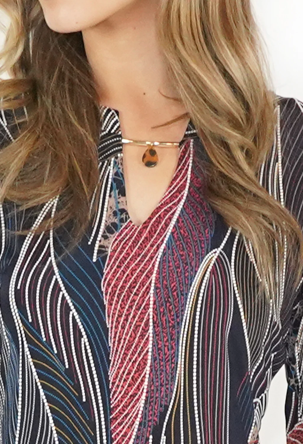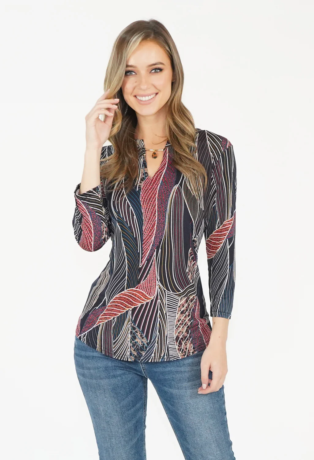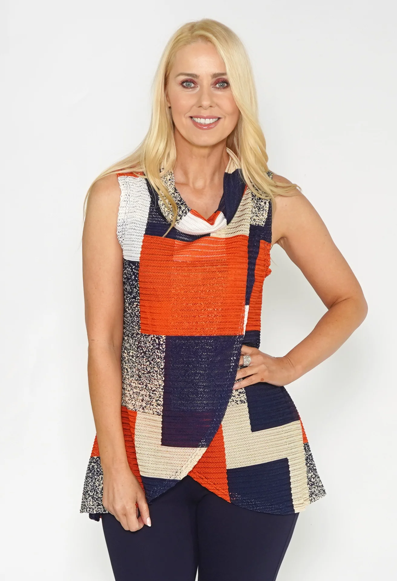 Multi Coloured Cross Over Patterned Dress with Pleated Detail