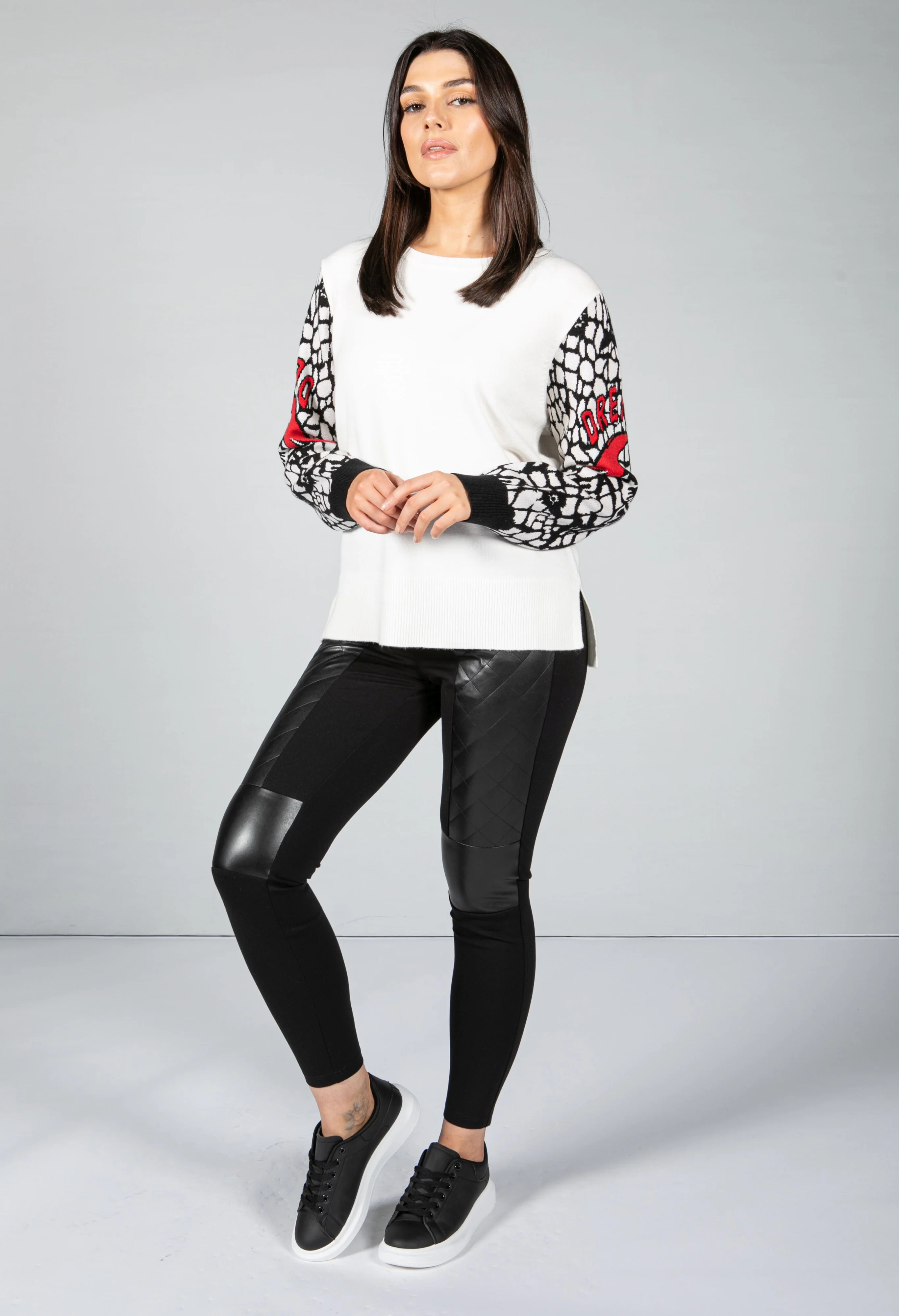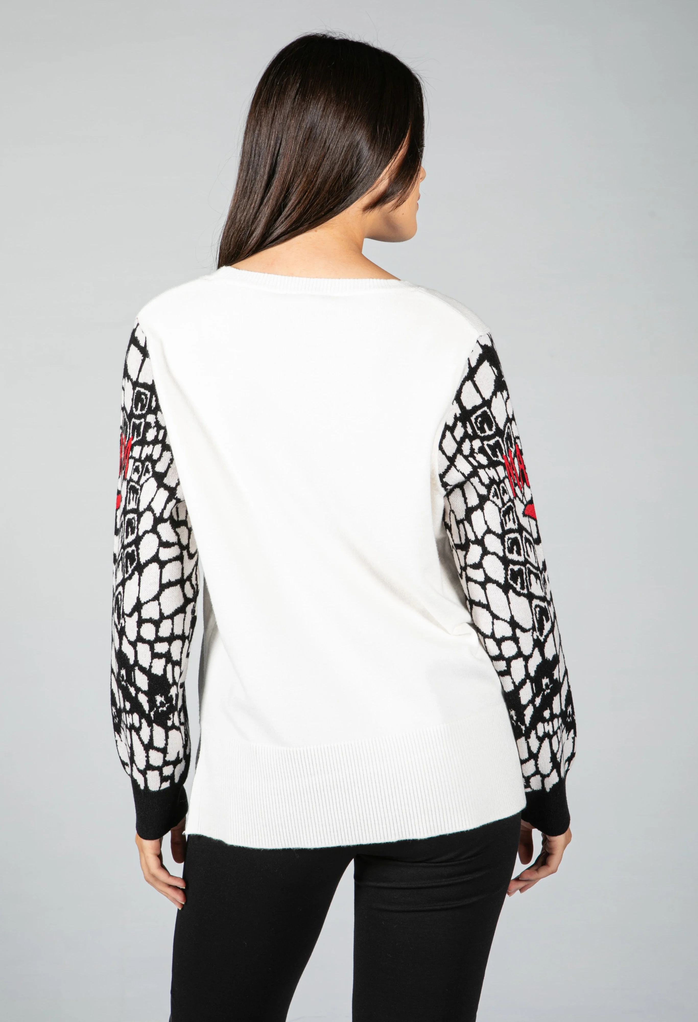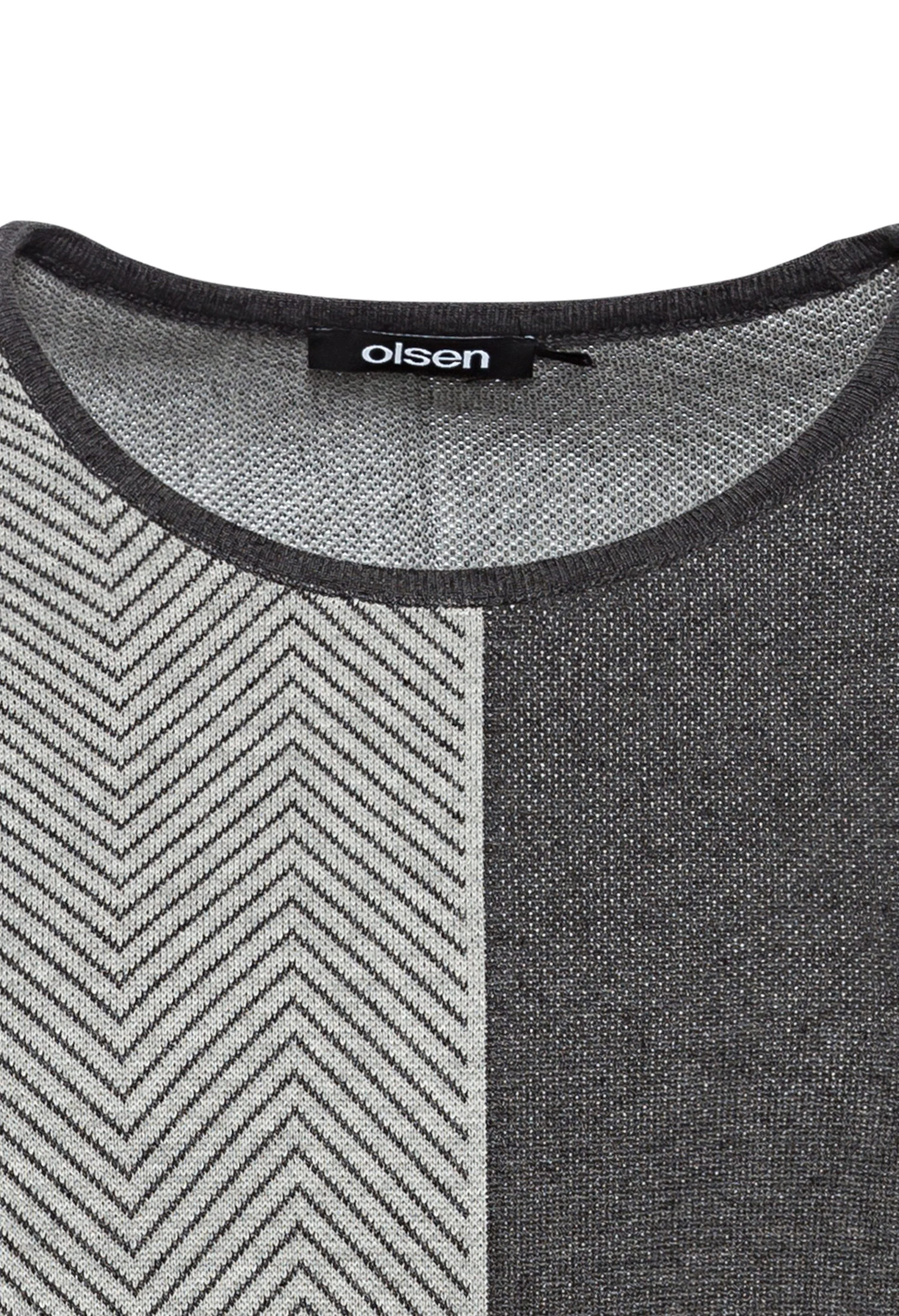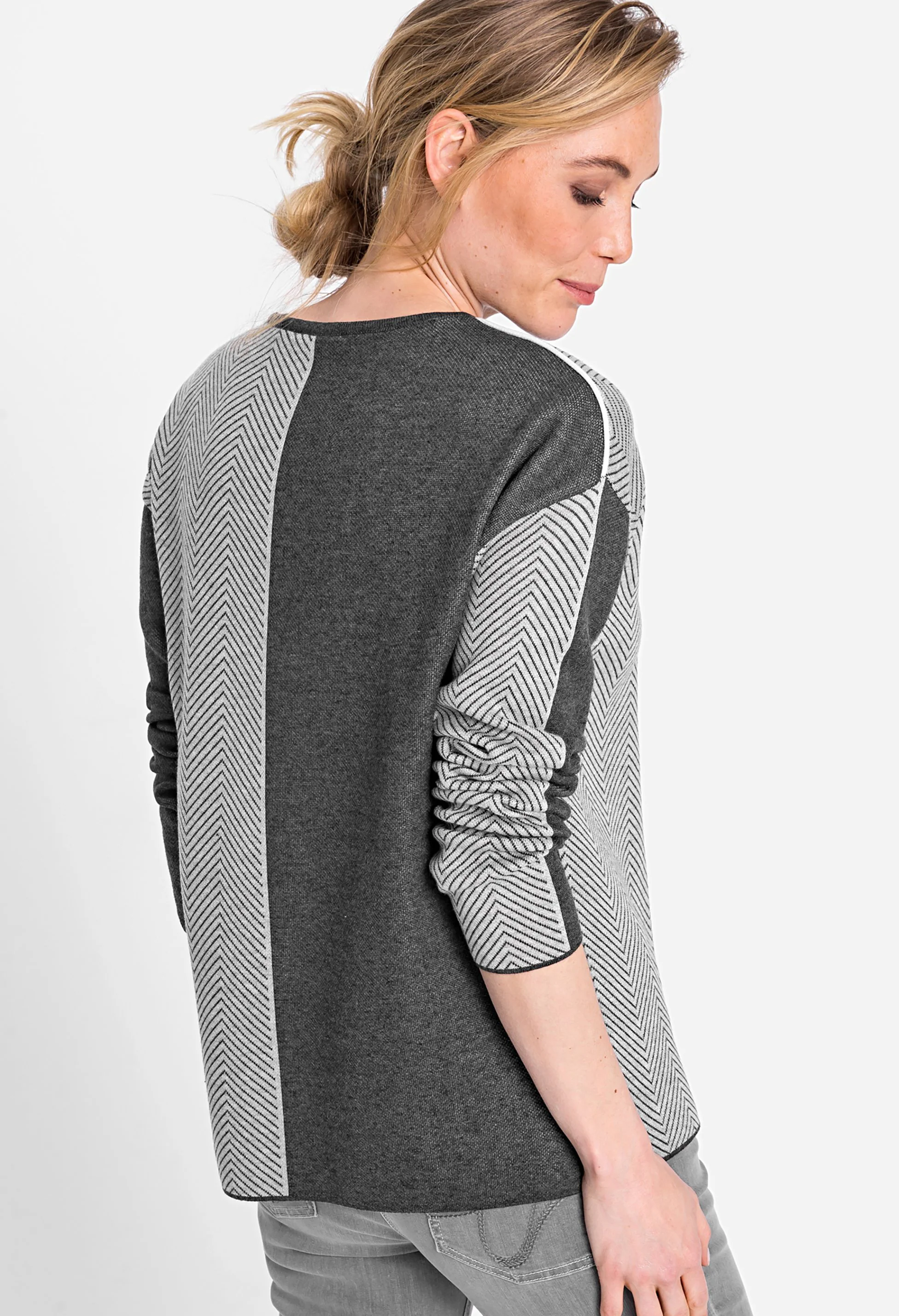 Long Sleeve Jewel Neck Chevron & Solid Jumper