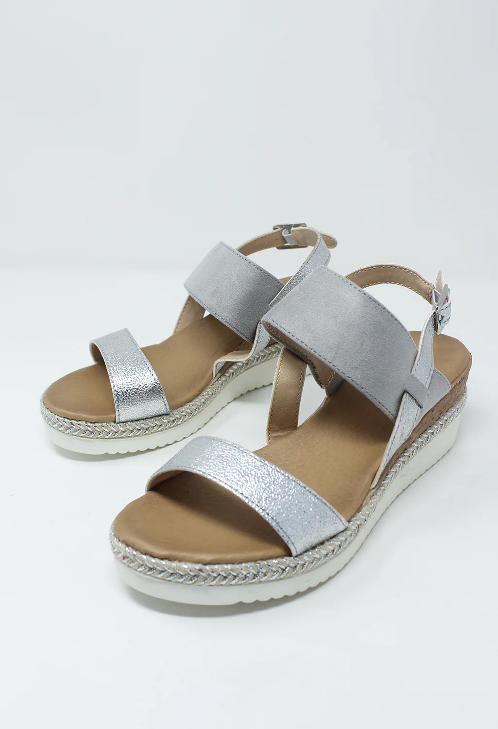 Light Grey Mid Wedge Strap Sandal