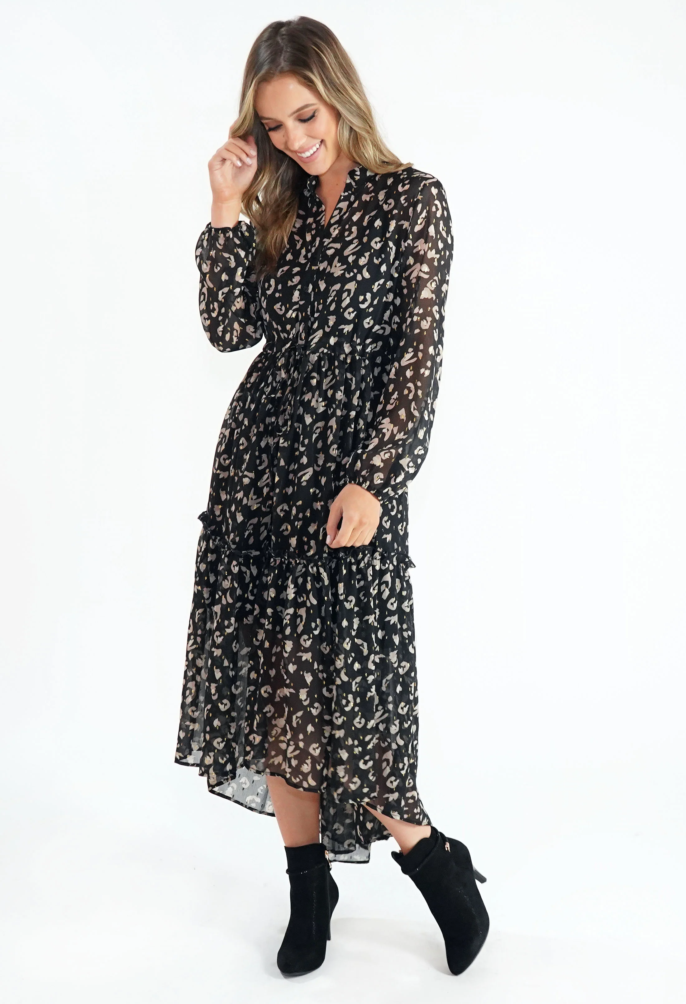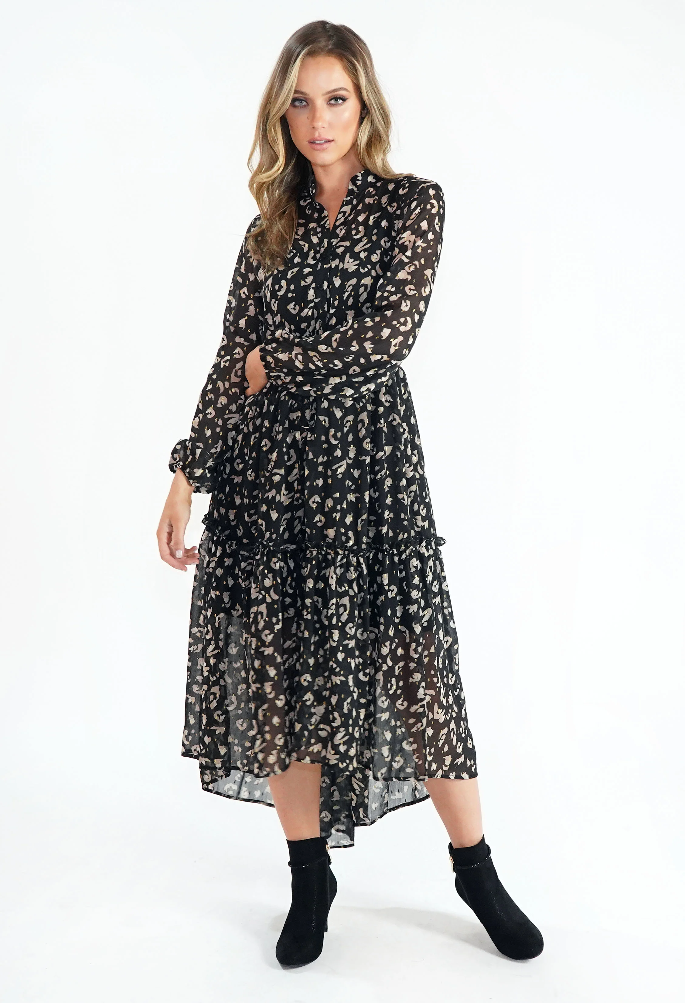 LEOPARD PRINT RUFFLE DRESS WITH LONG SLEEVES