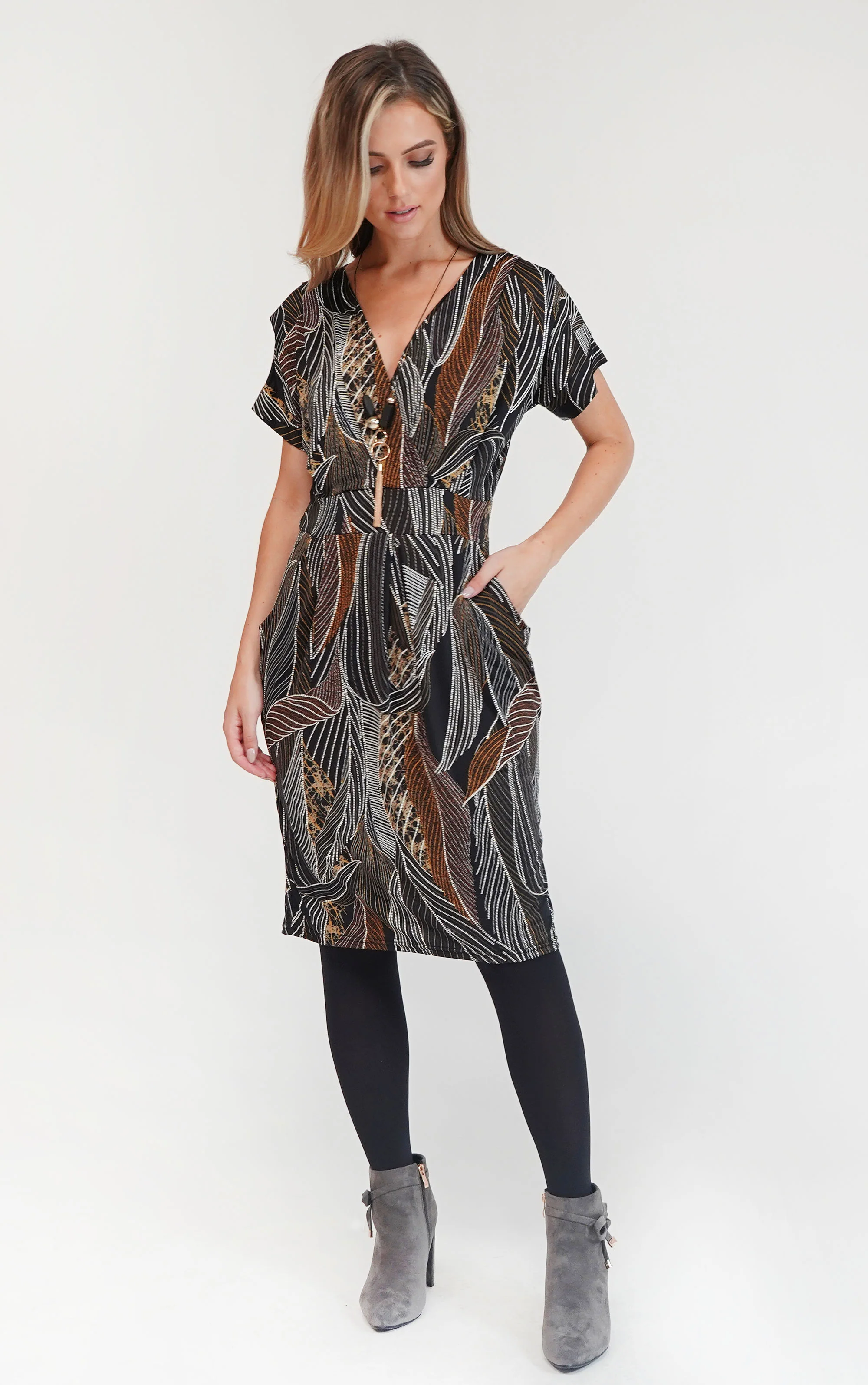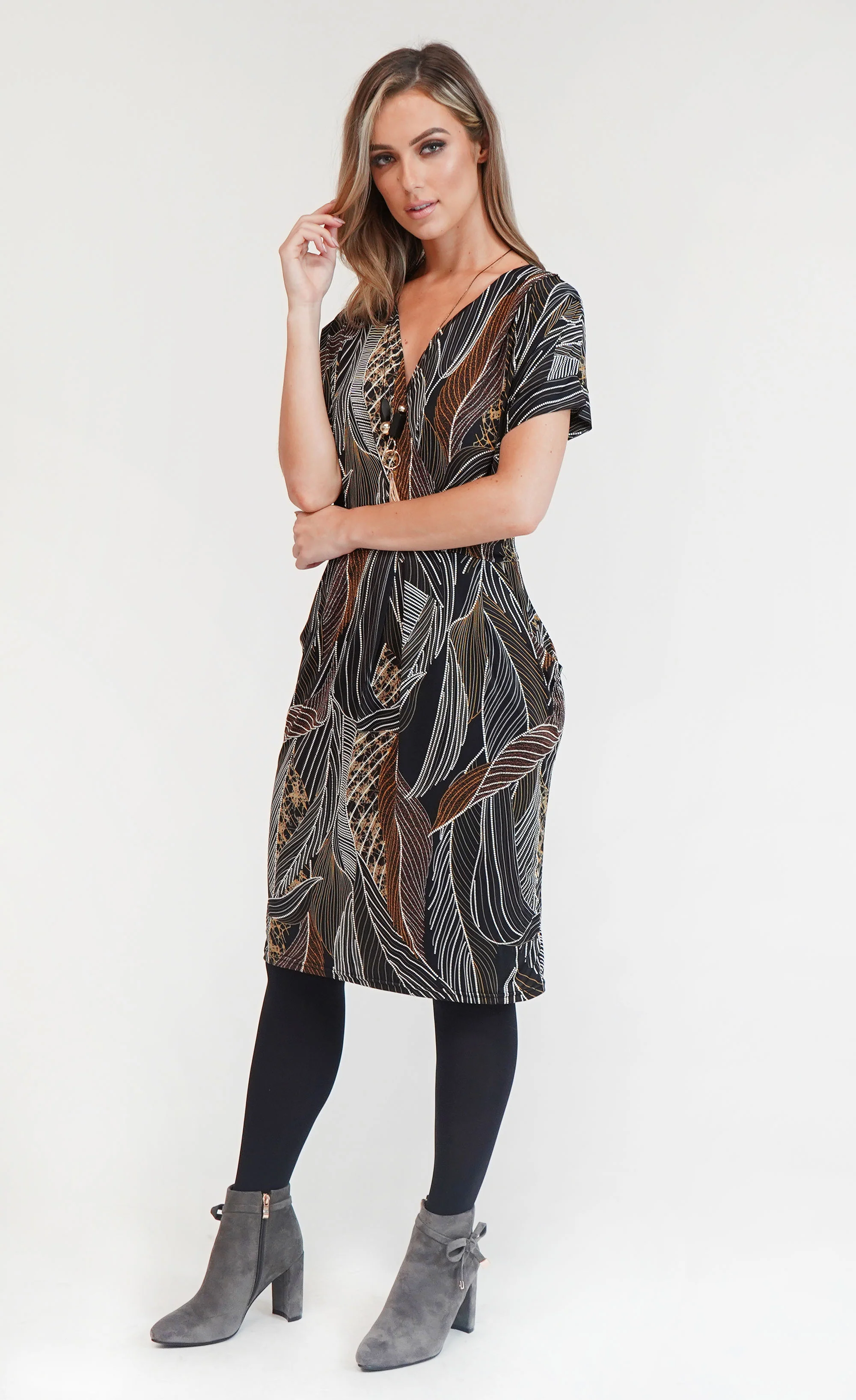 LEAF PRINT TOP WITH STUD DETAIL IN KHAKI