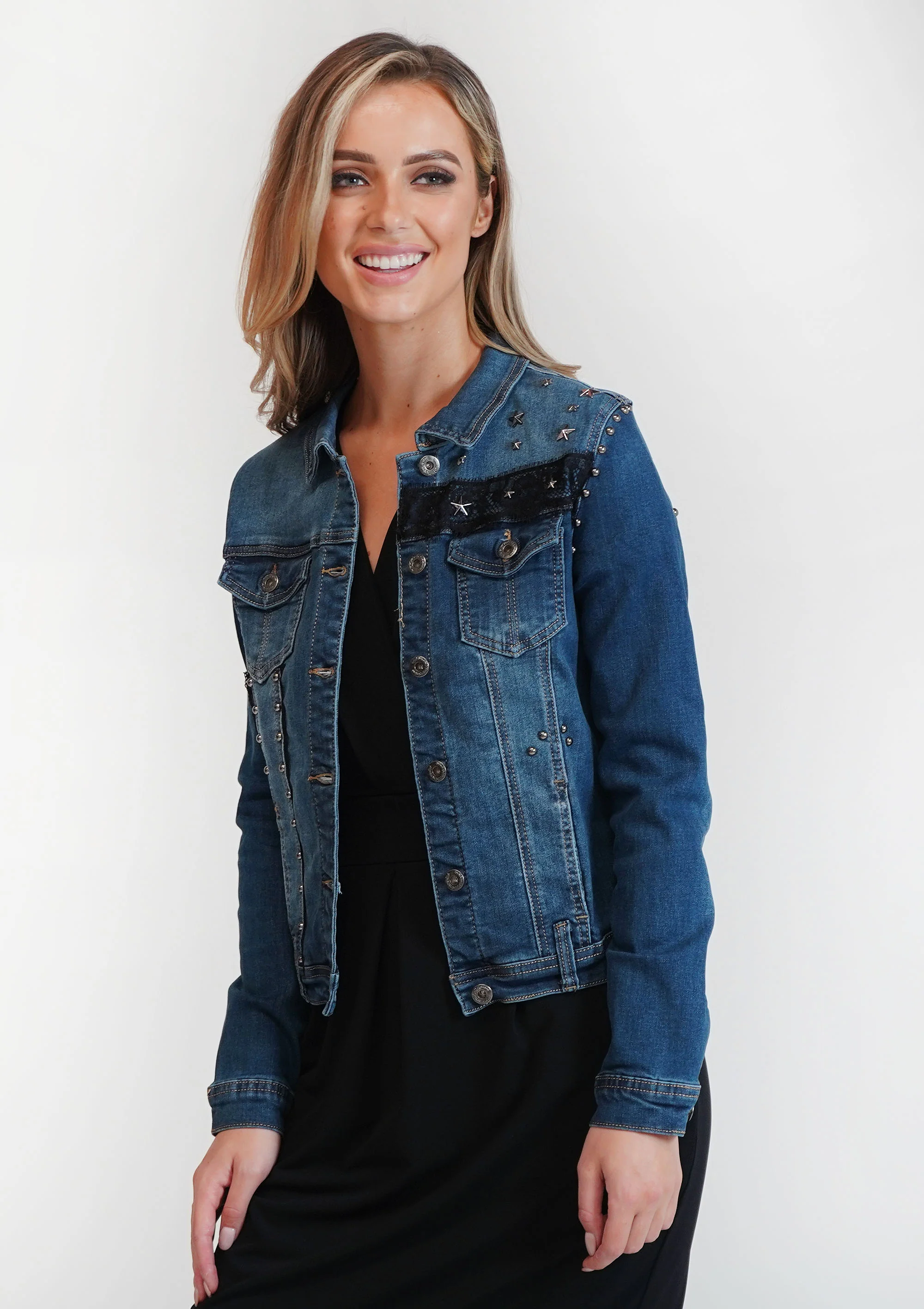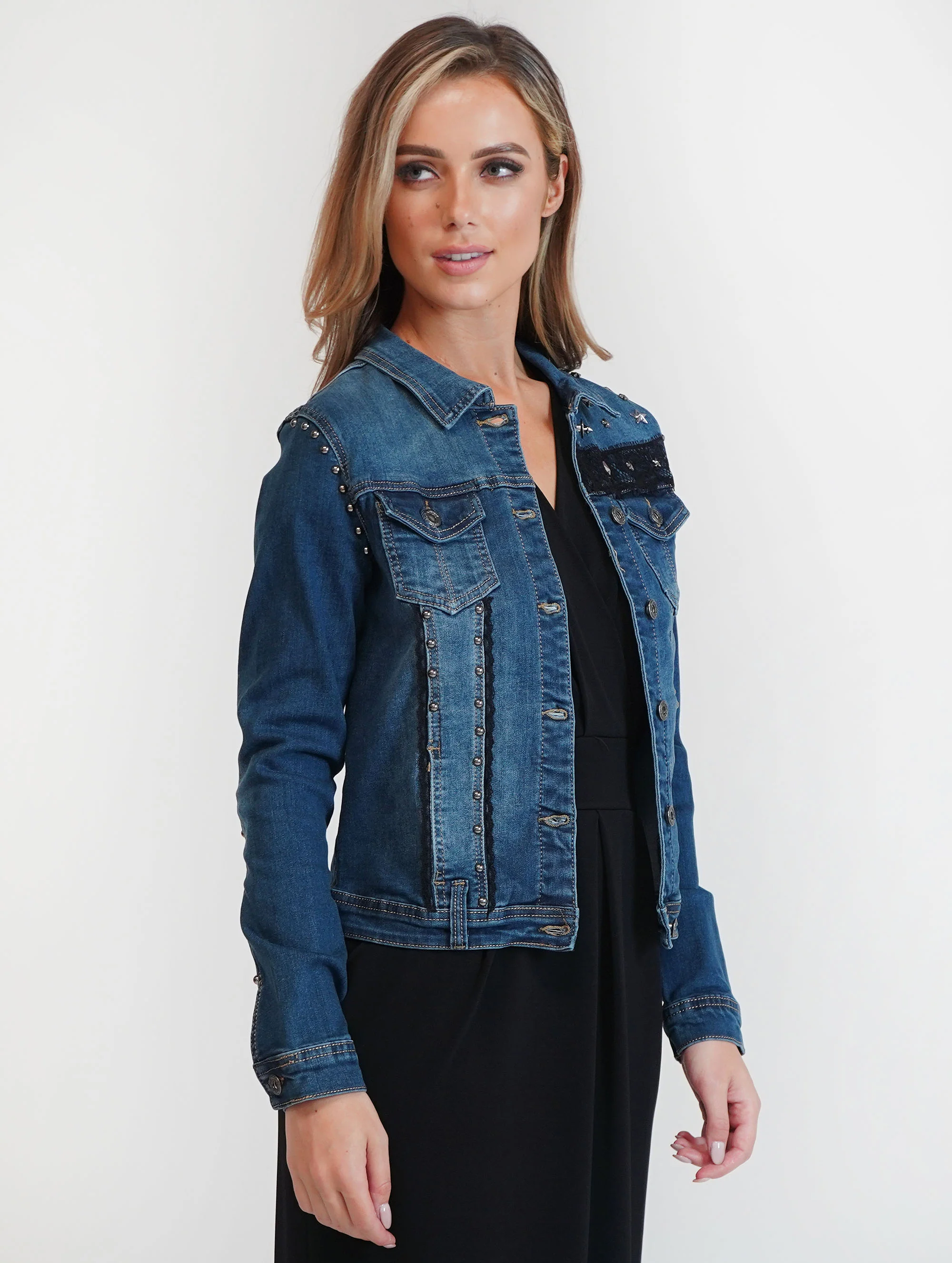 Lace panel Relaxed Fit Blouse in Faded Blue