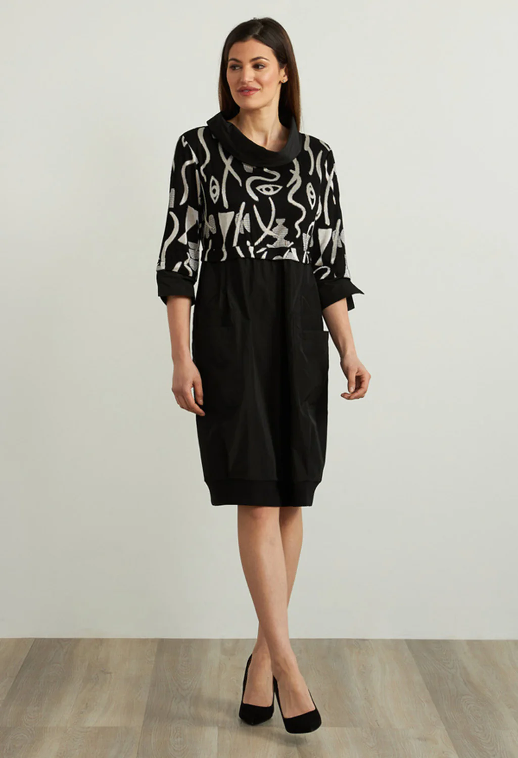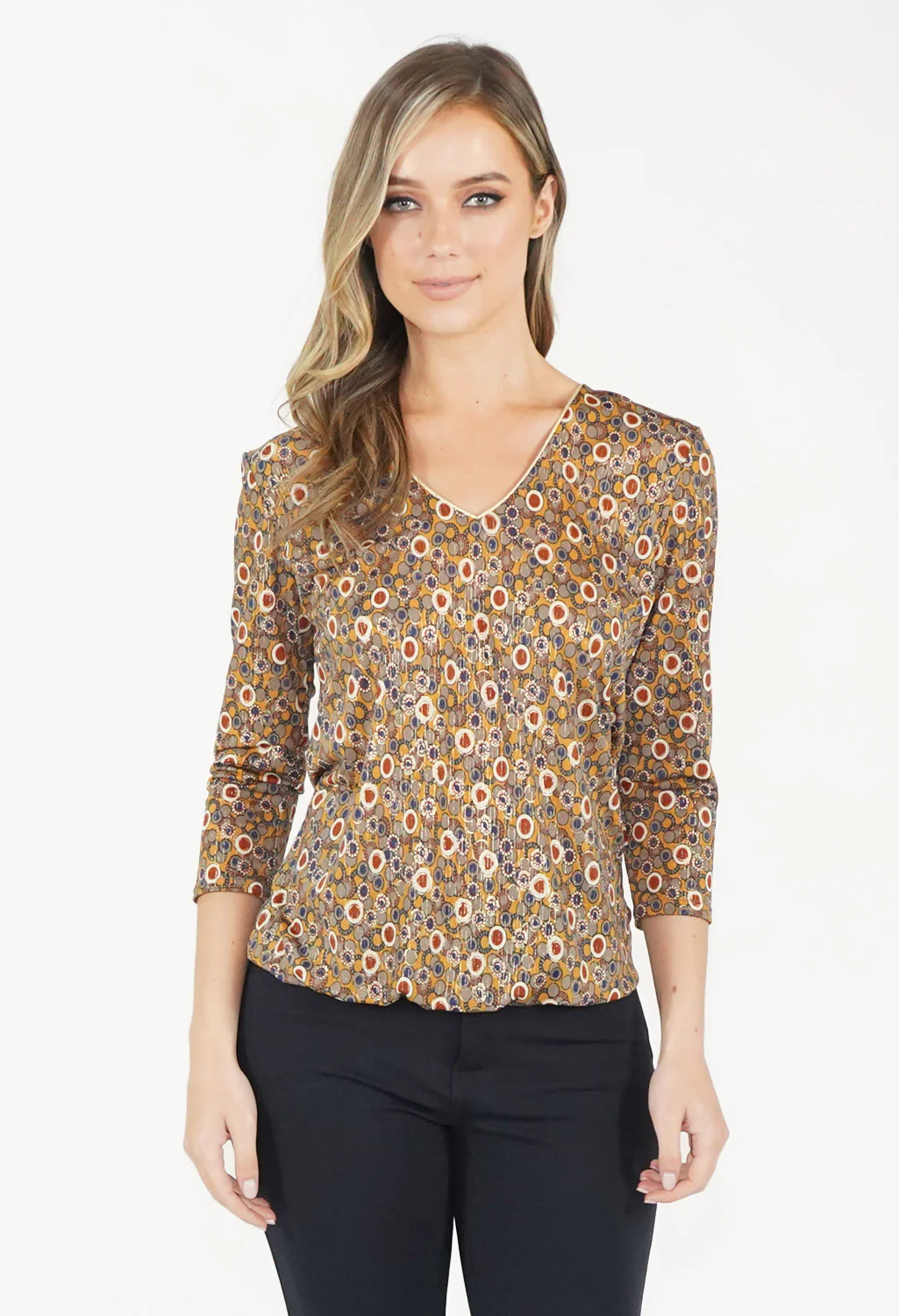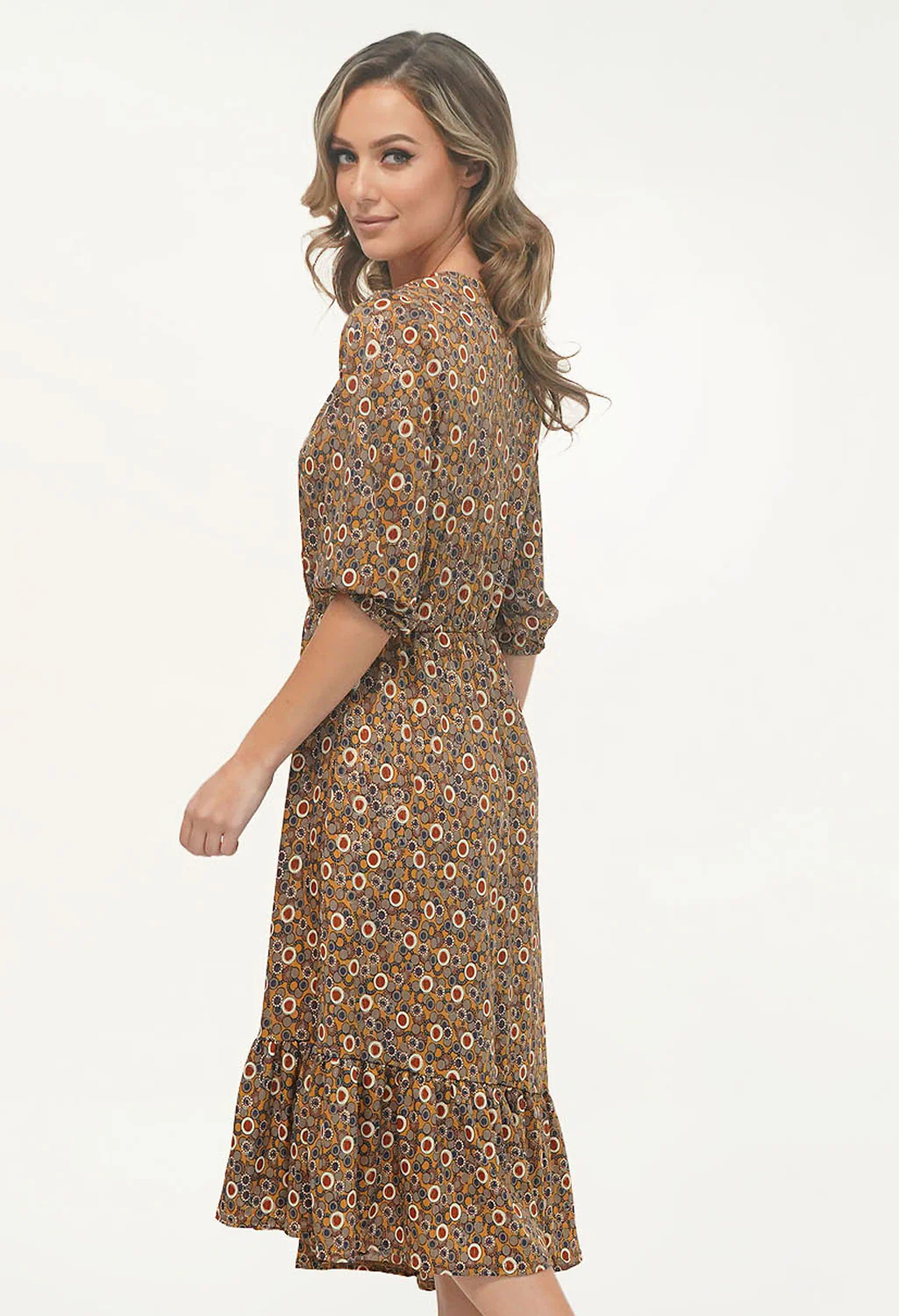 Khaki/Gold Pattern Asymmetric Midi Dress