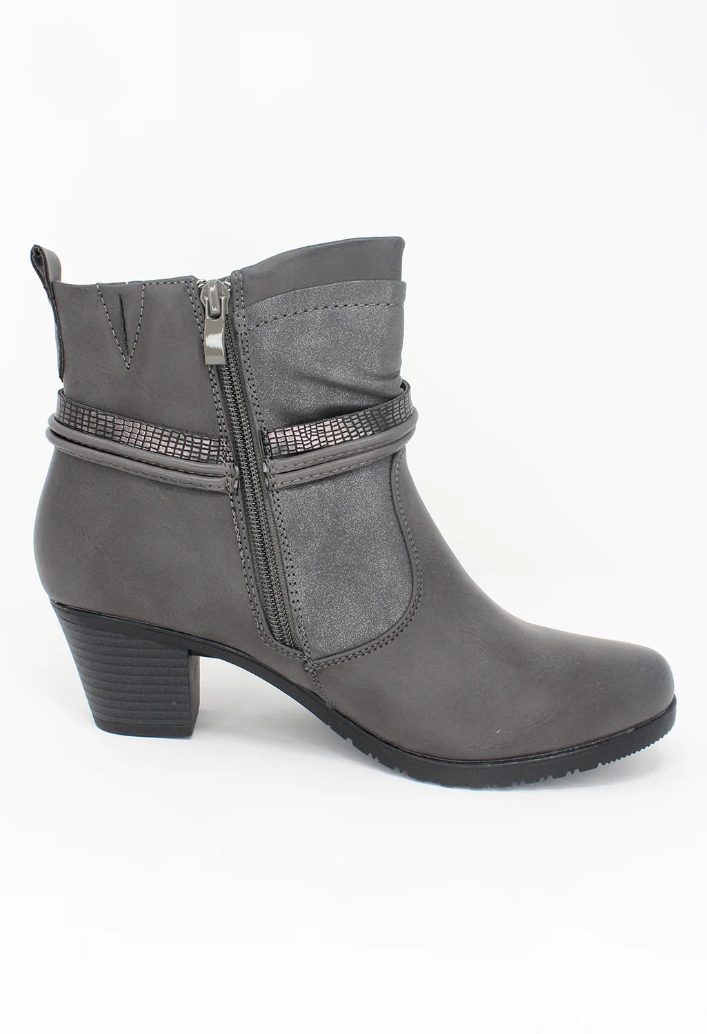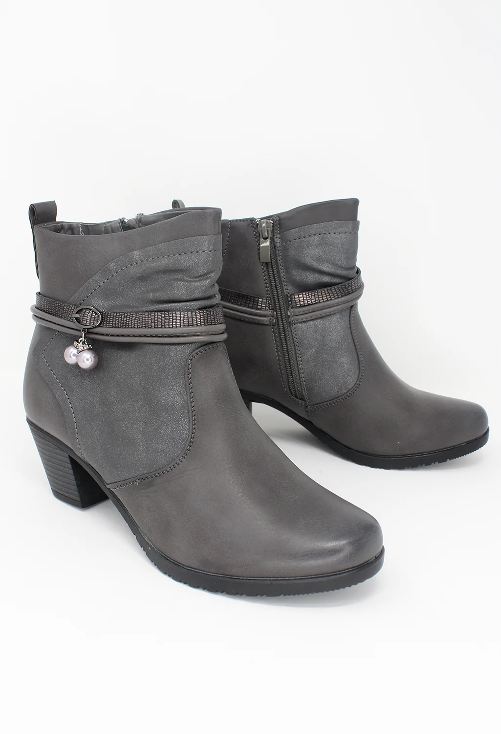 Grey Block Heel Ankle Boots