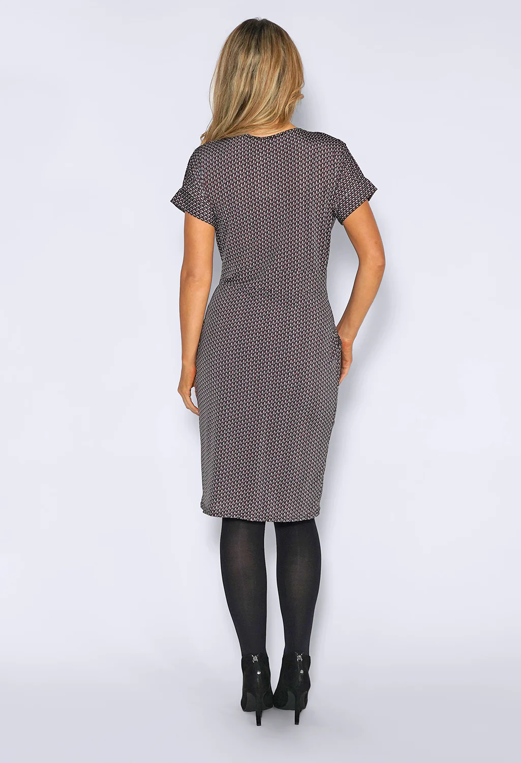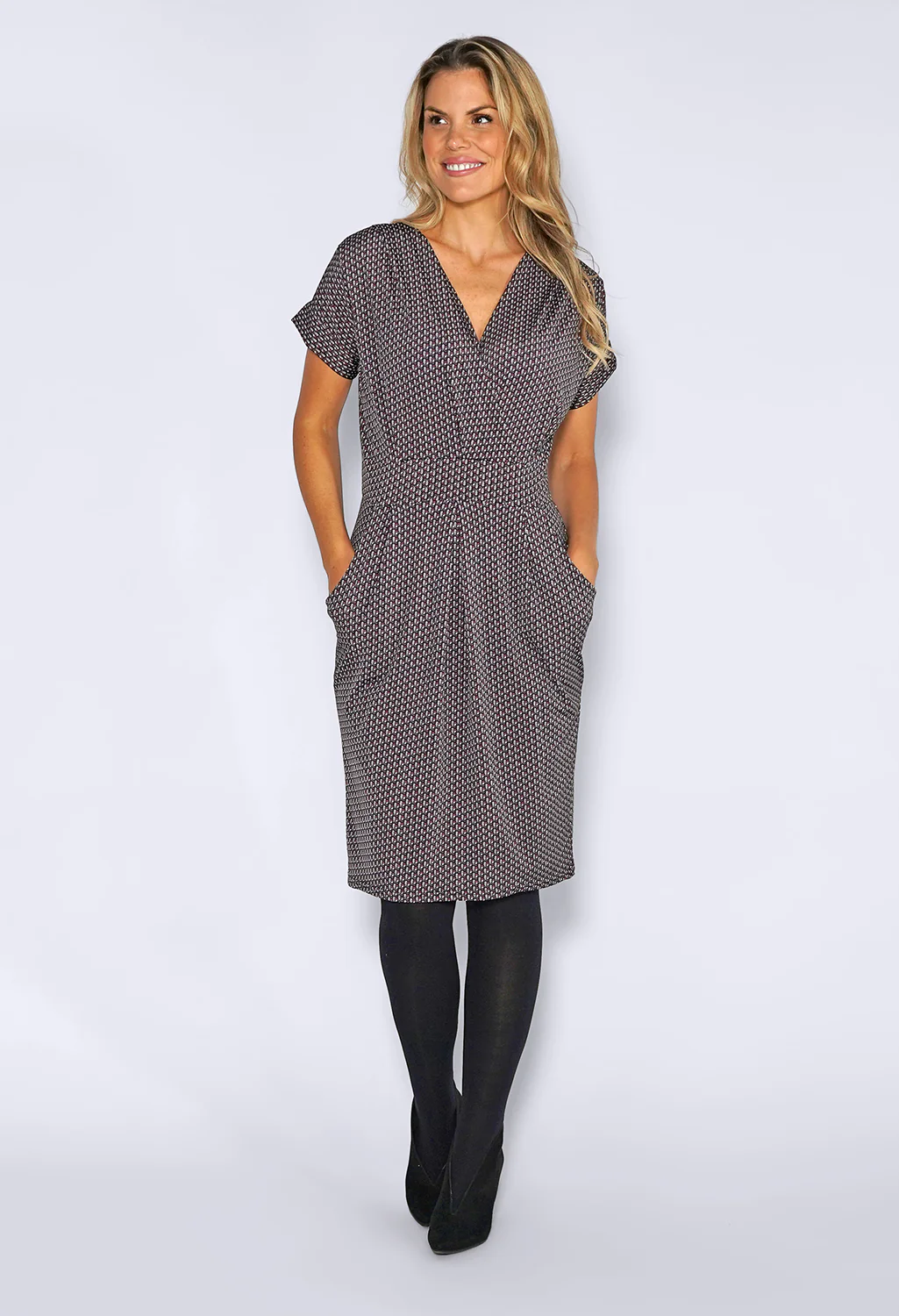 Grey Dress with Mini Geometric Print