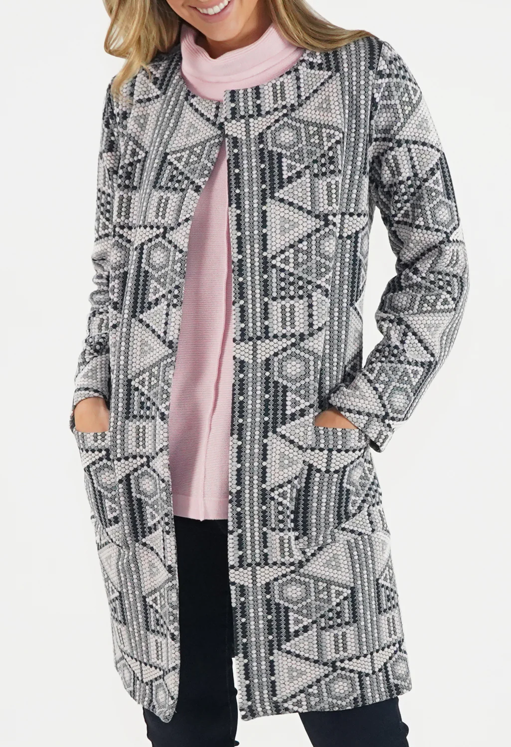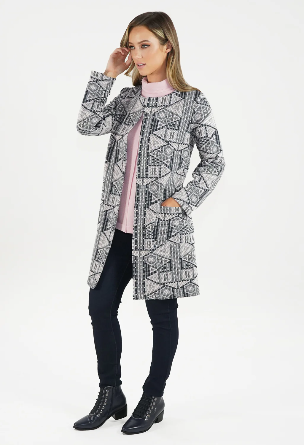 Grey and Soft Rose Colarless Jacket