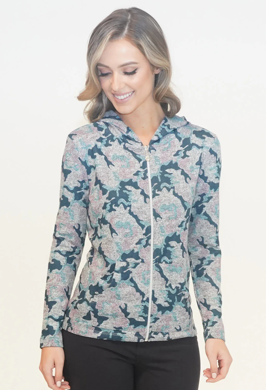 Grey Camo Print Hoodie