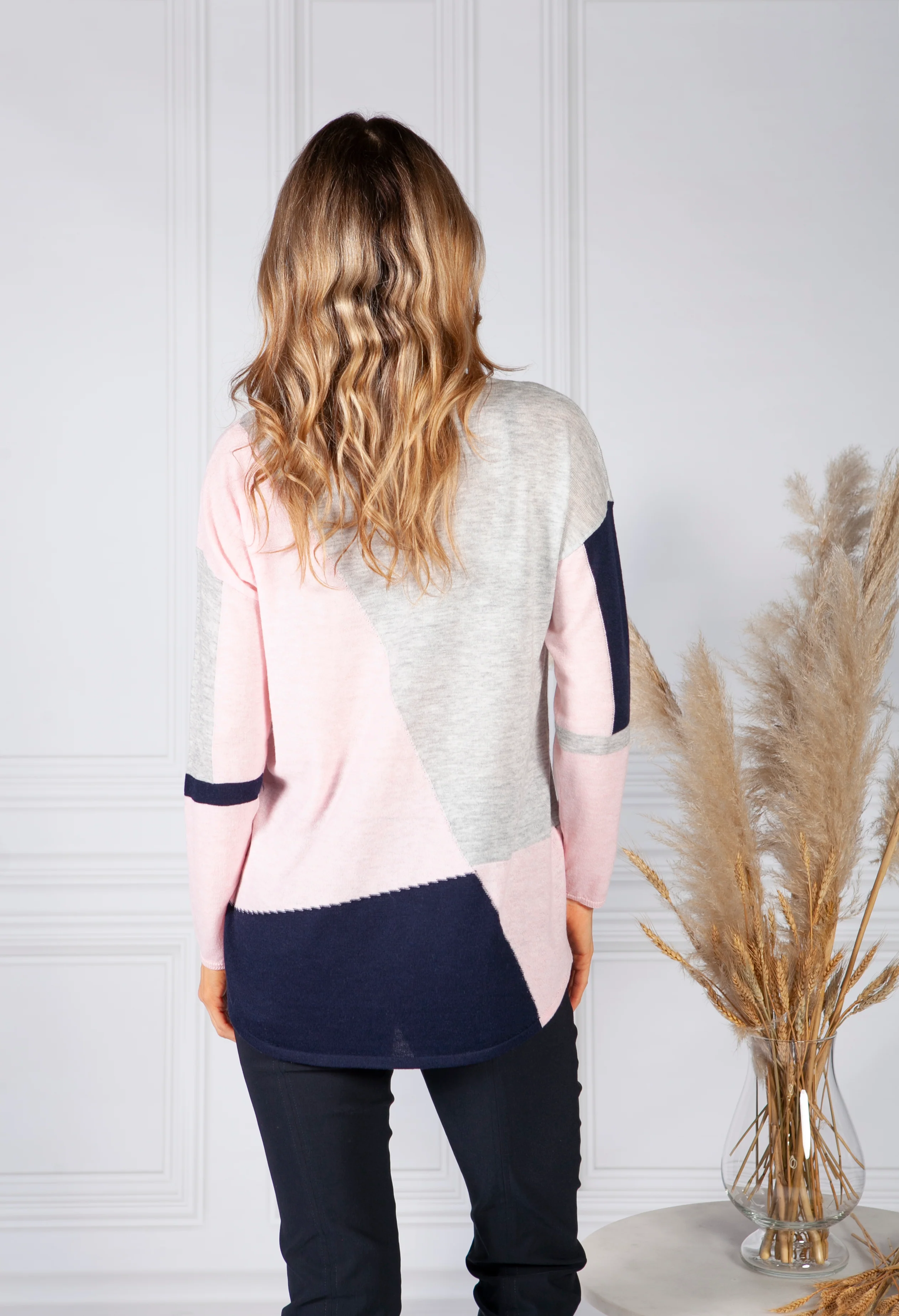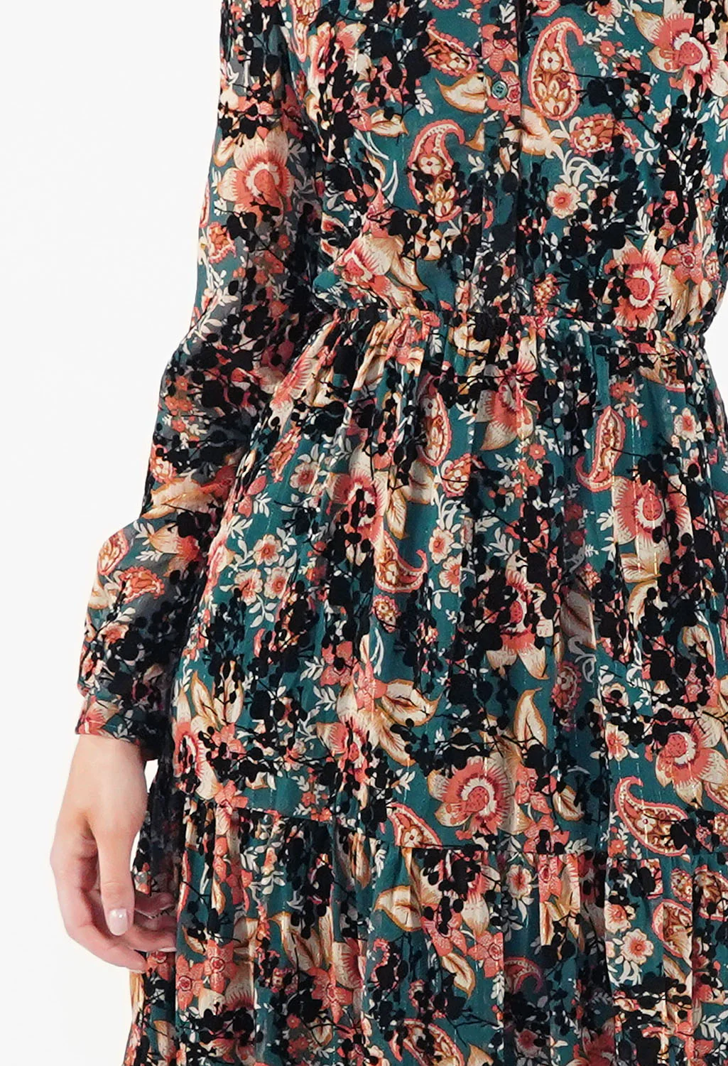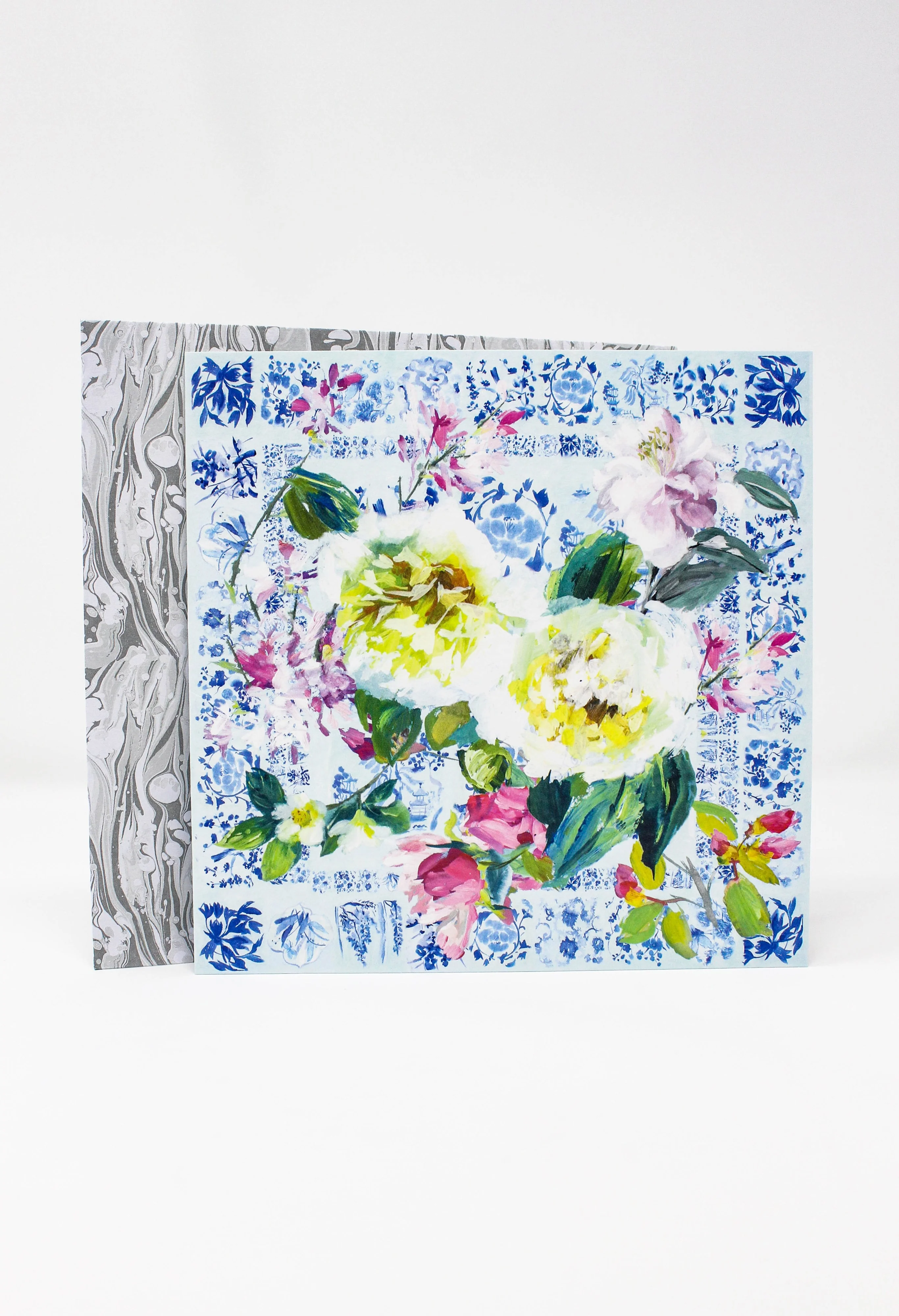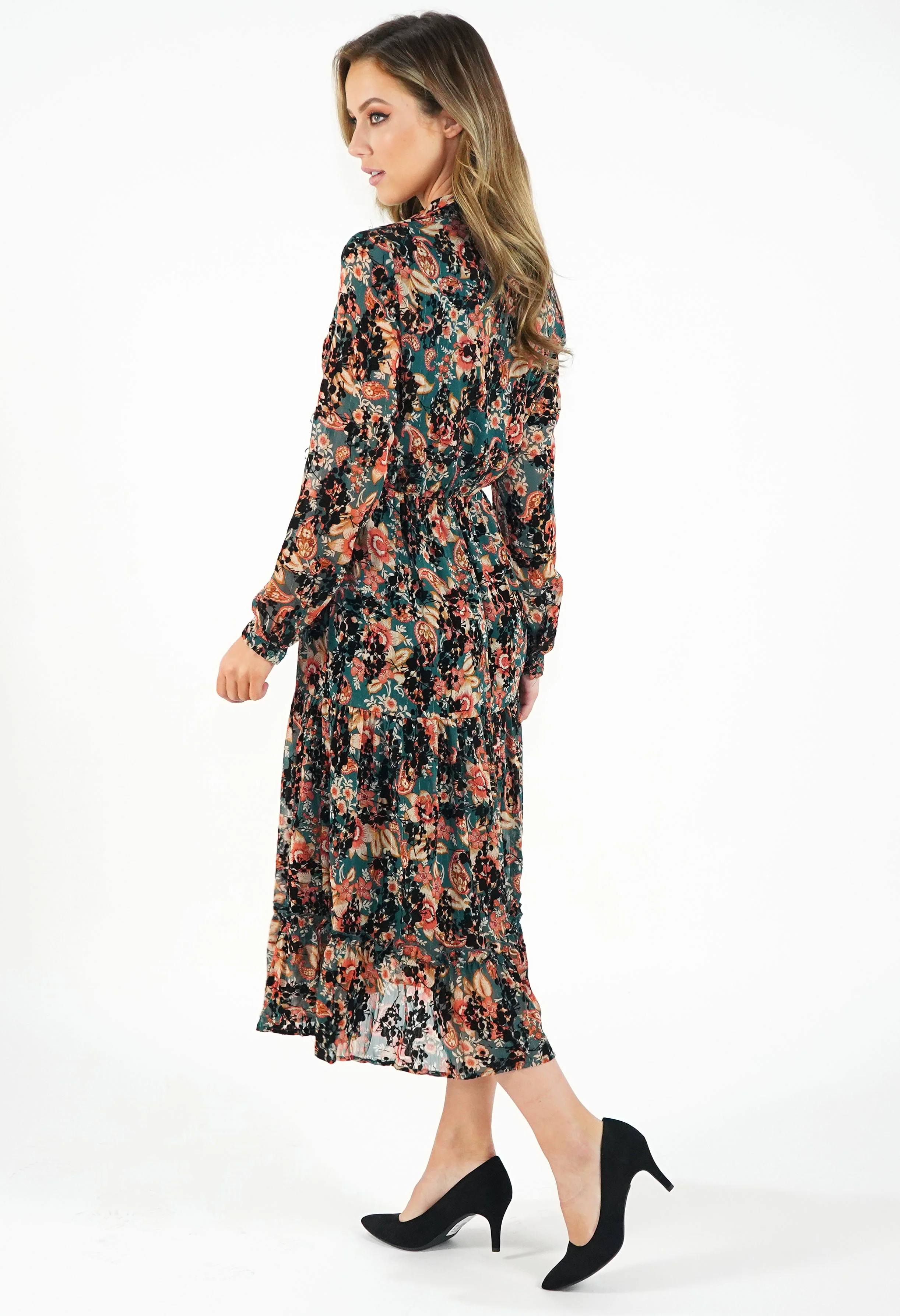 Grey and Bordeaux Floral Top with Faux Leather Neckline