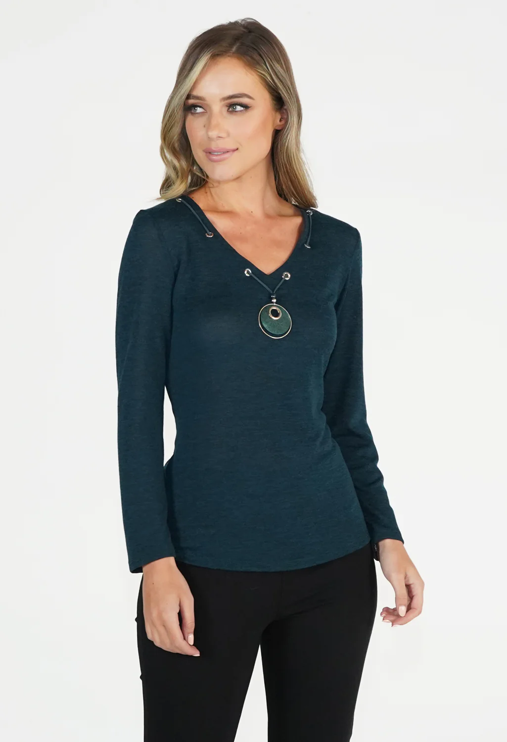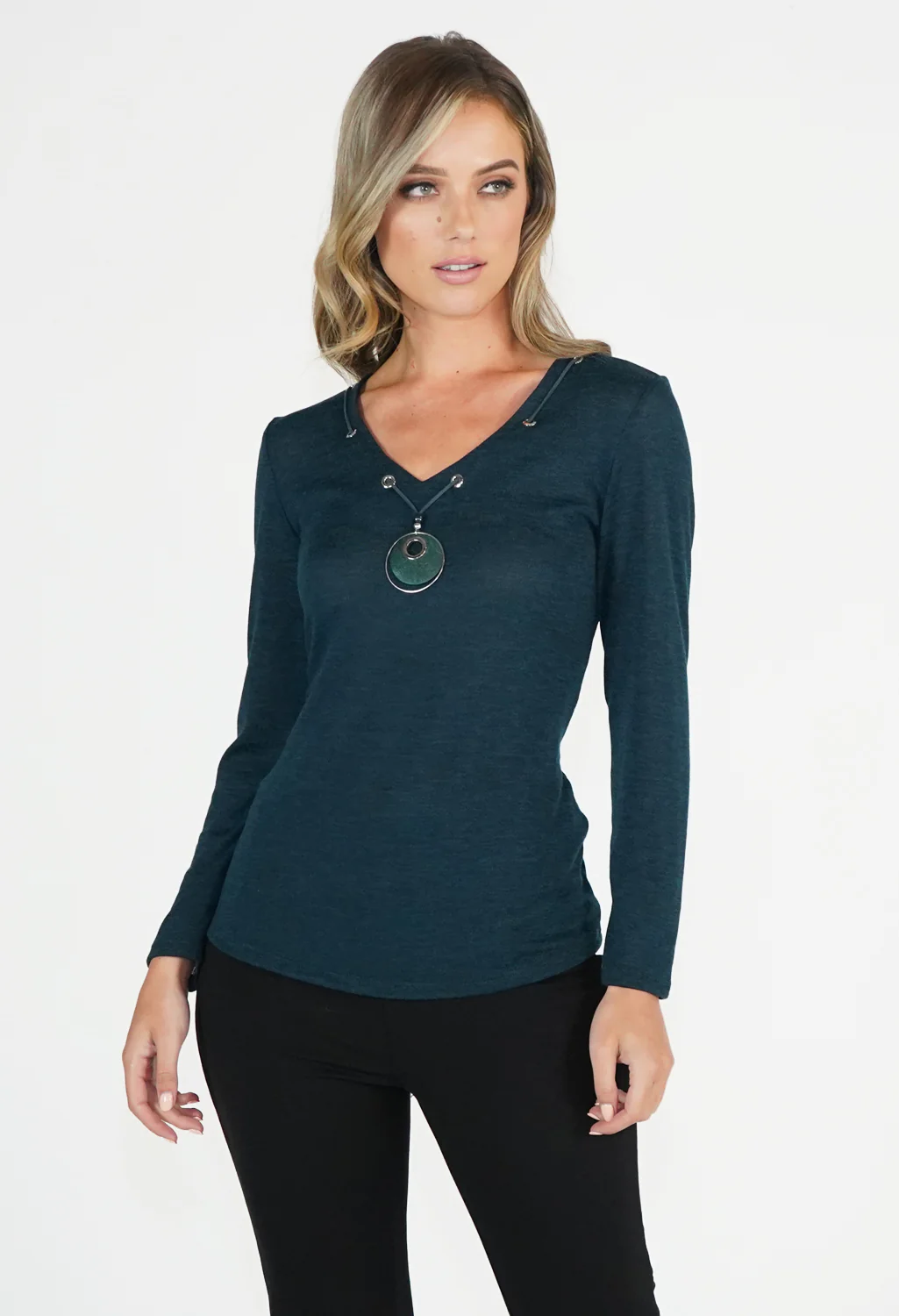 Green Oversized Batwing Knit Jumper with Necklace Detail