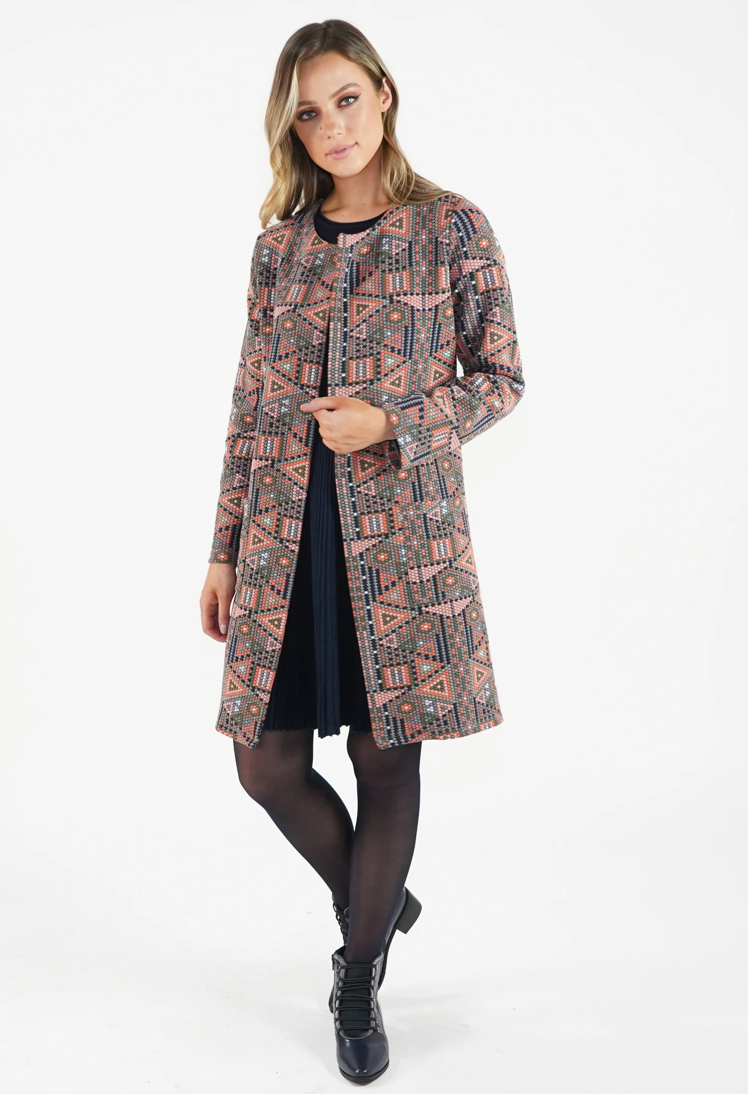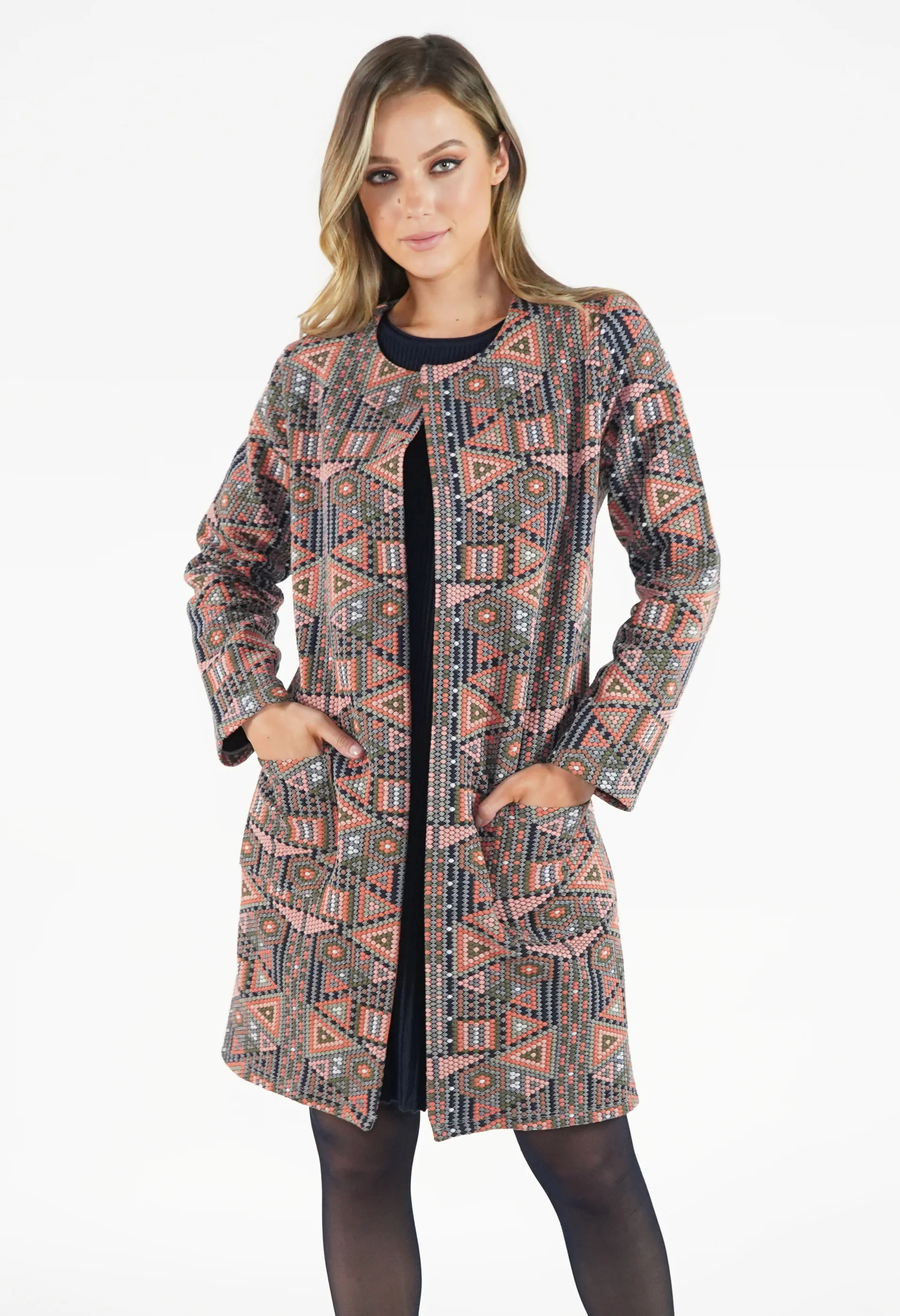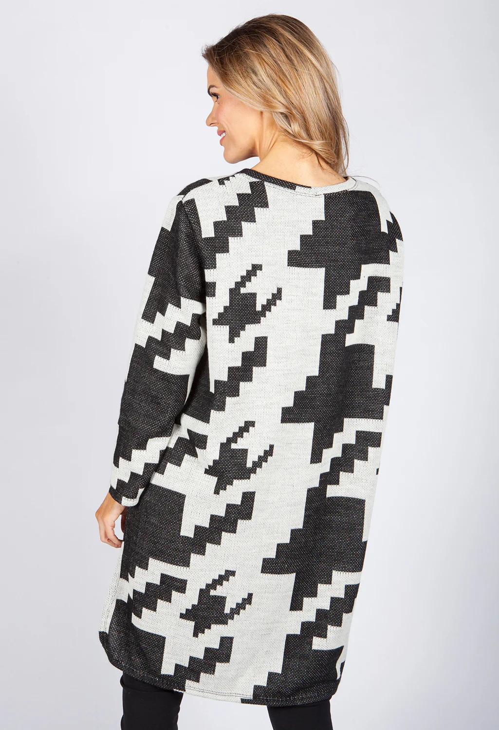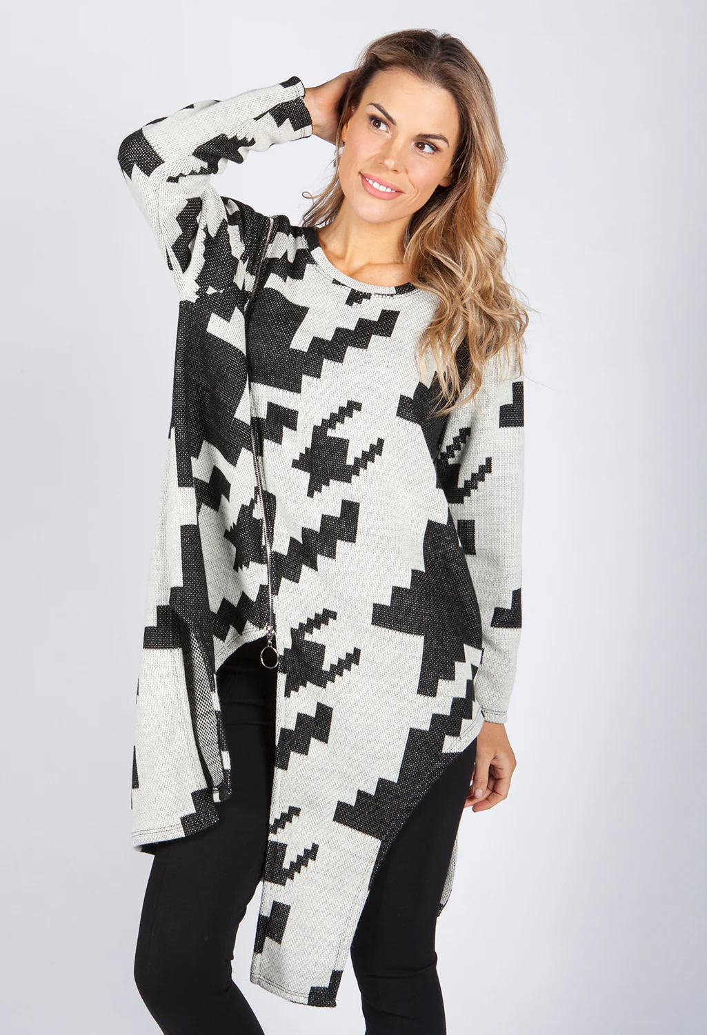 GEOMETRIC DESIGN KNIT LONG TOP WITH ZIP DETAILS