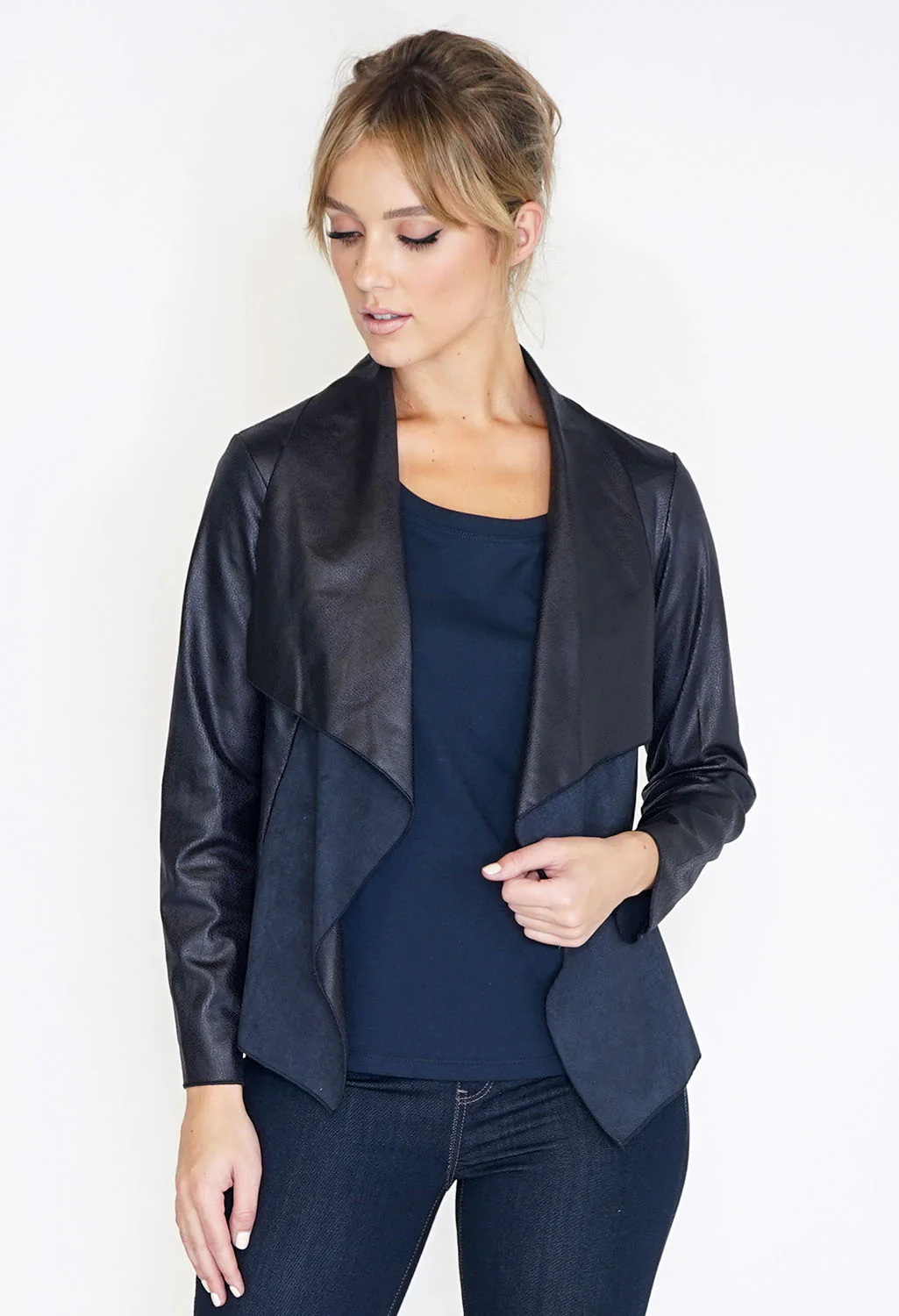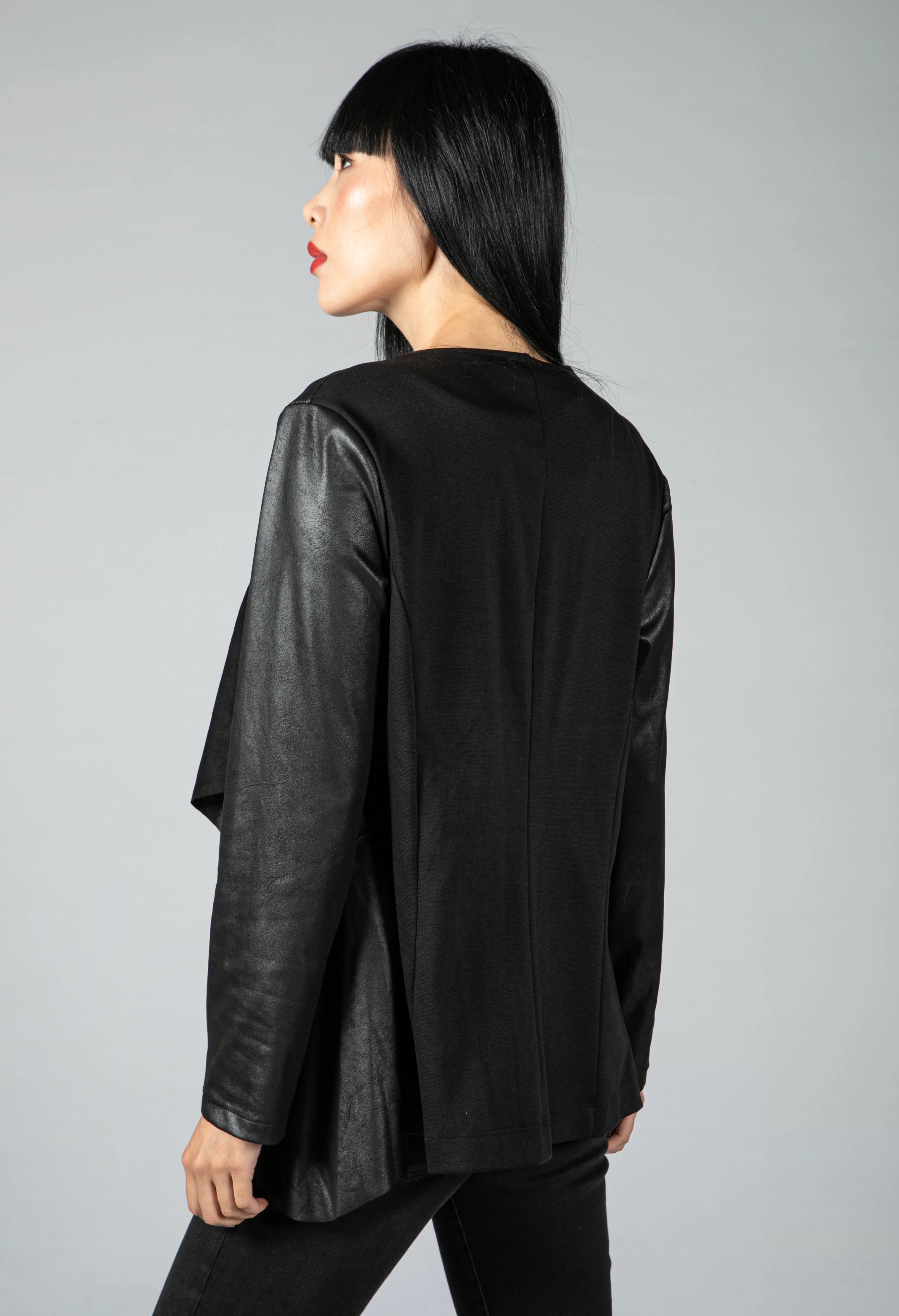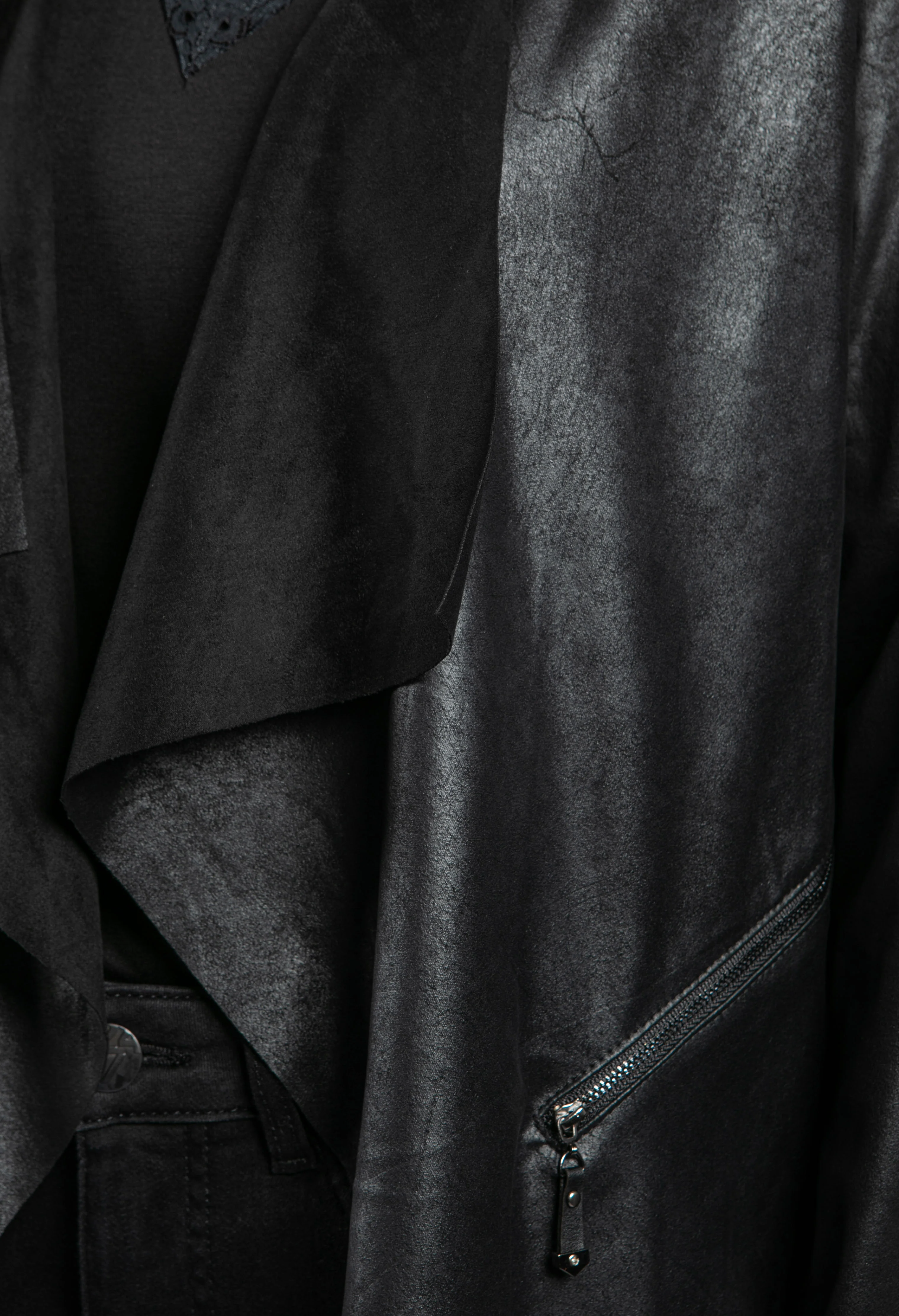 Faux Suede Panel Drape Jacket