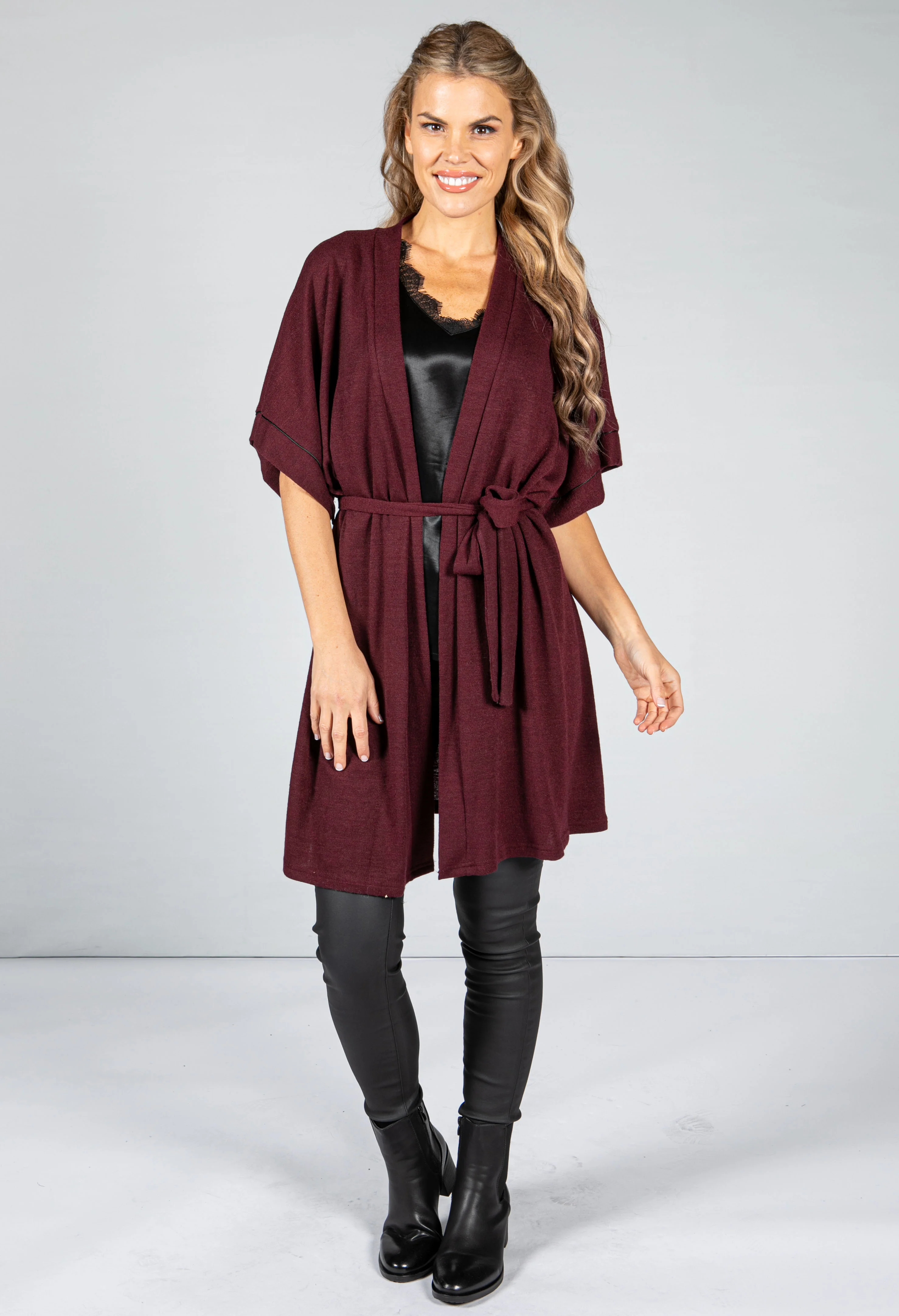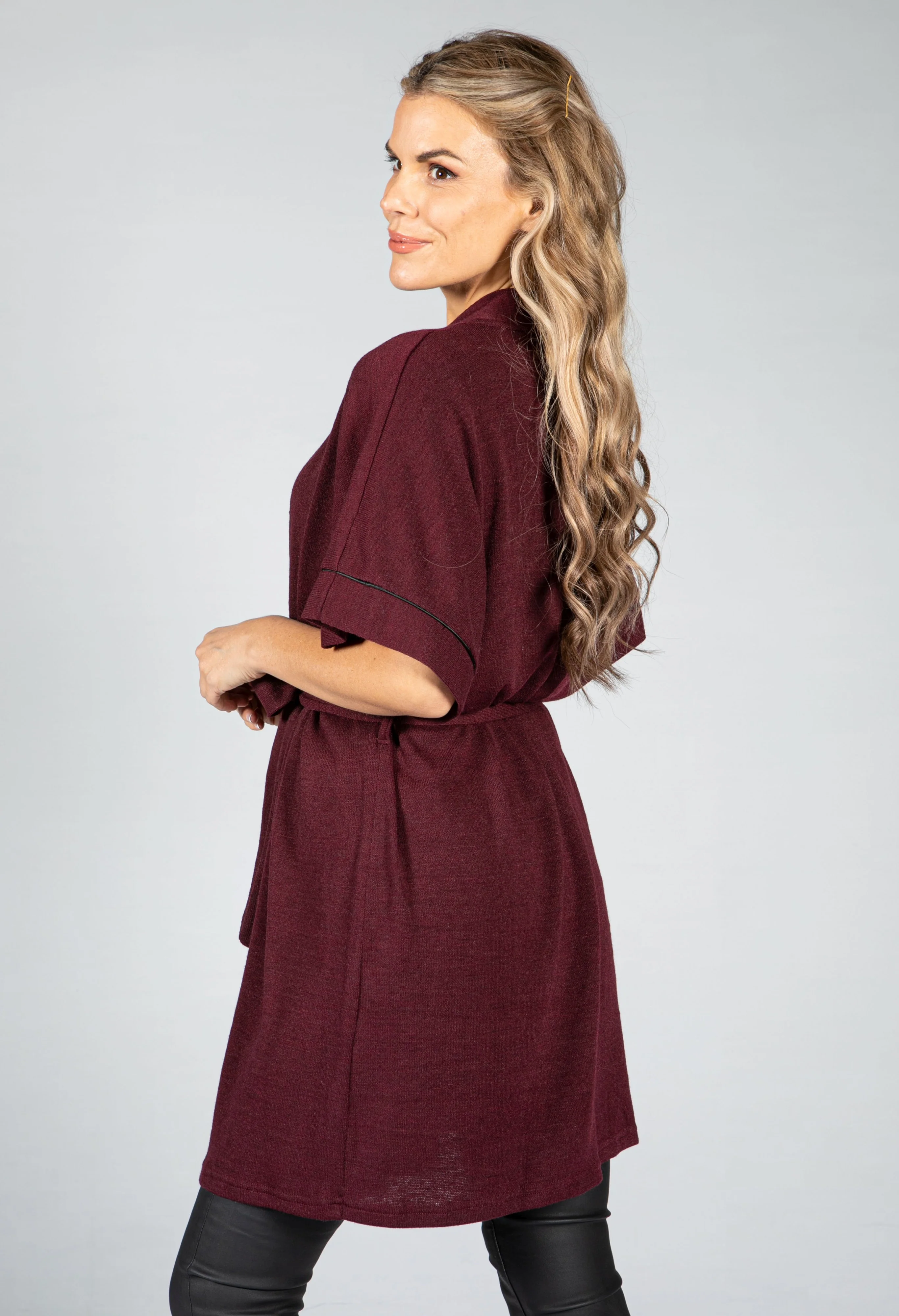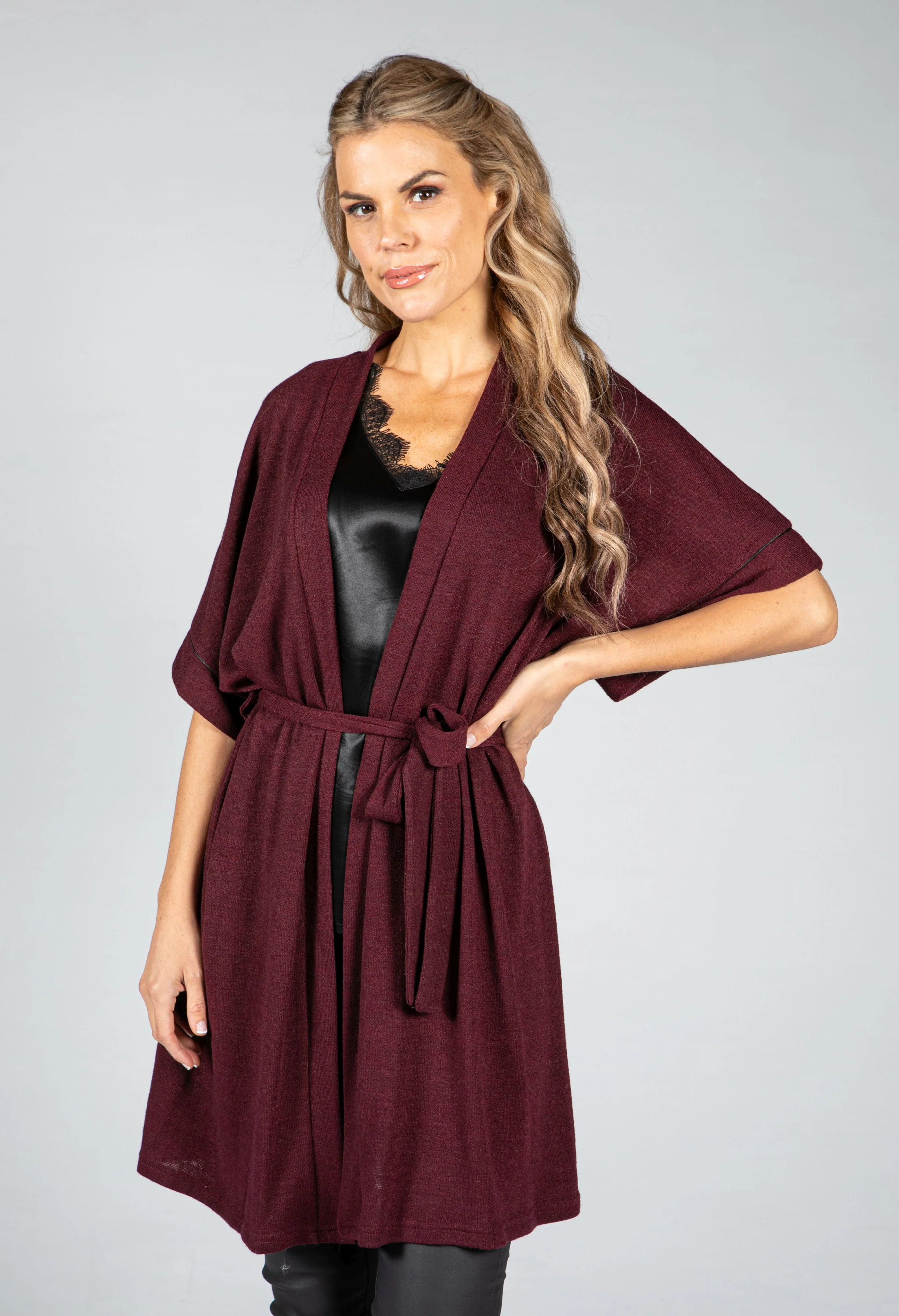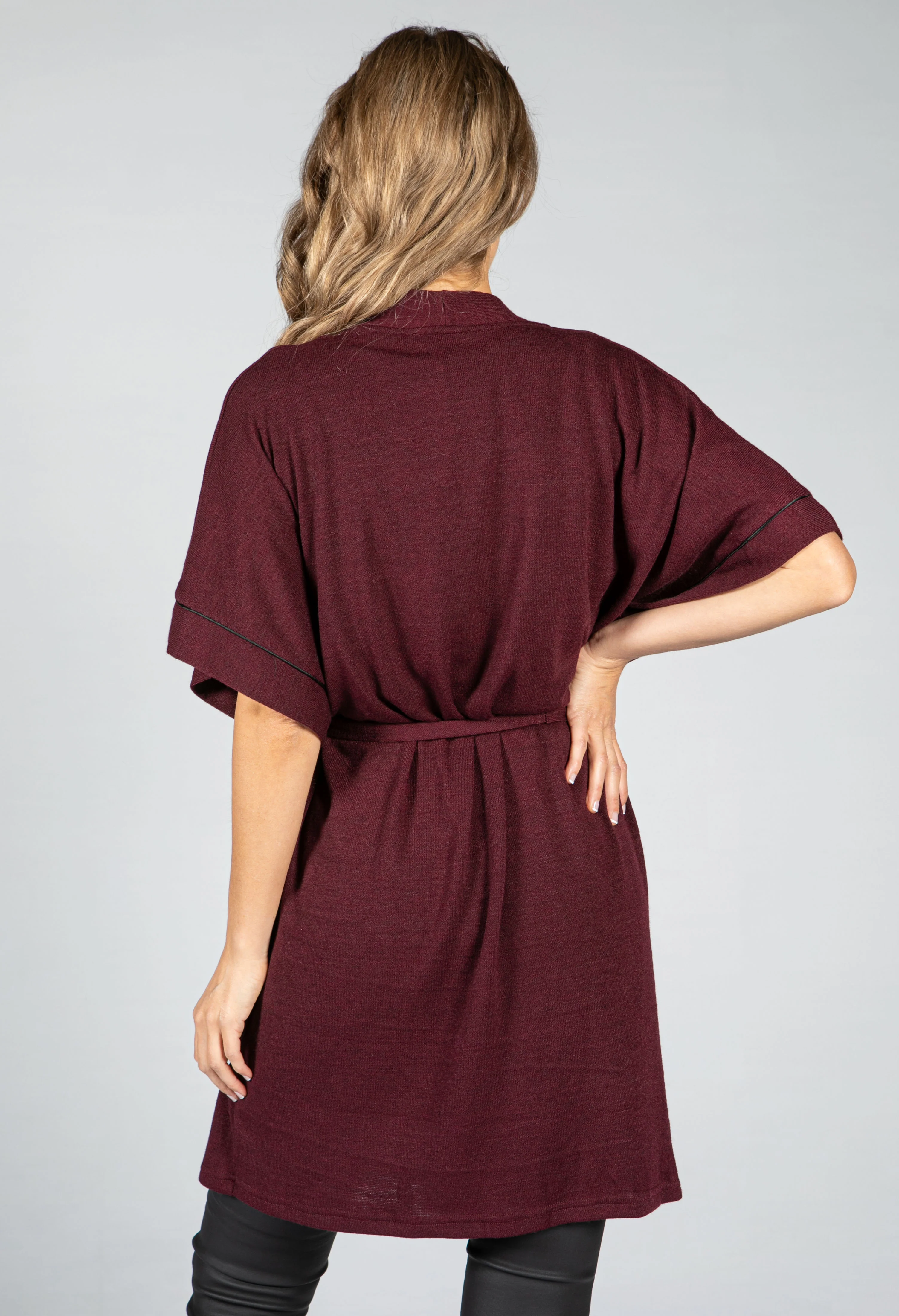 Fine Knit Kimono Cardigan in Wine
