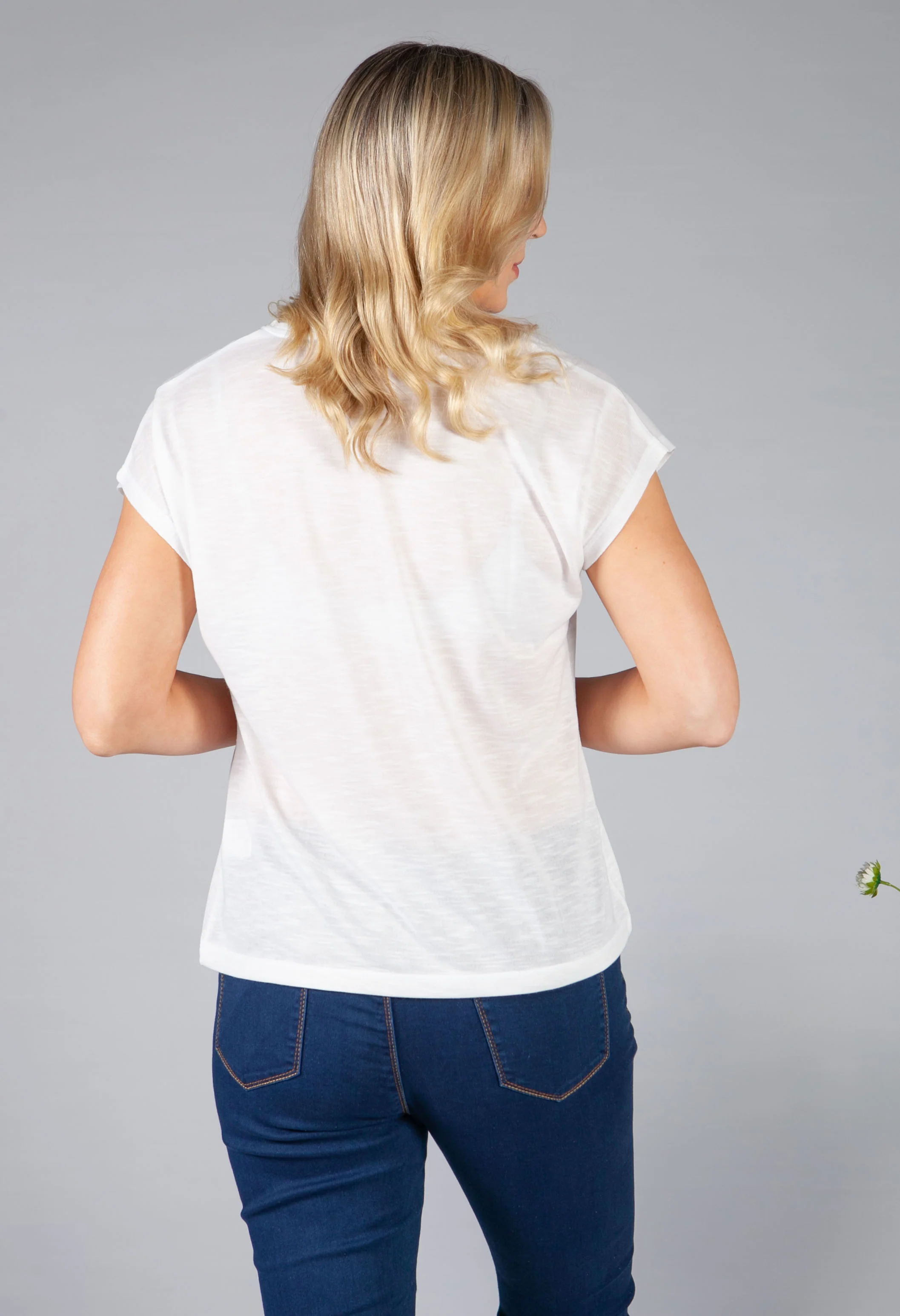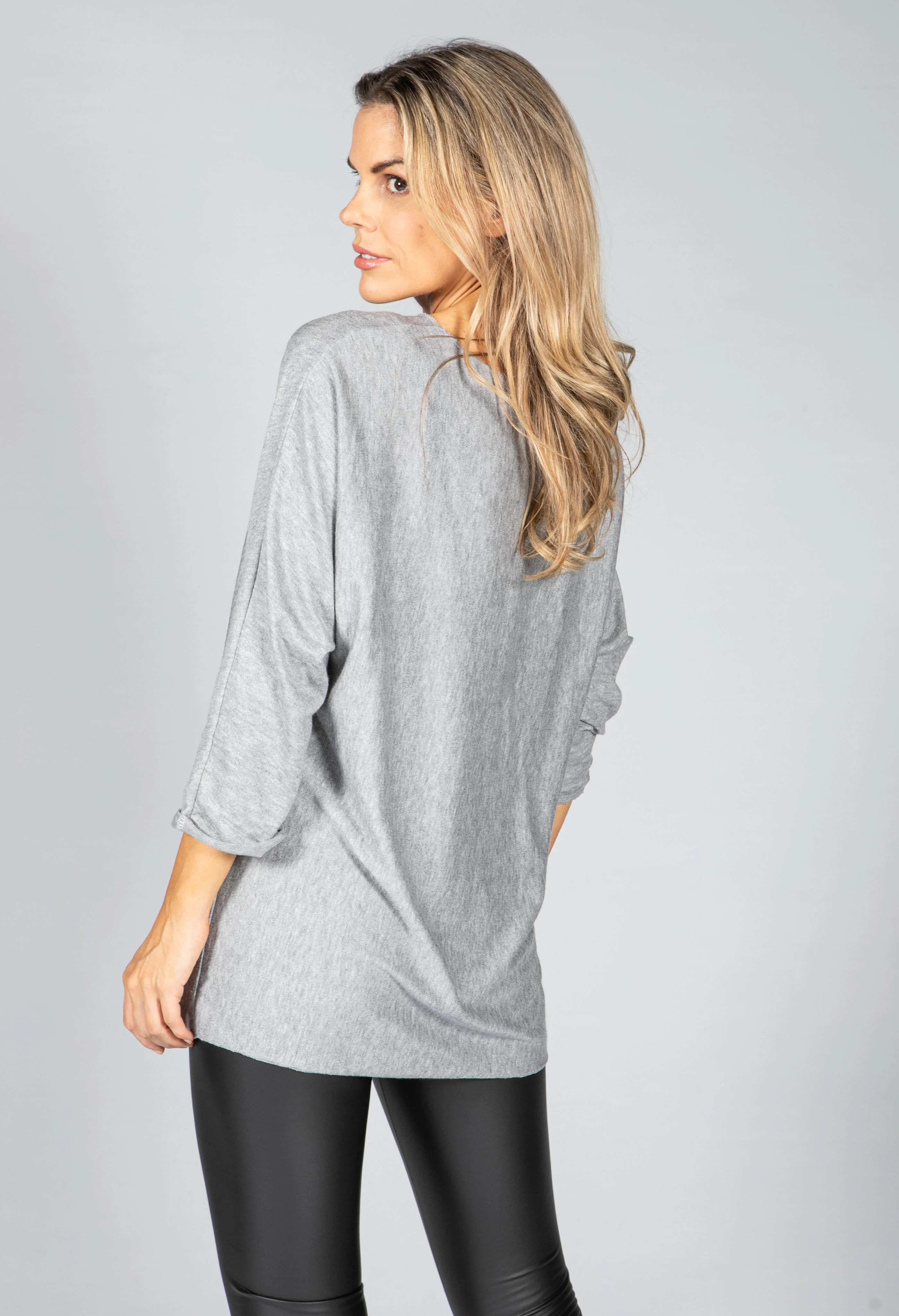 Fine Knit Star Design Top in Light Grey