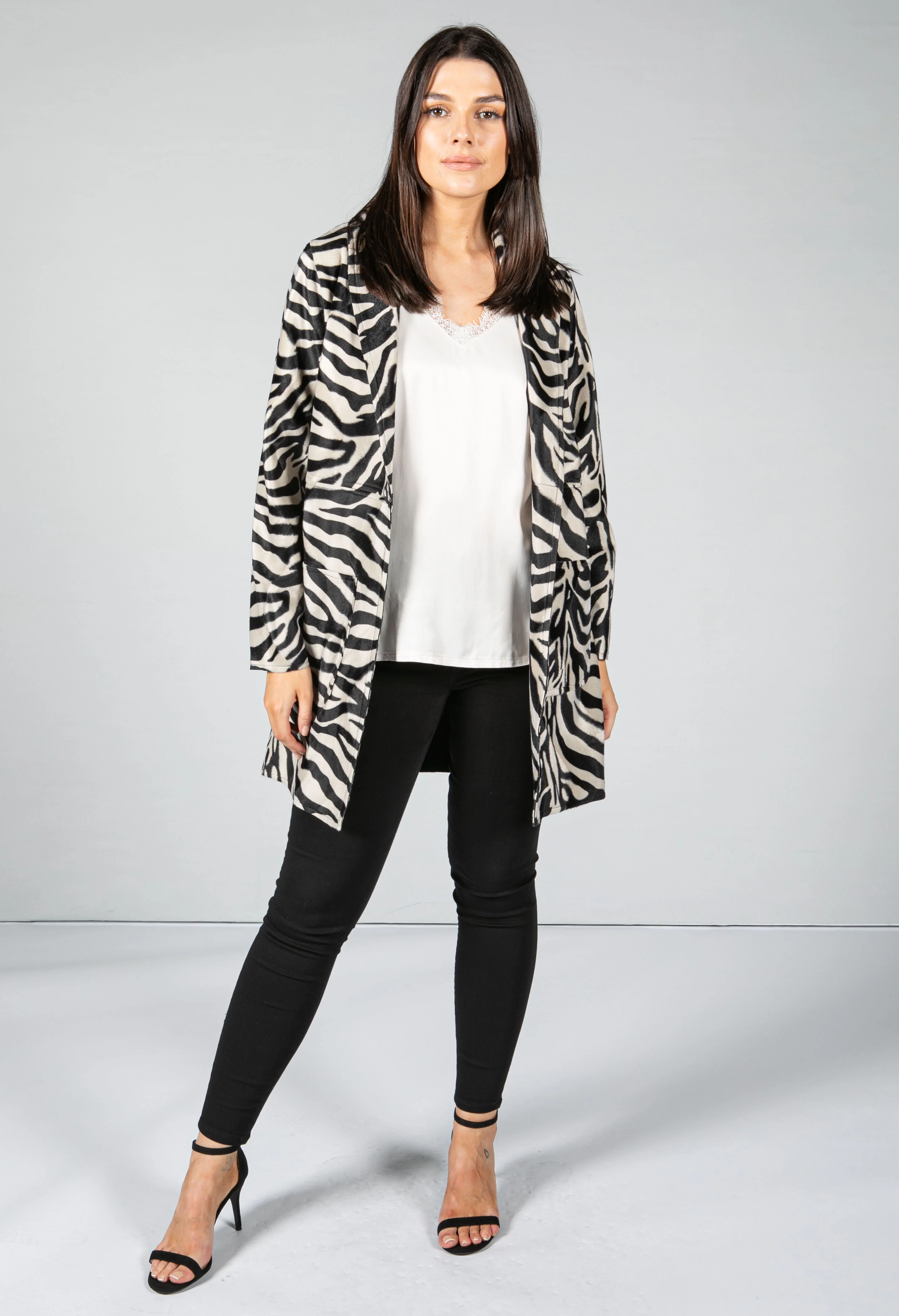 Faux Zebra Print Open midi Jacket