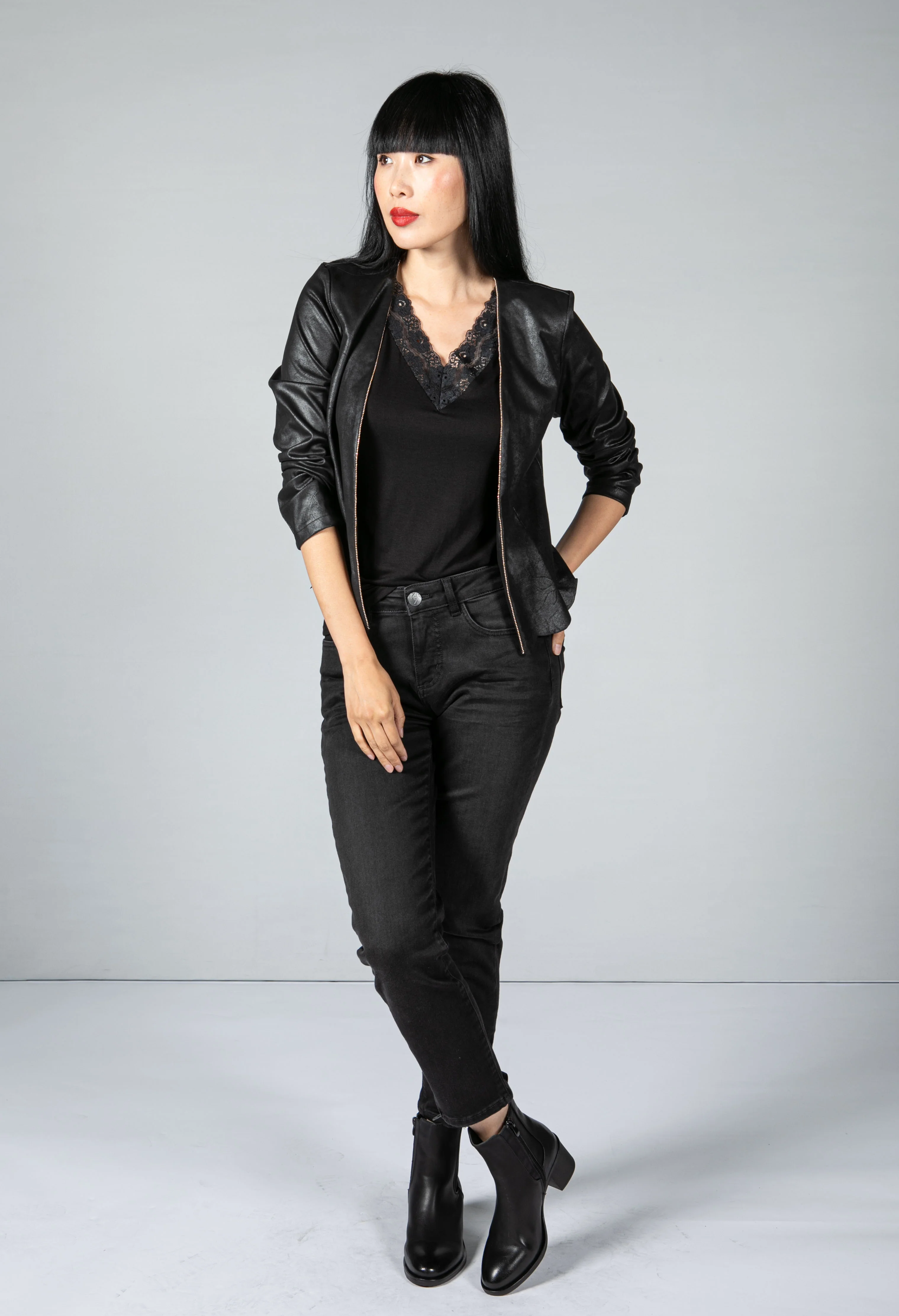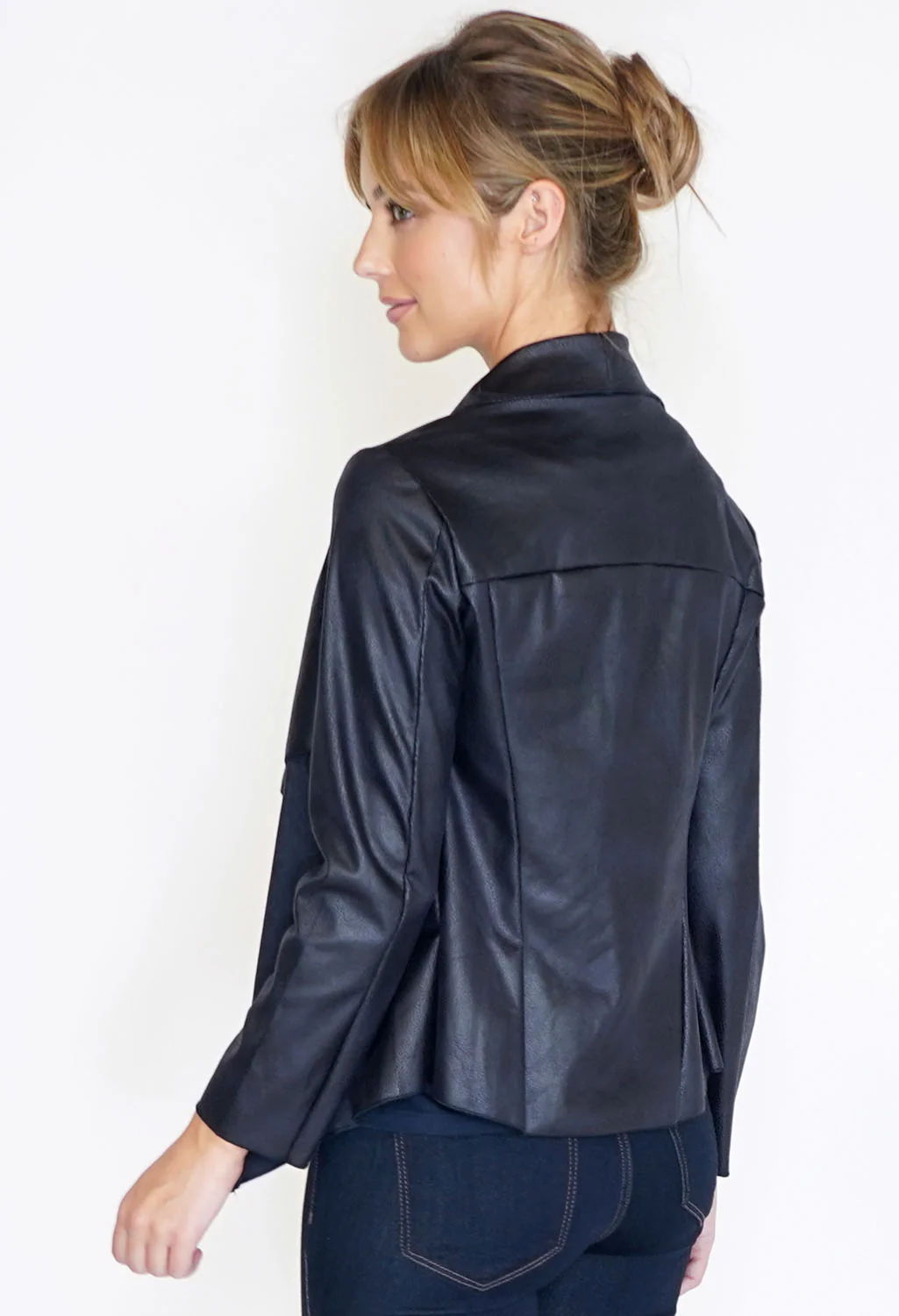 Faux Vintage Leather Look Jacket in Black