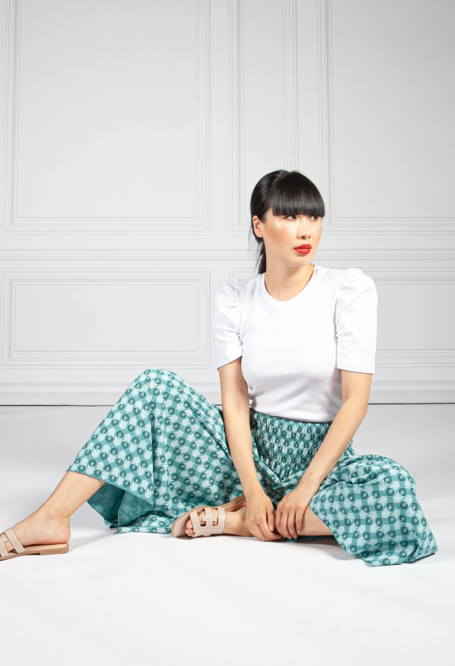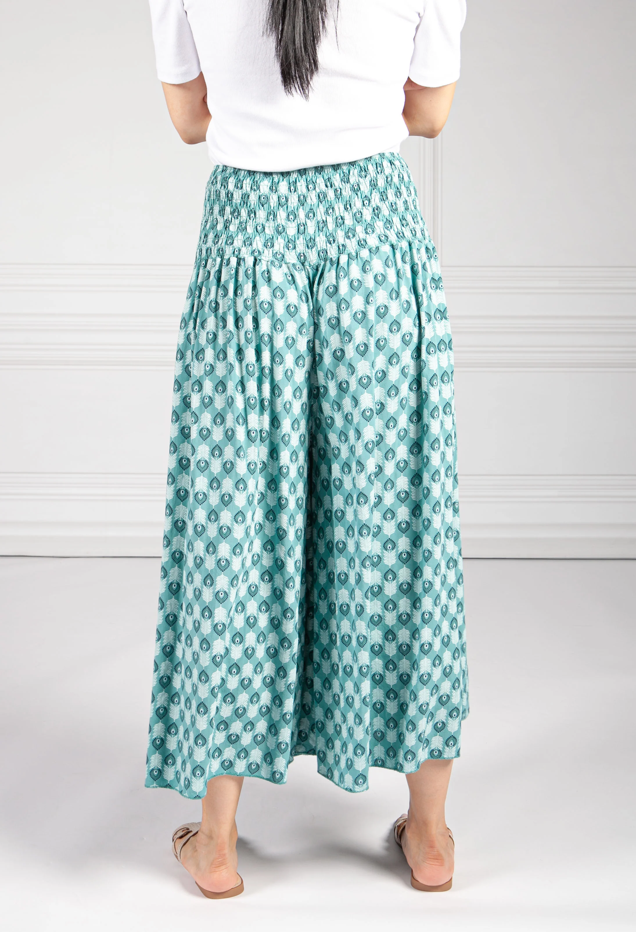 Fern Green Peacock Print Trousers