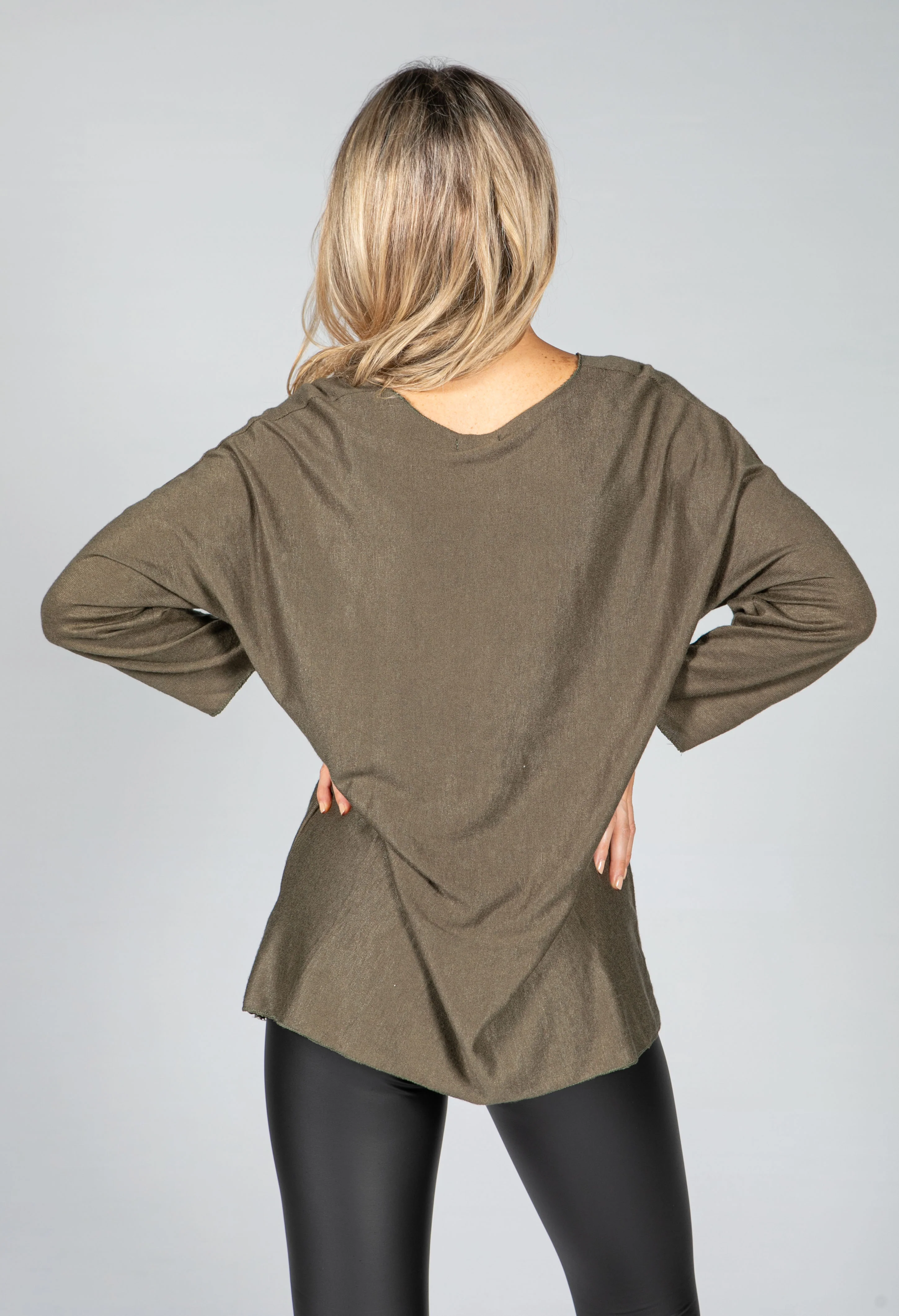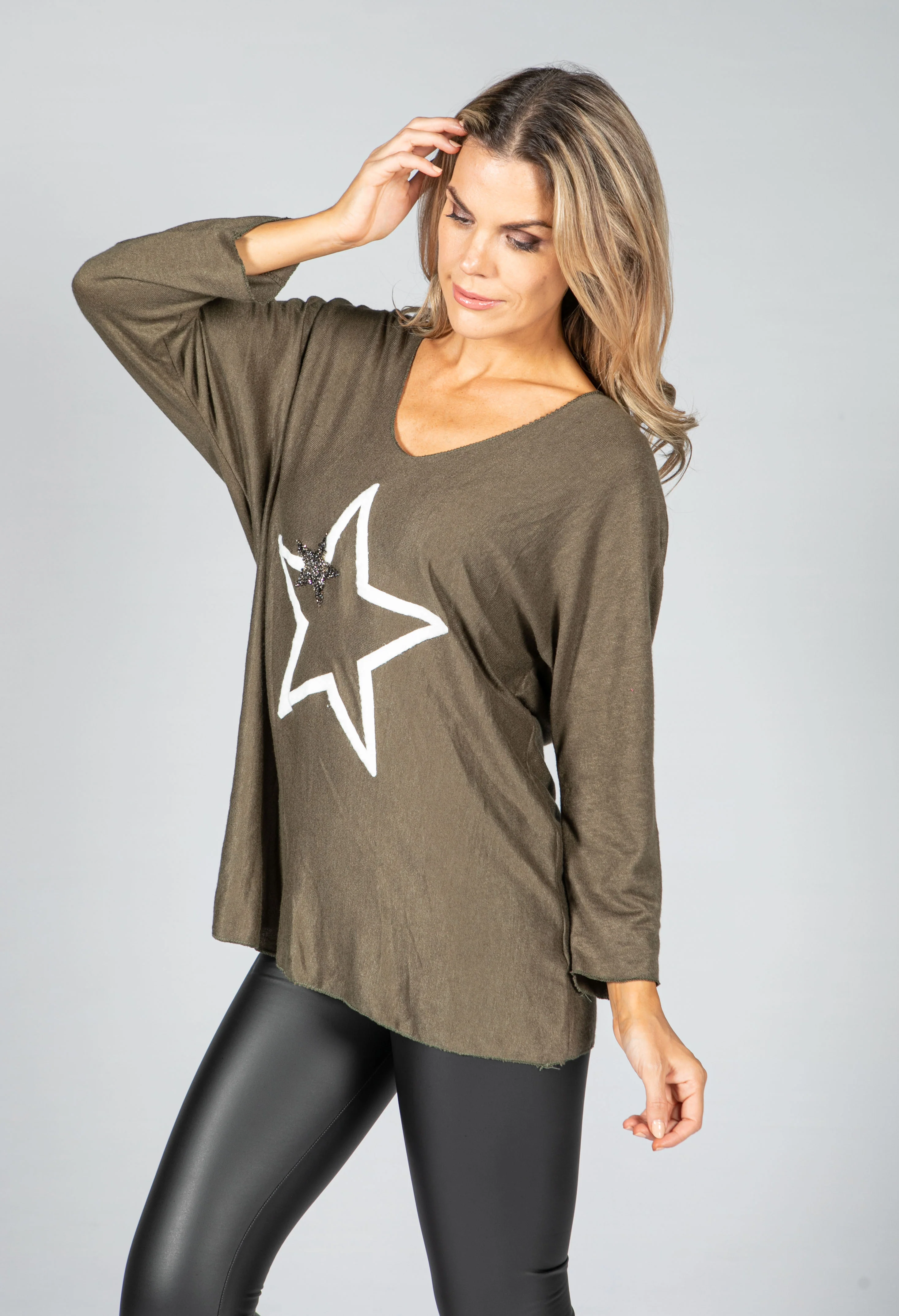 Fine Knit Star Design Top in Khaki