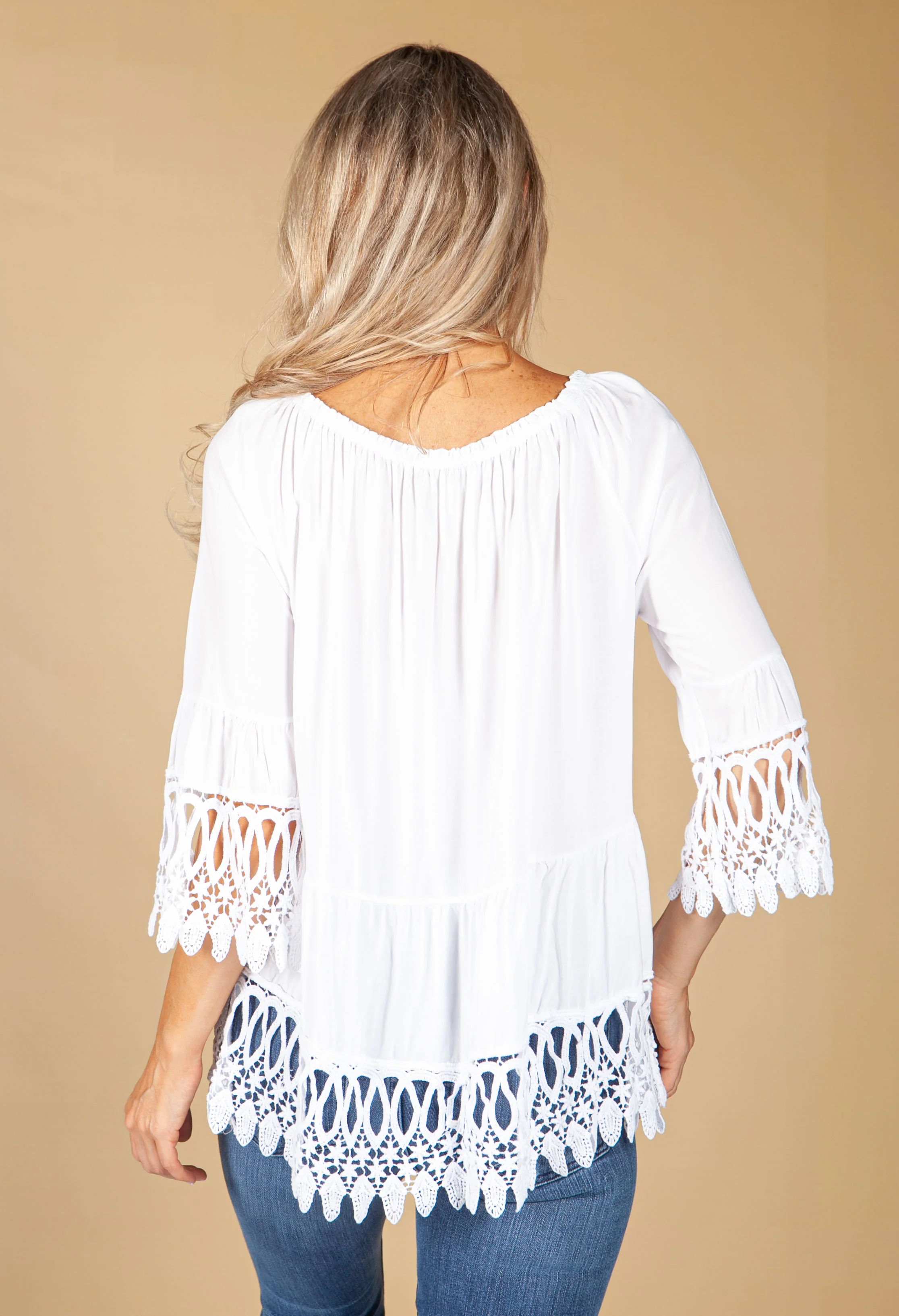 Embroidered Tie Hem Blouse in White