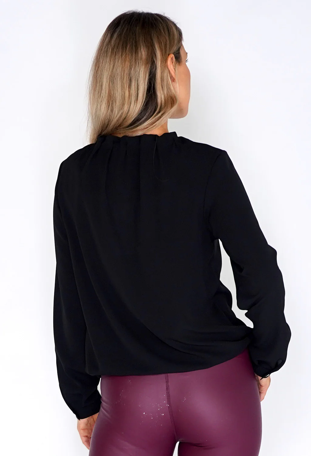 Erfo Black Rouched Neck Blouse