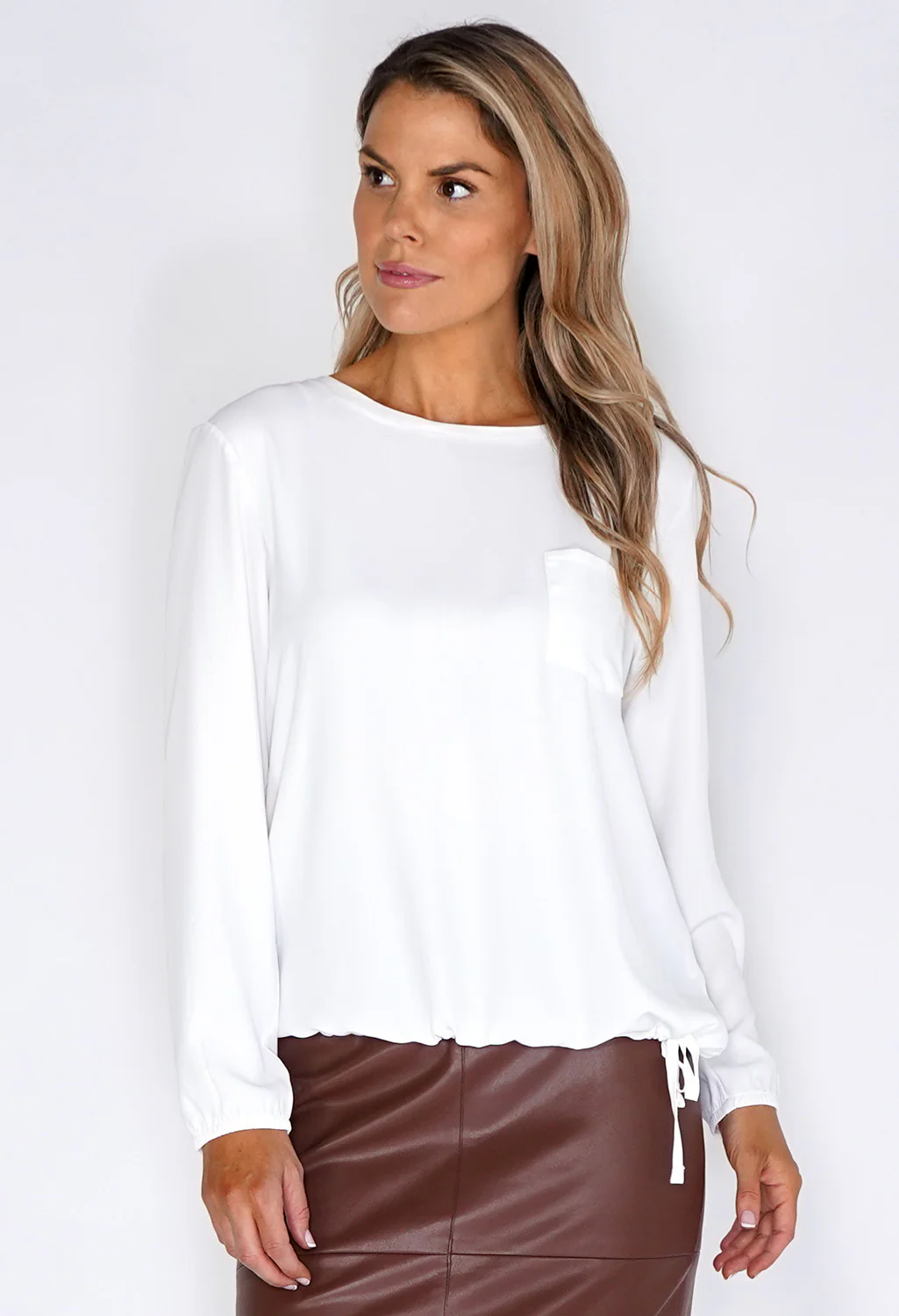 Erfo White Pocket Detailed Blouse with Tied Hem