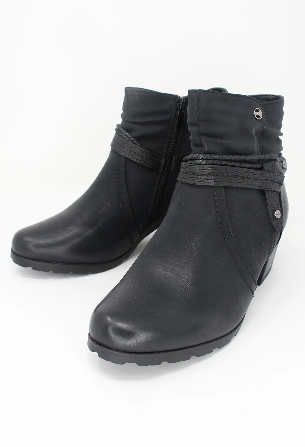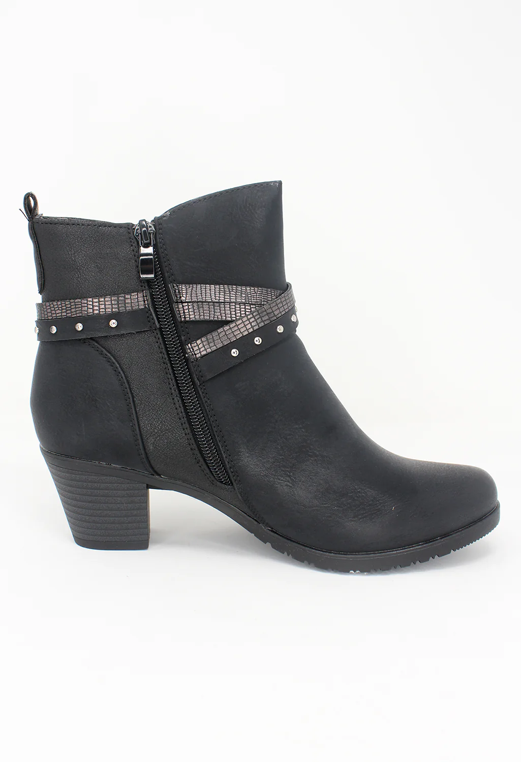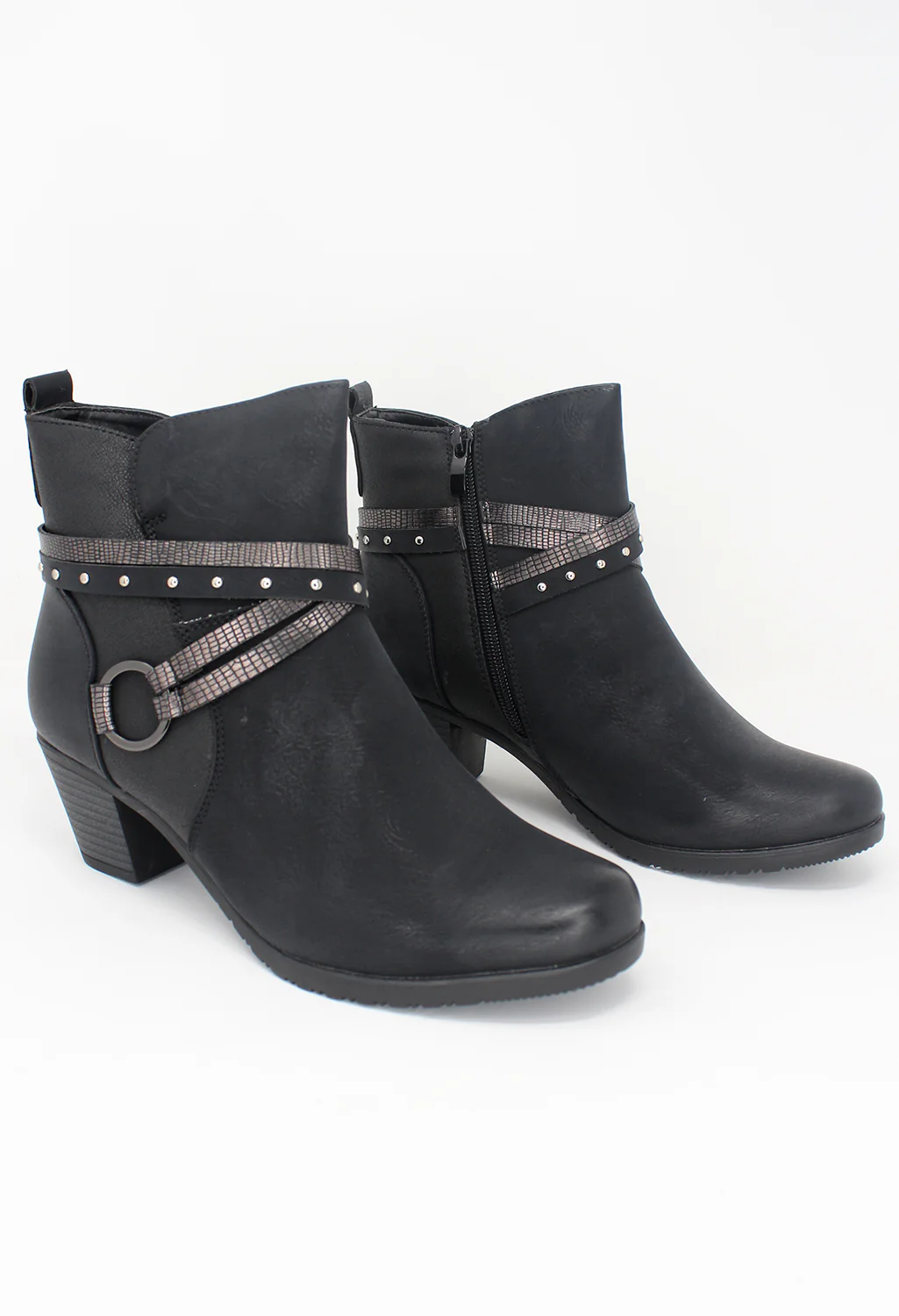 Black Block Heel Boot with Ring Detail