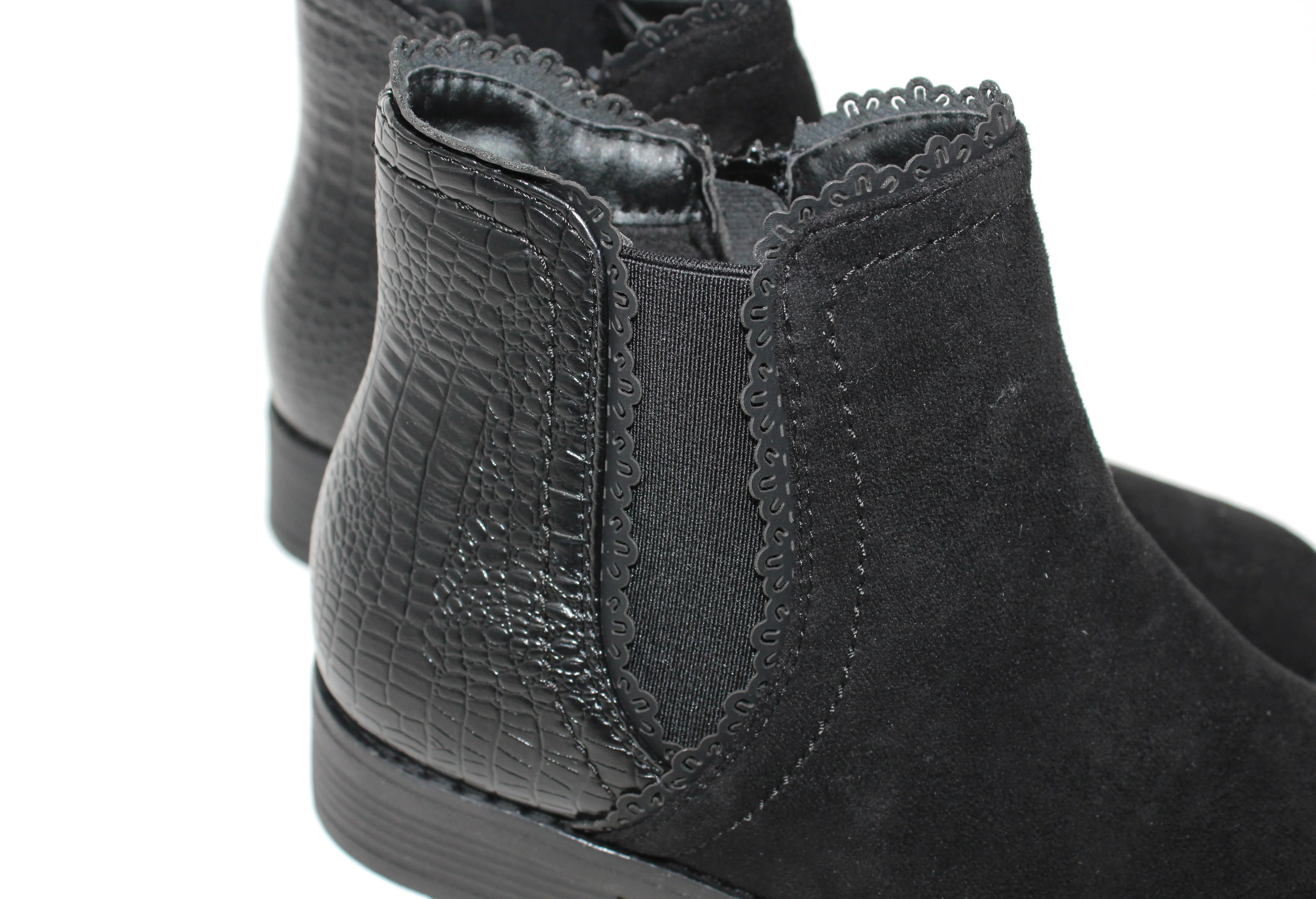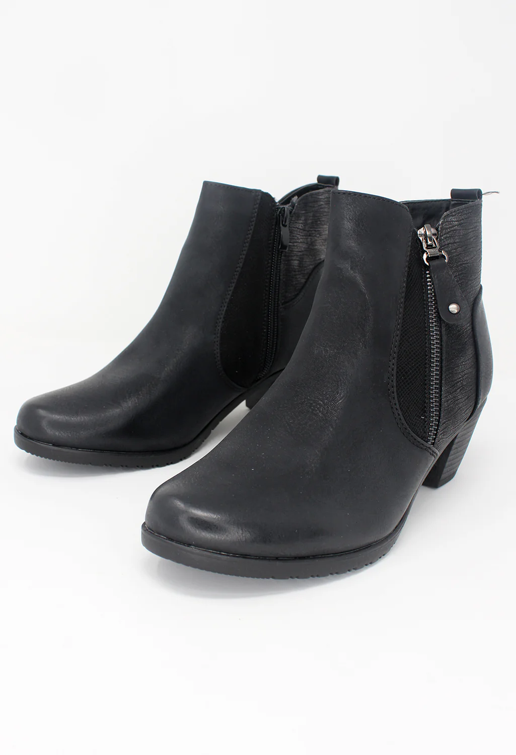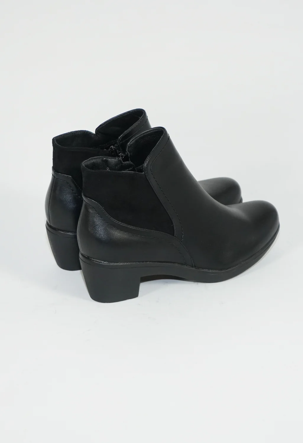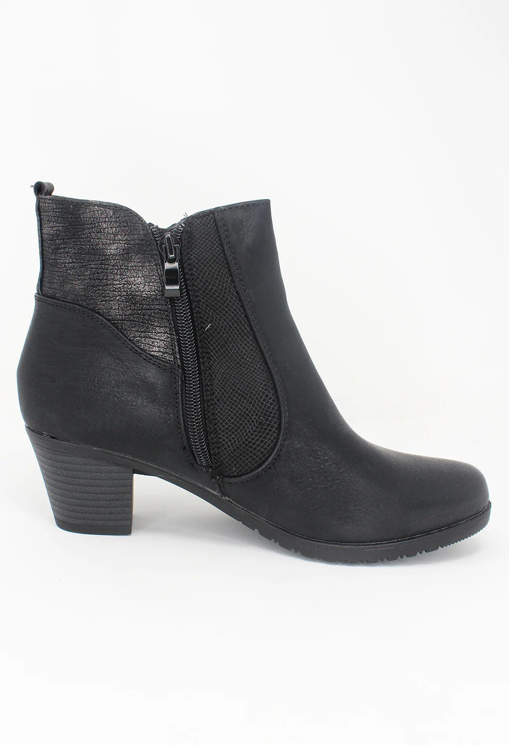 Black Block Heel Boot with Contrasting Side Panel
