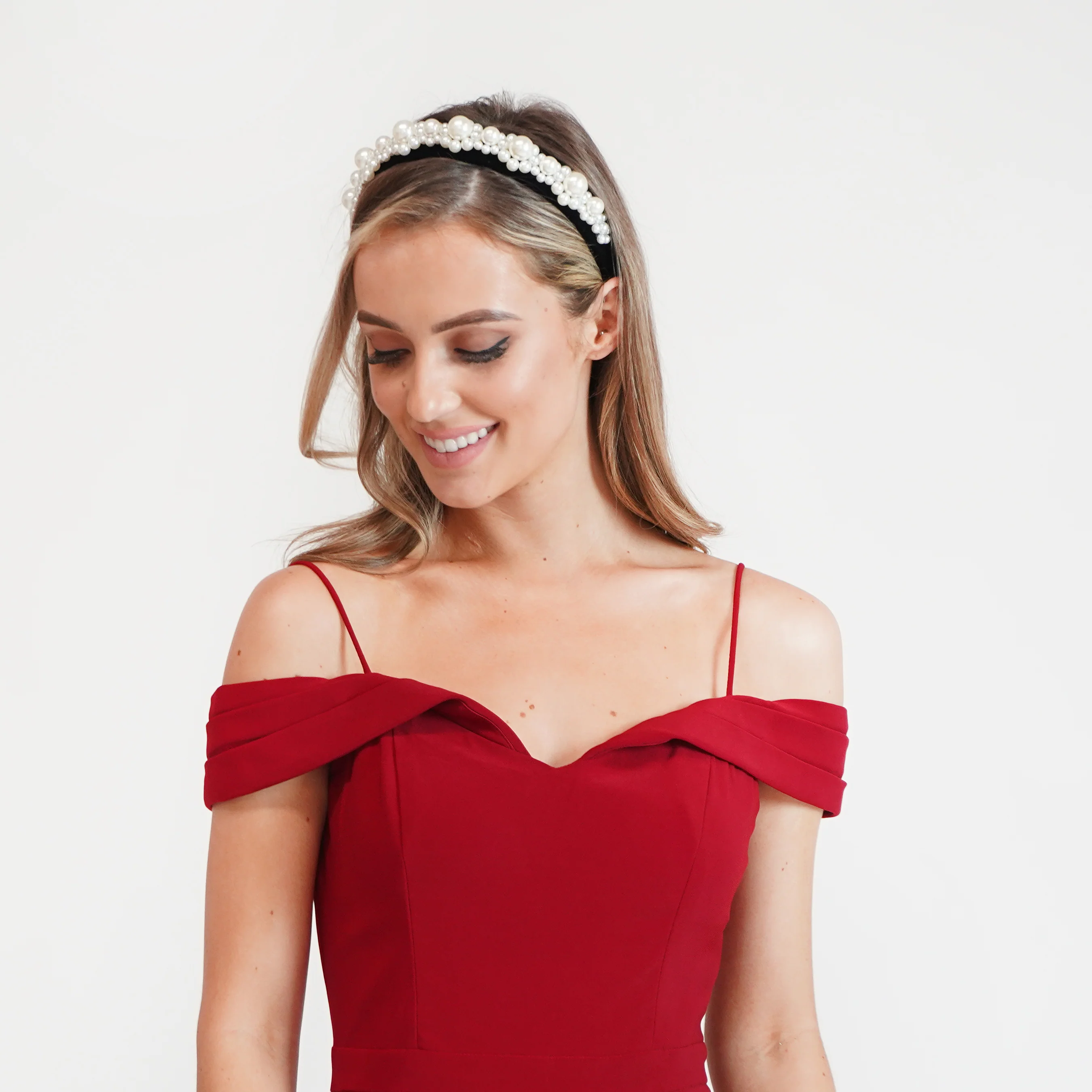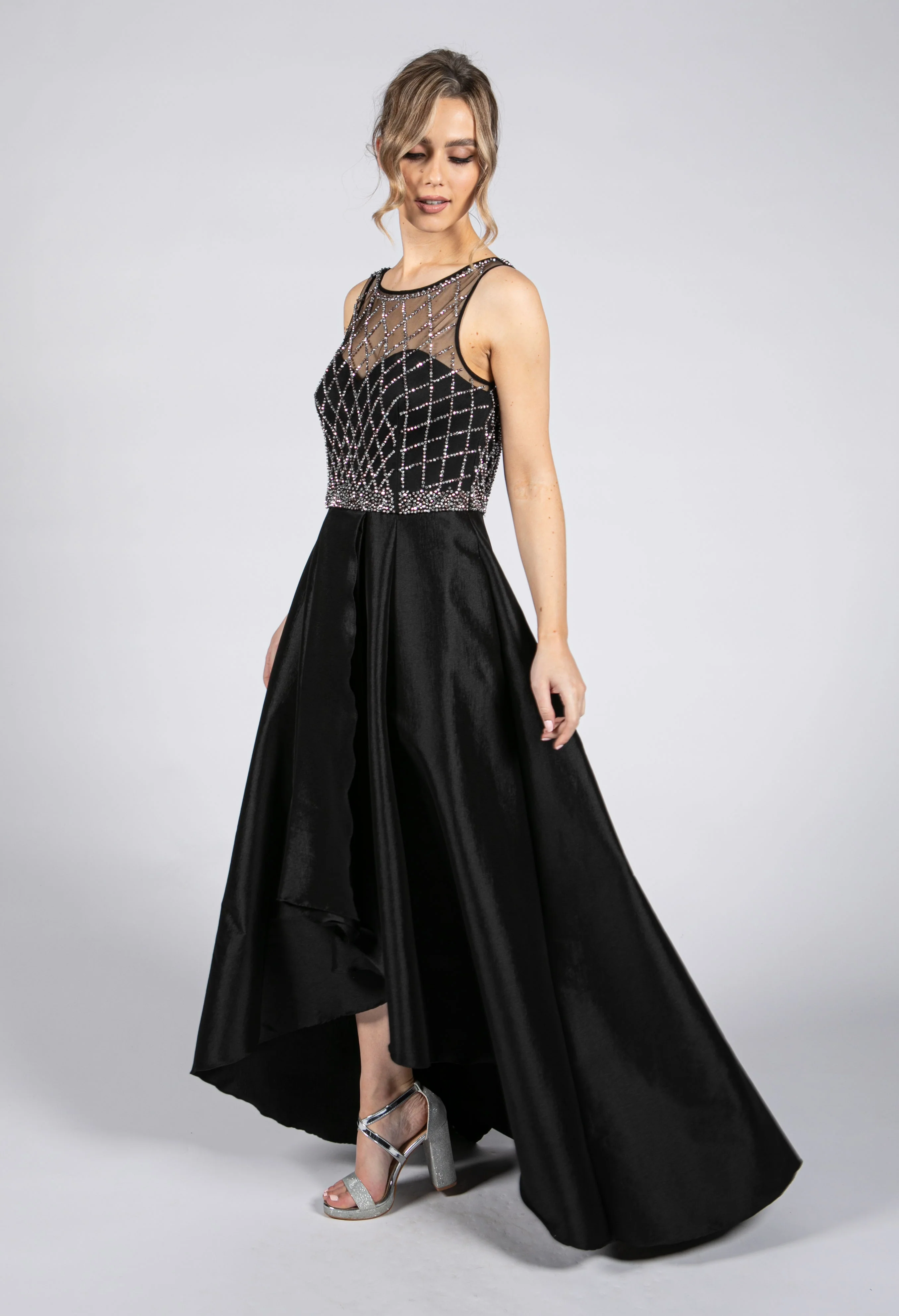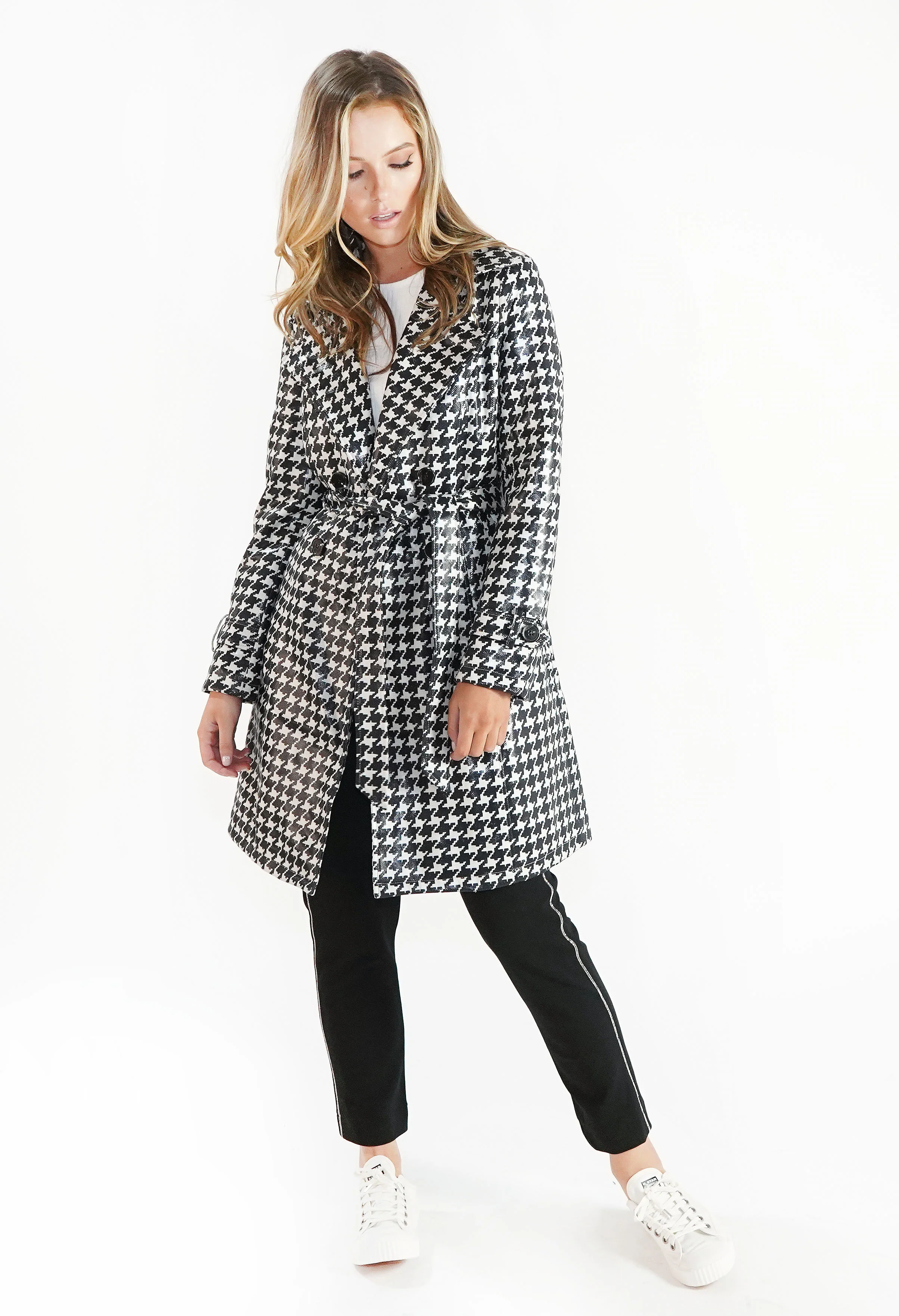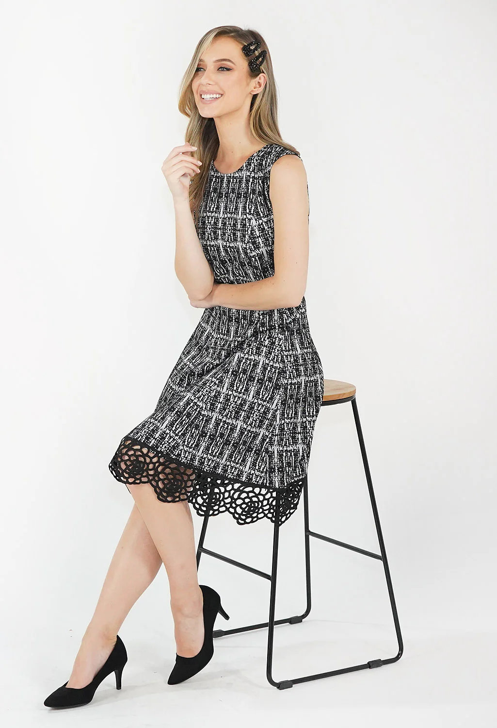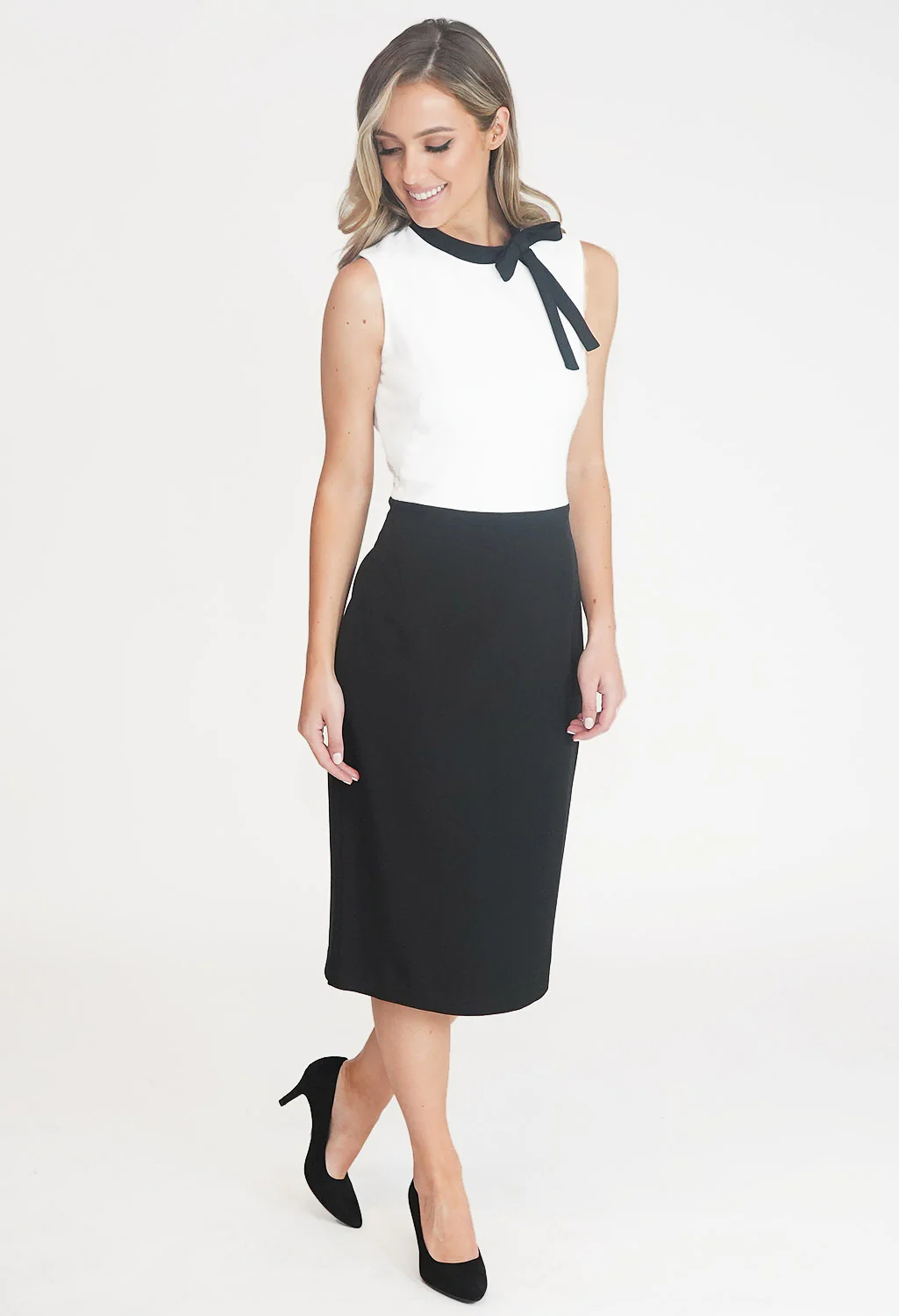 BLACK AND PEACH POLKA DOT WRAP TIE DRESS