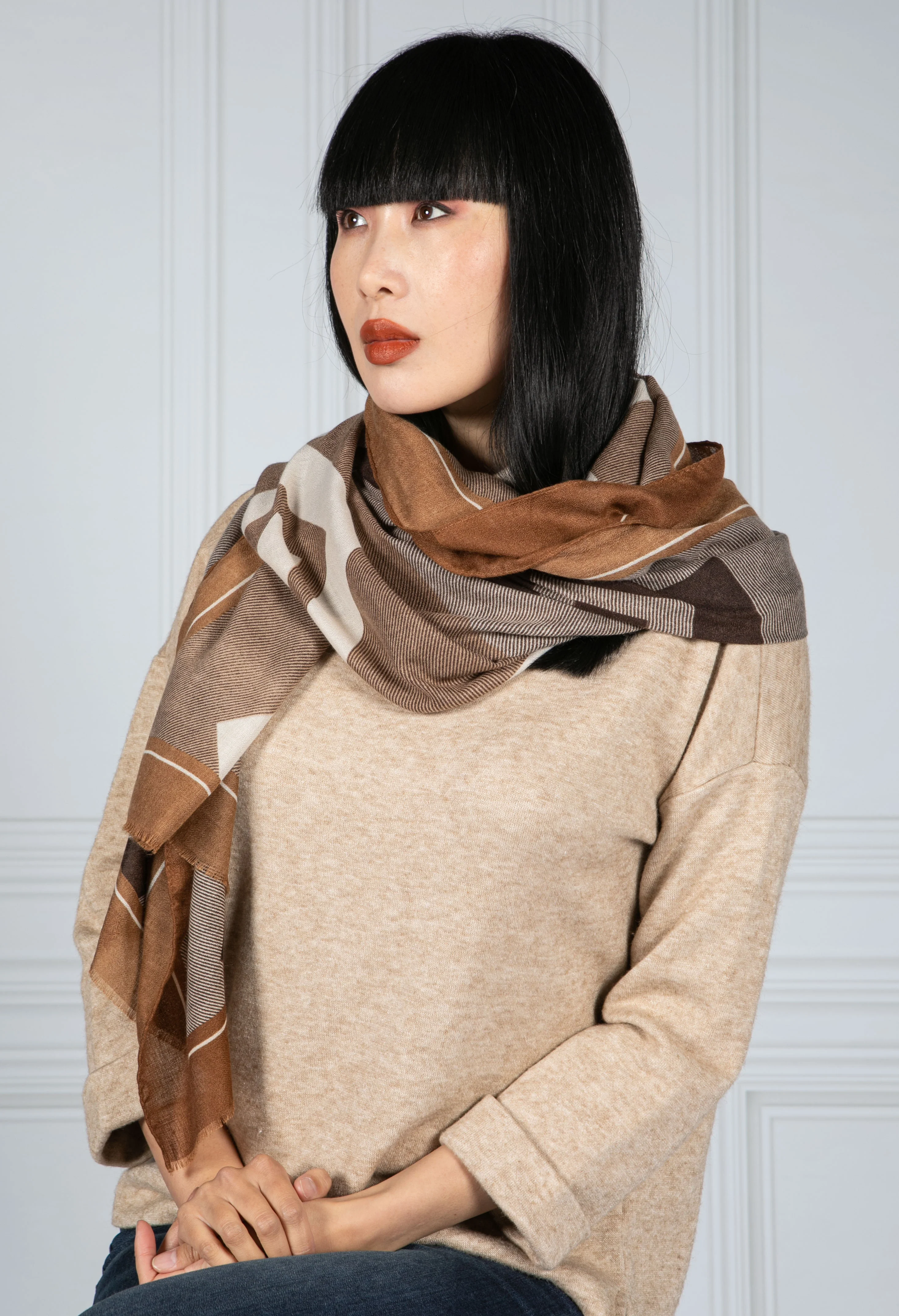 Taupe Geo Printed Scarf