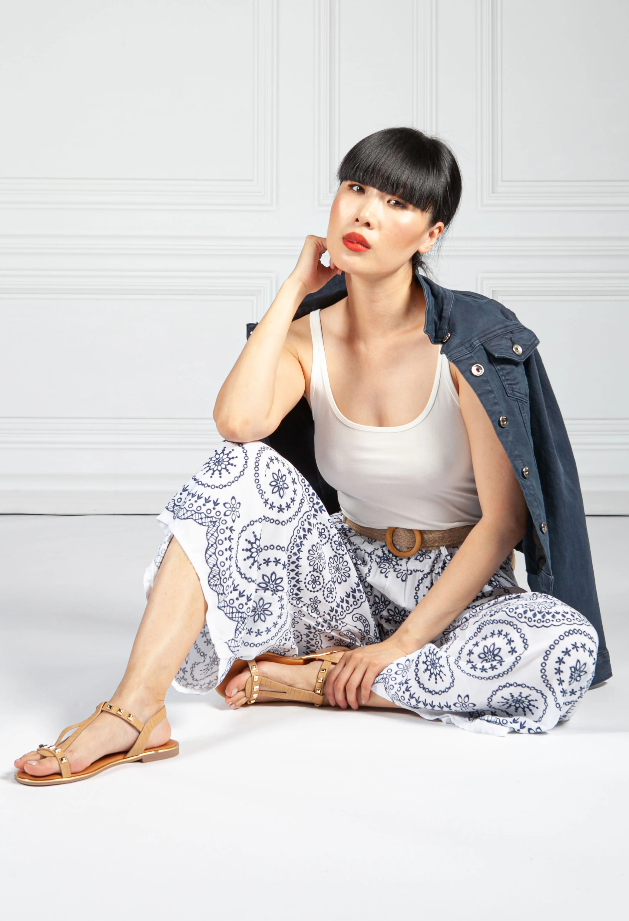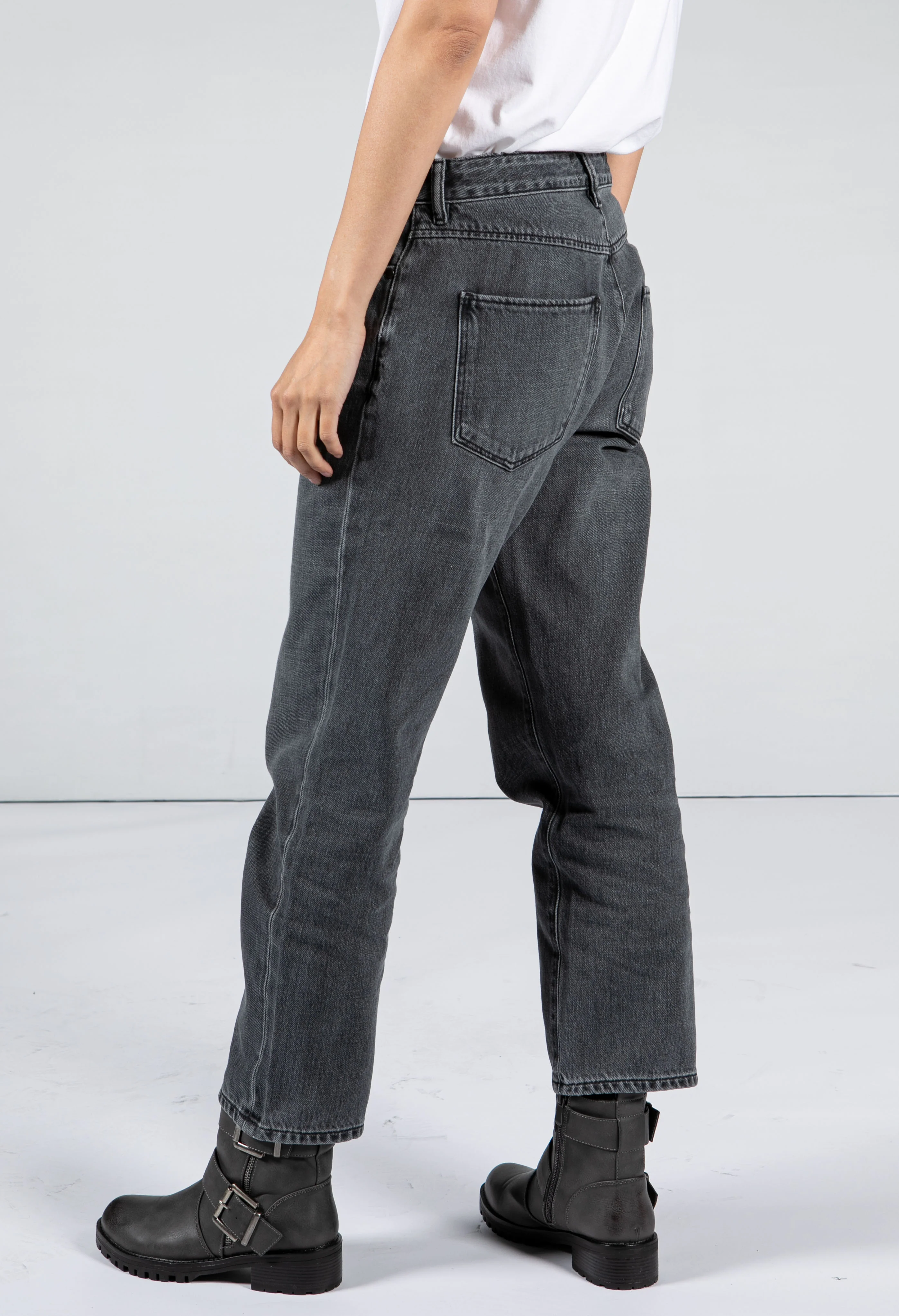 Stone Washed Dark Blue Jeans with Copper Stitching