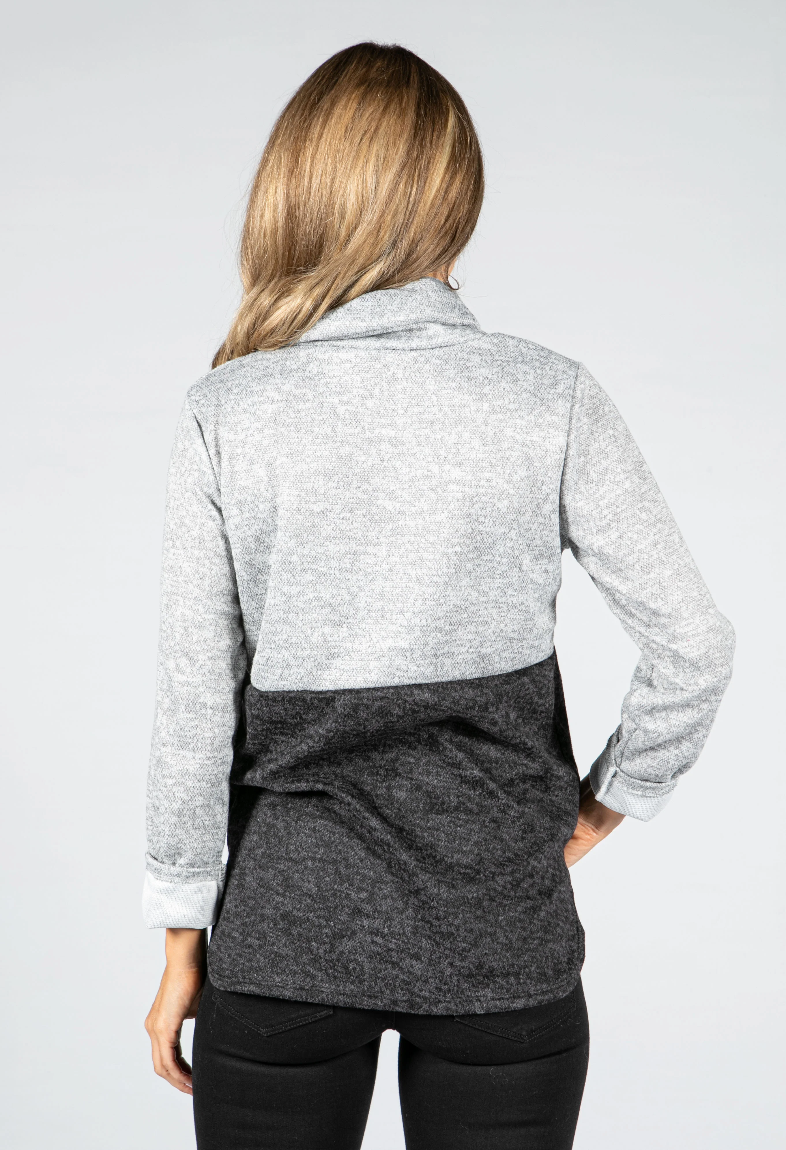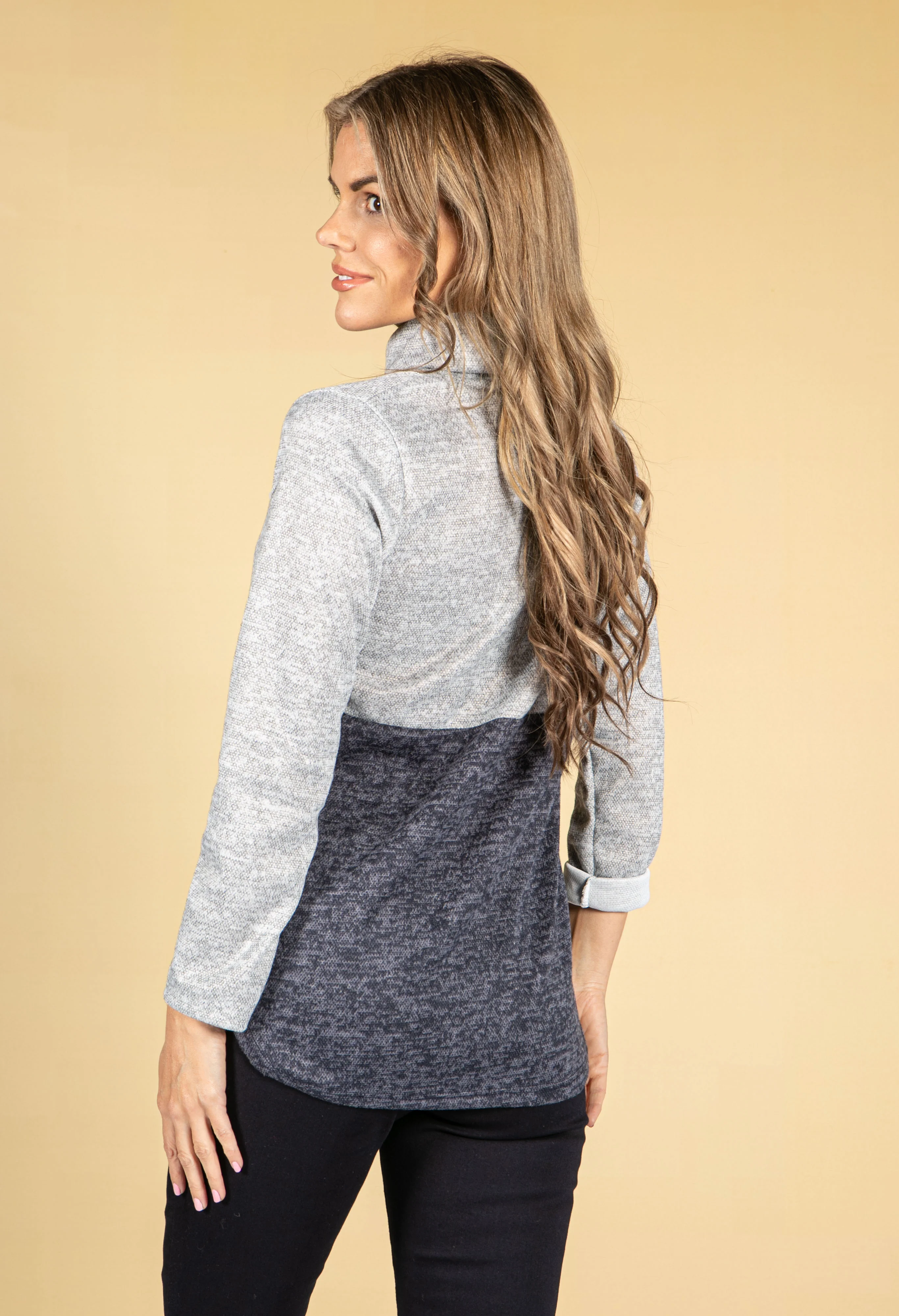 Stand-Up Collar Block Knit Jumper in Dark Grey