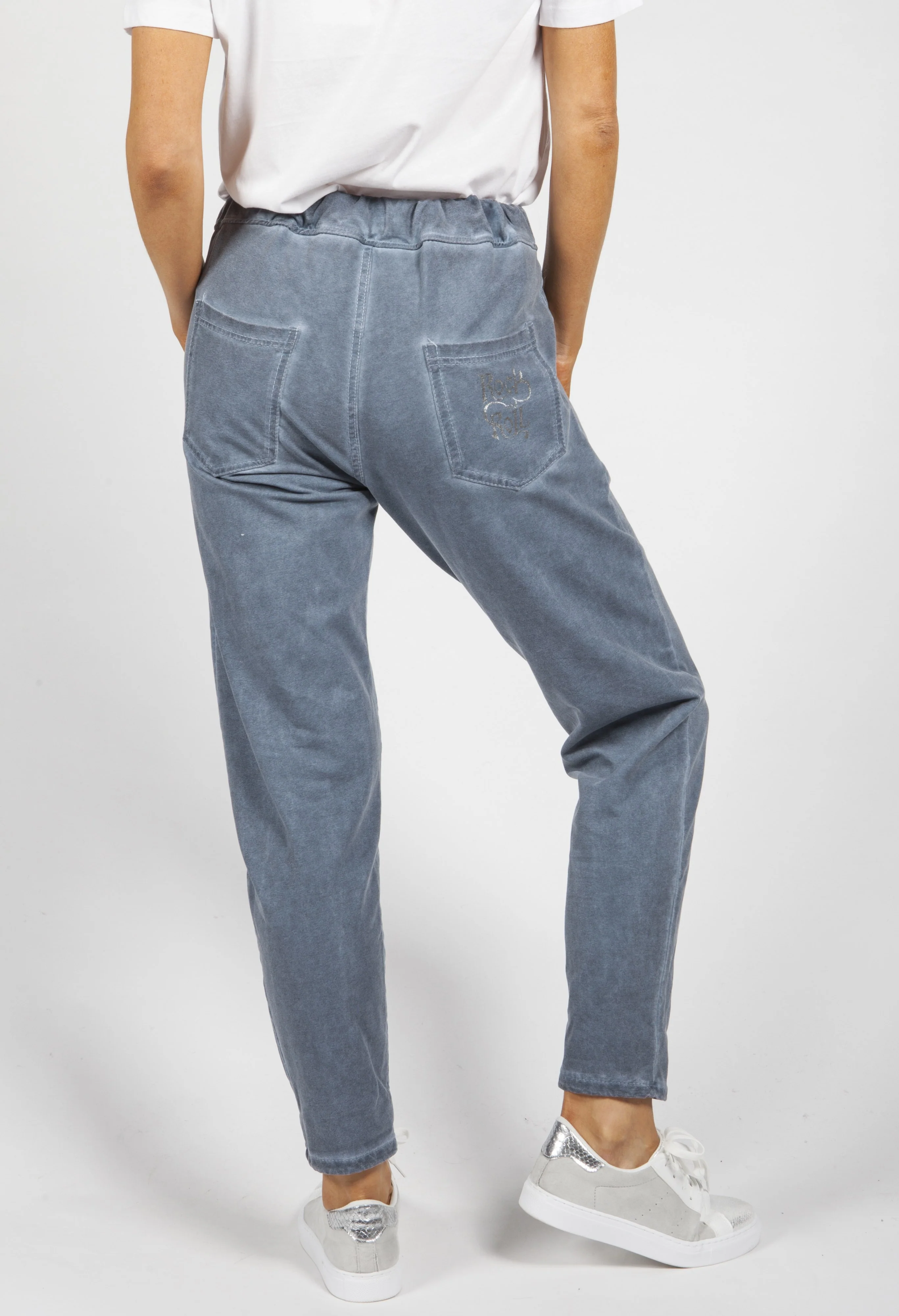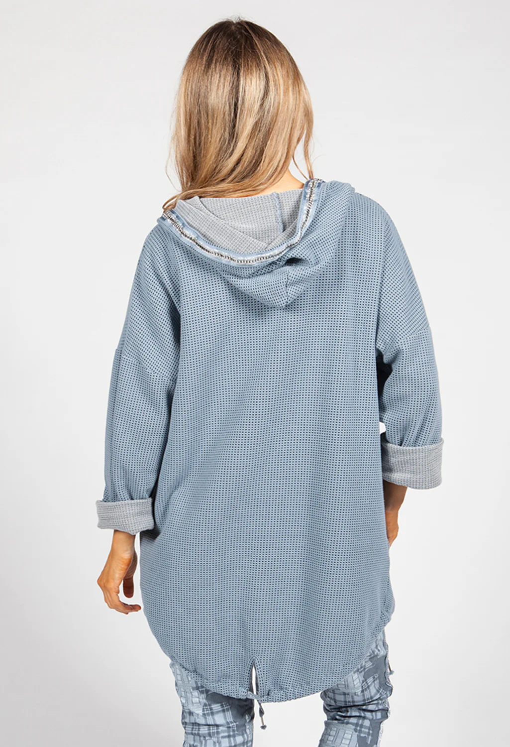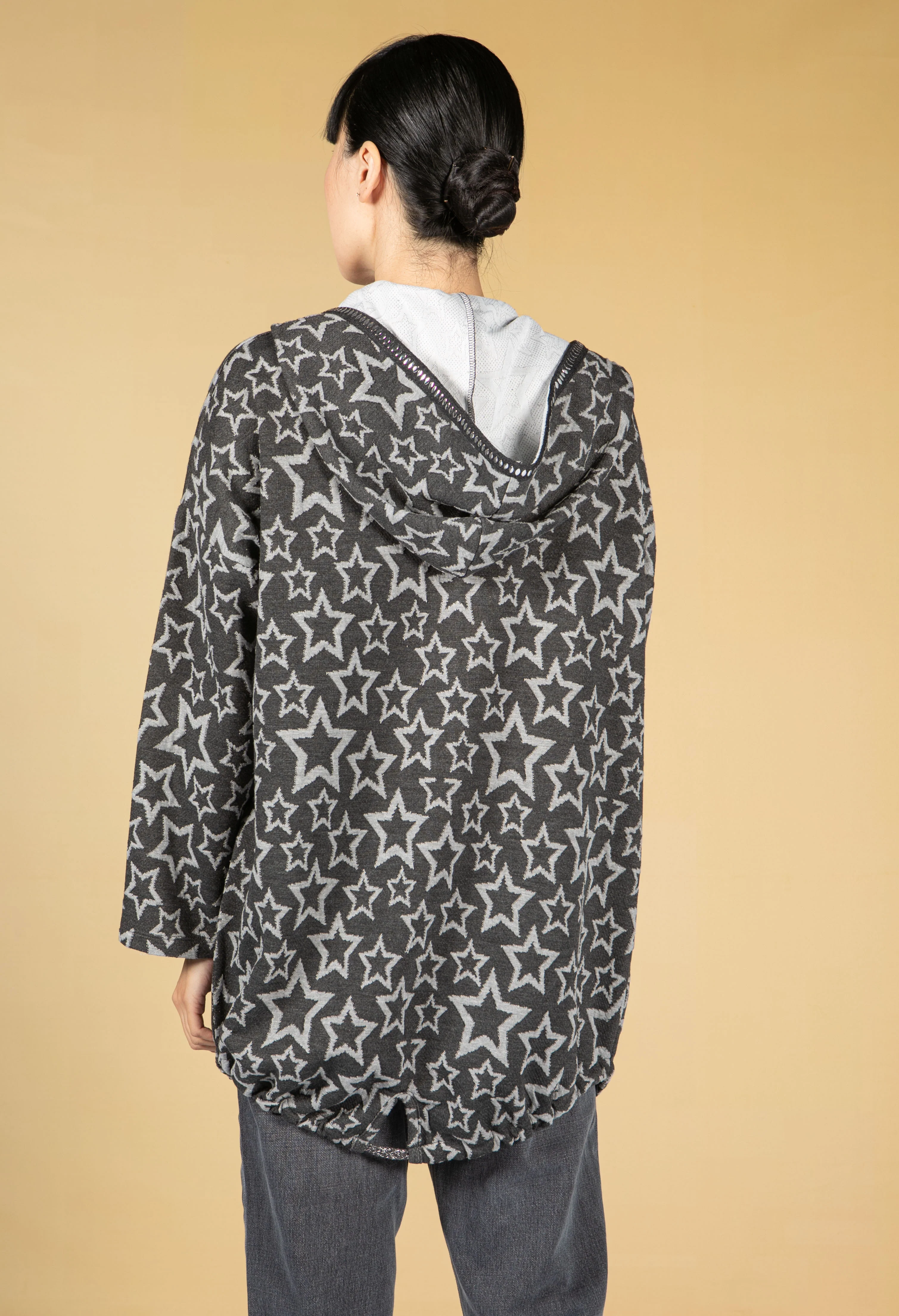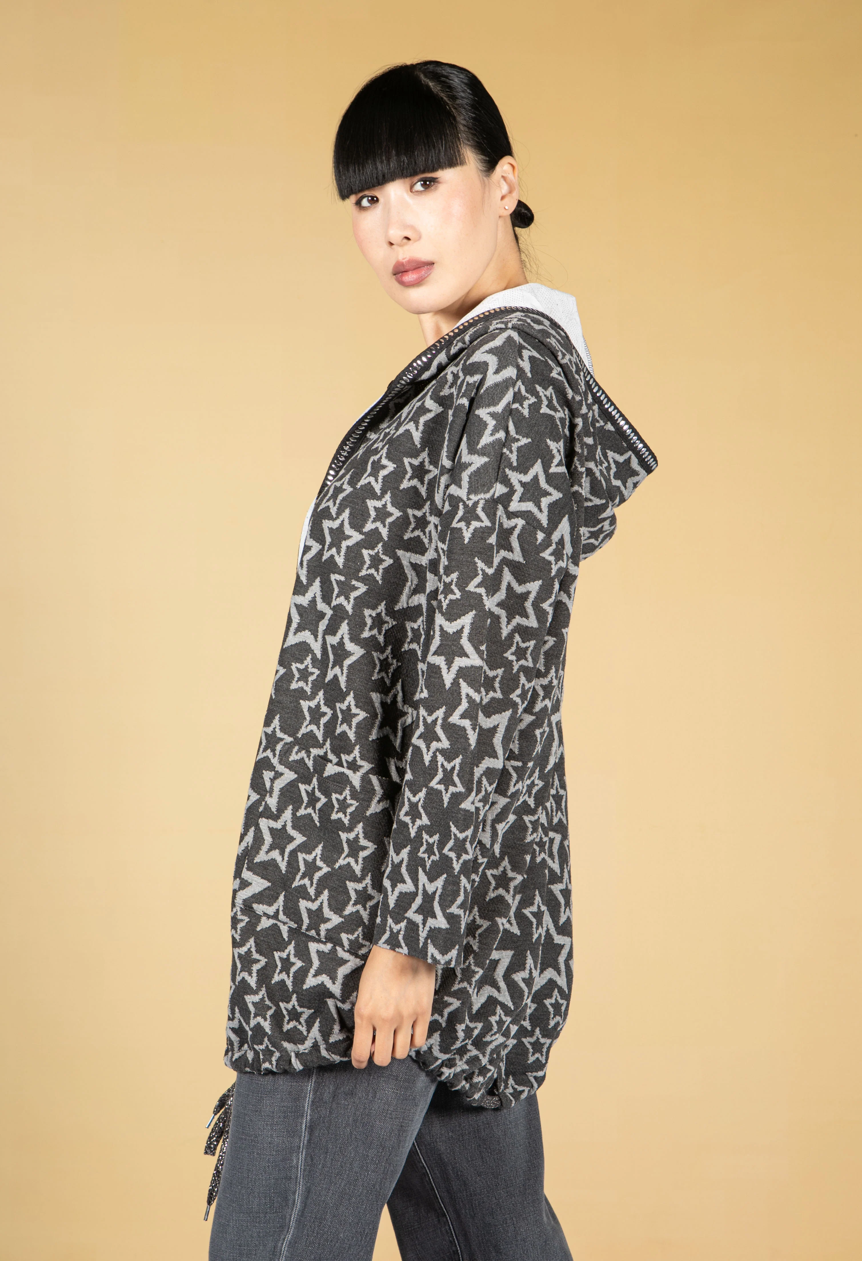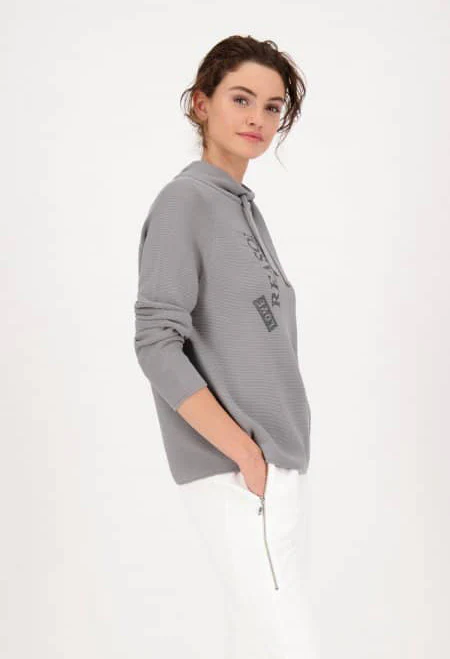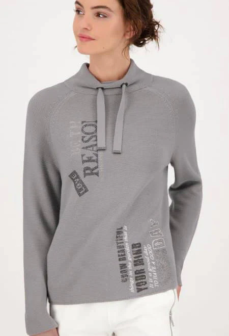 STAND-UP COLLAR KNITTED JUMPER WITH RHINESTONES IN GREY