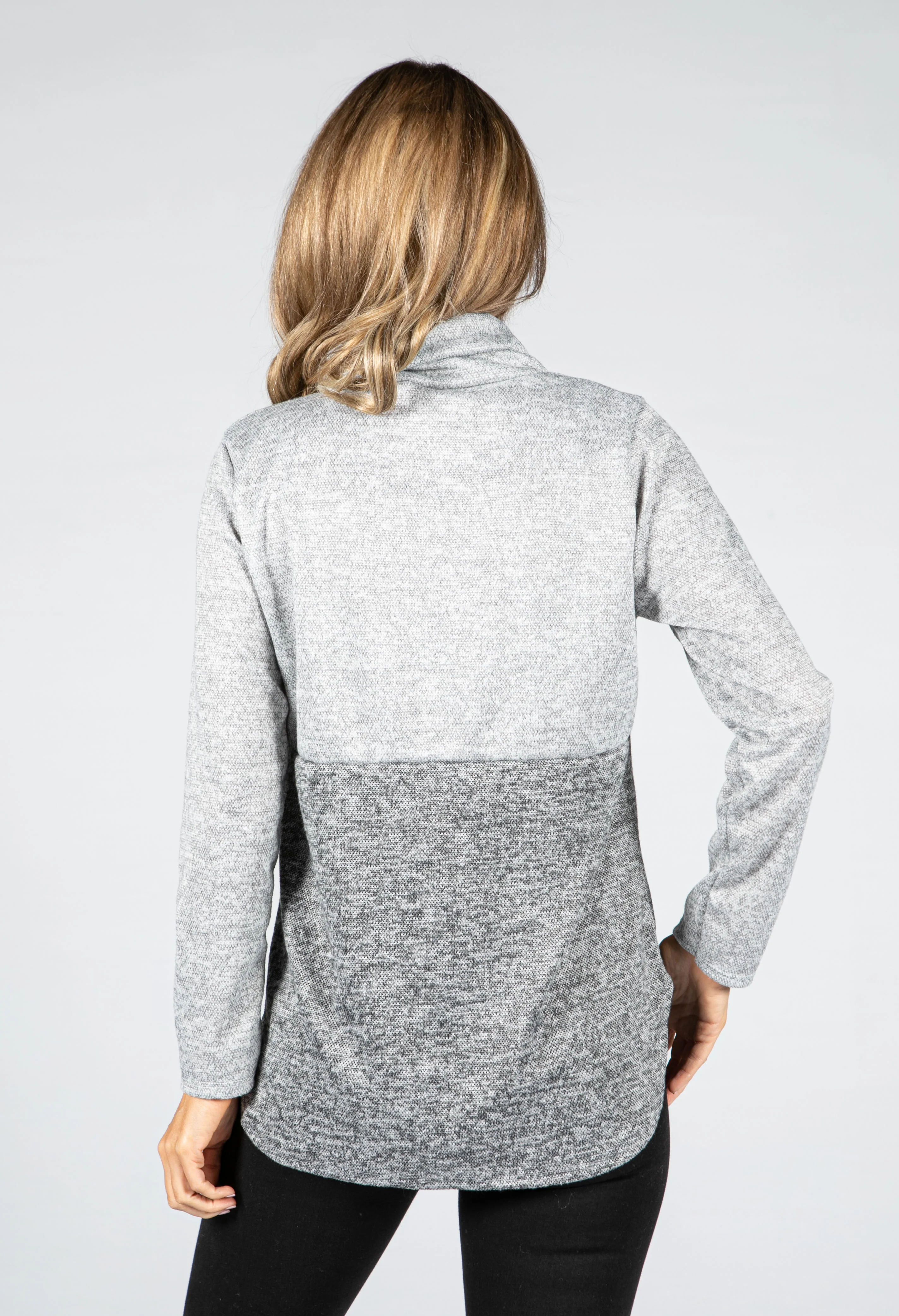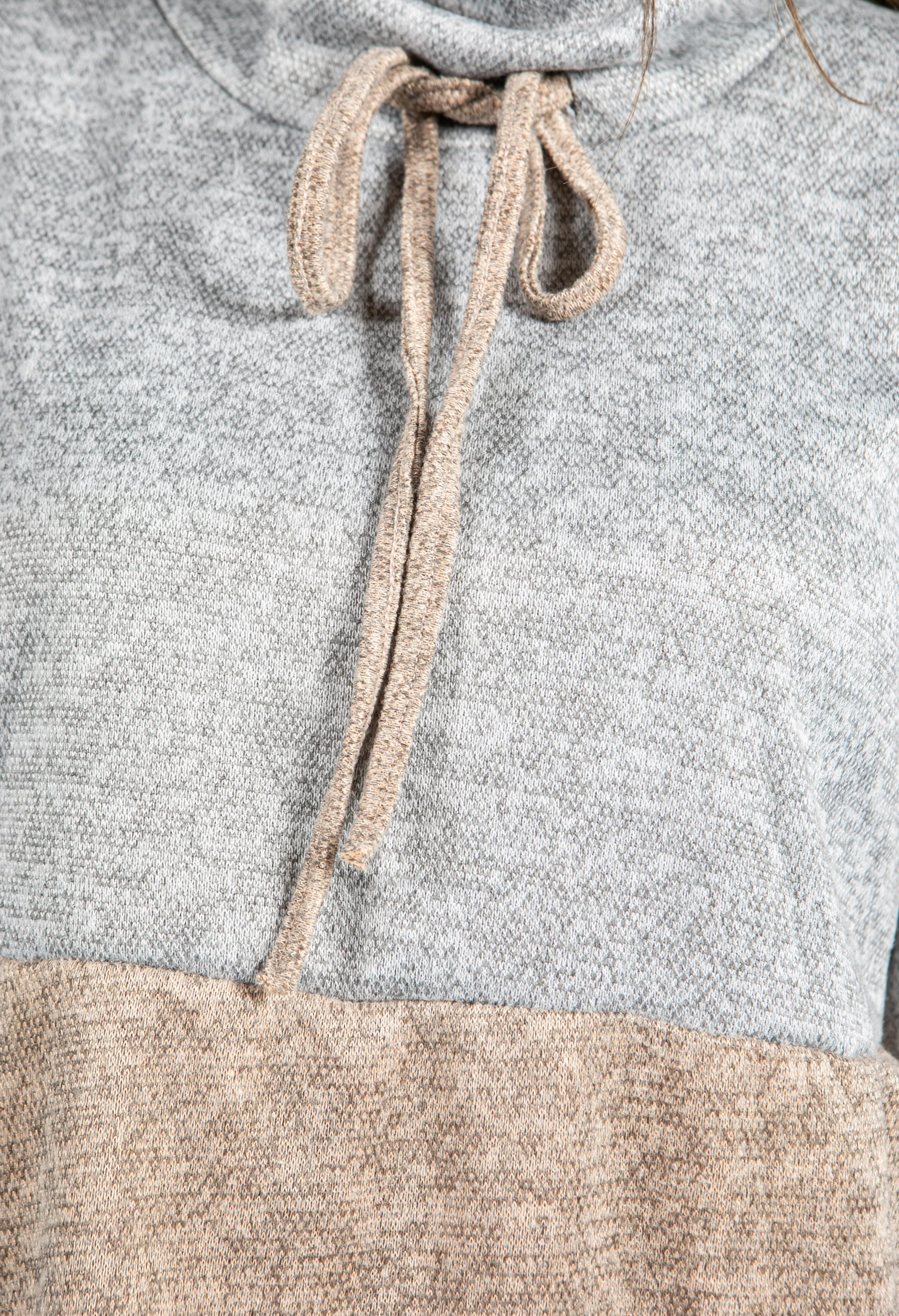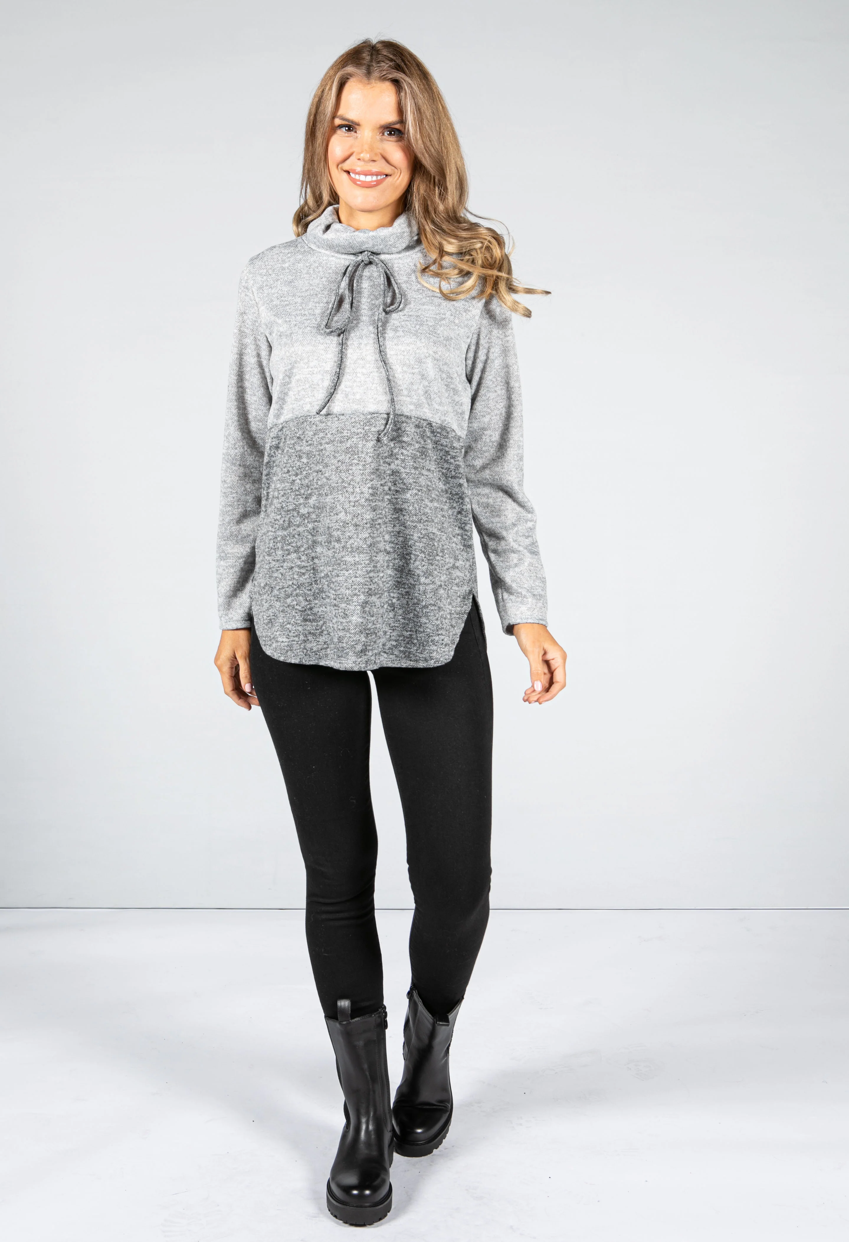 Stand-Up Collar Block Knit Jumper in Light Grey