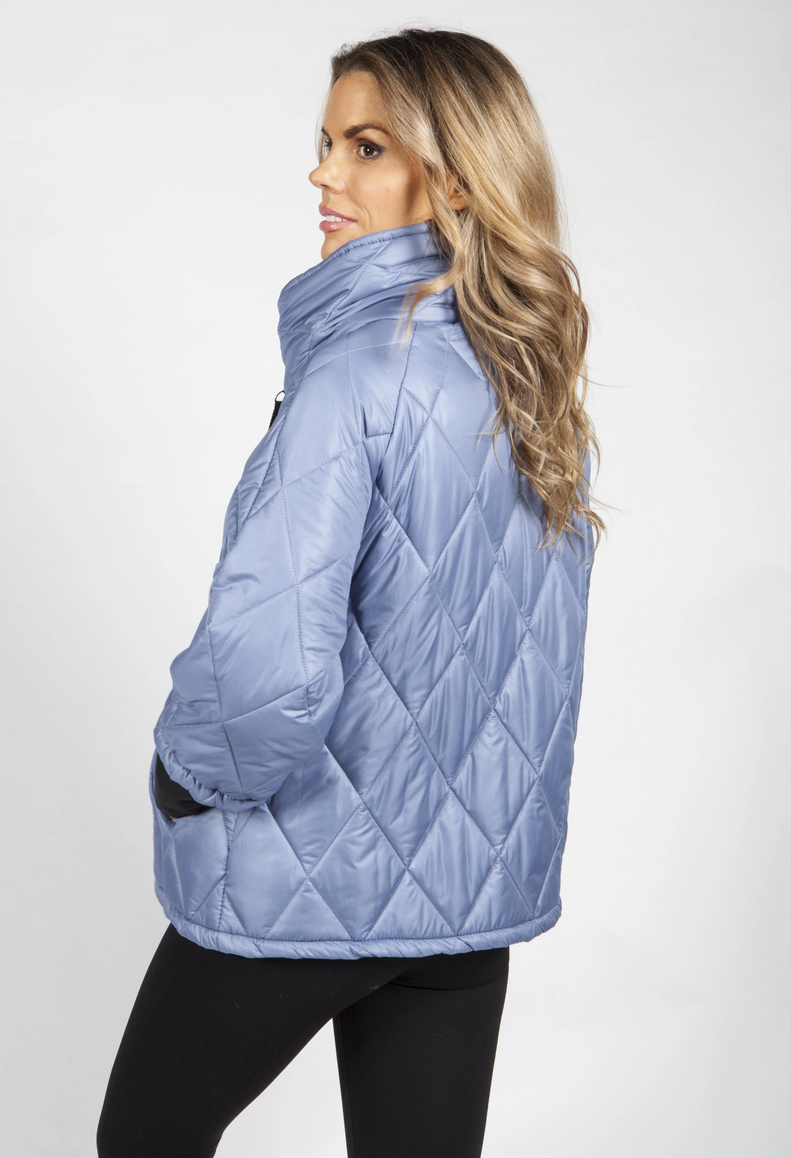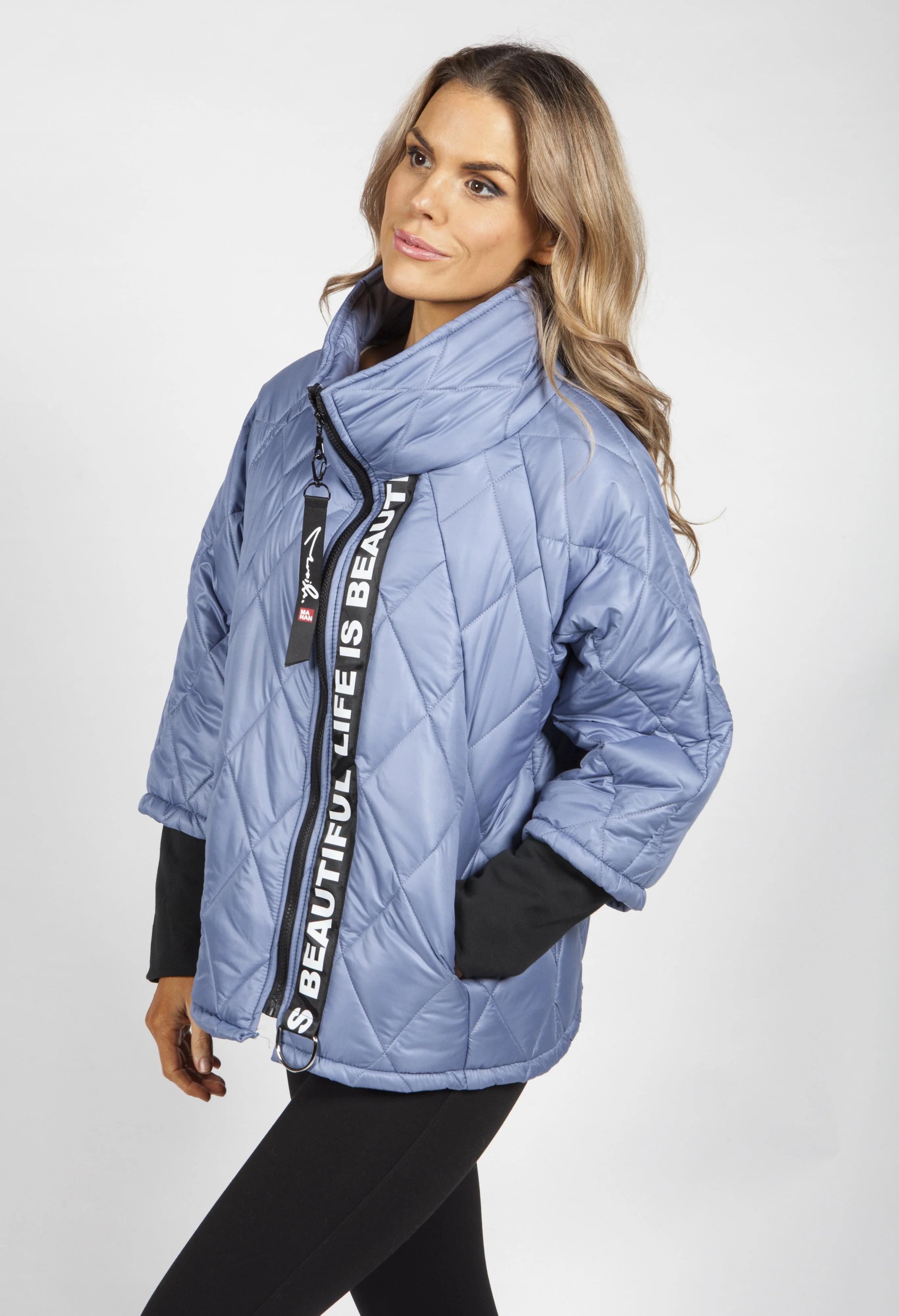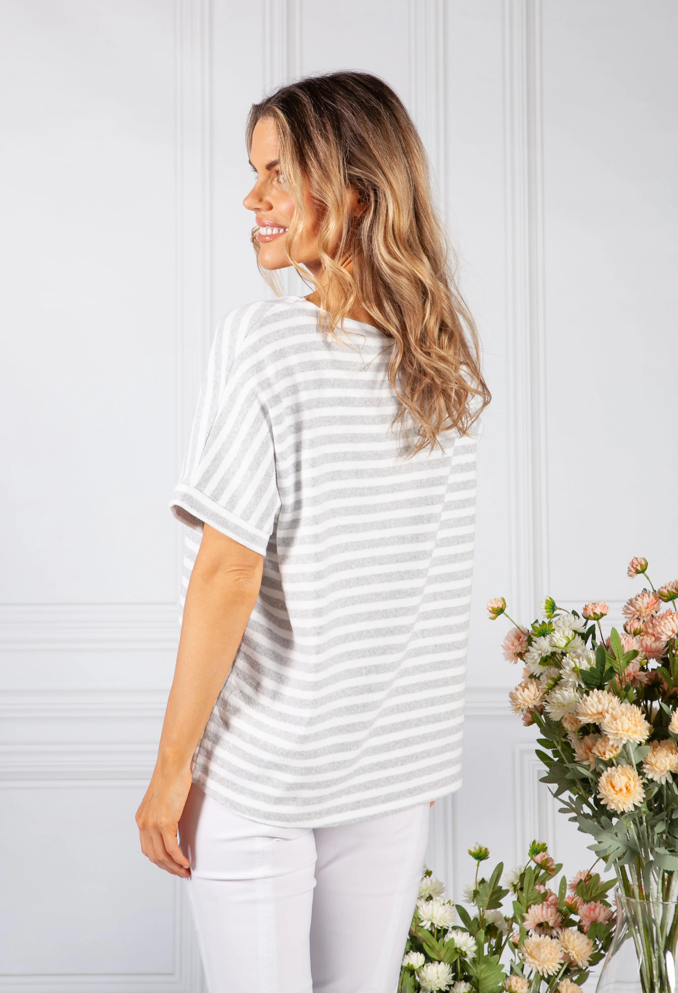 Stand-Up Collar Block Knit Jumper in Light Grey